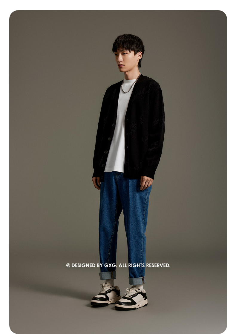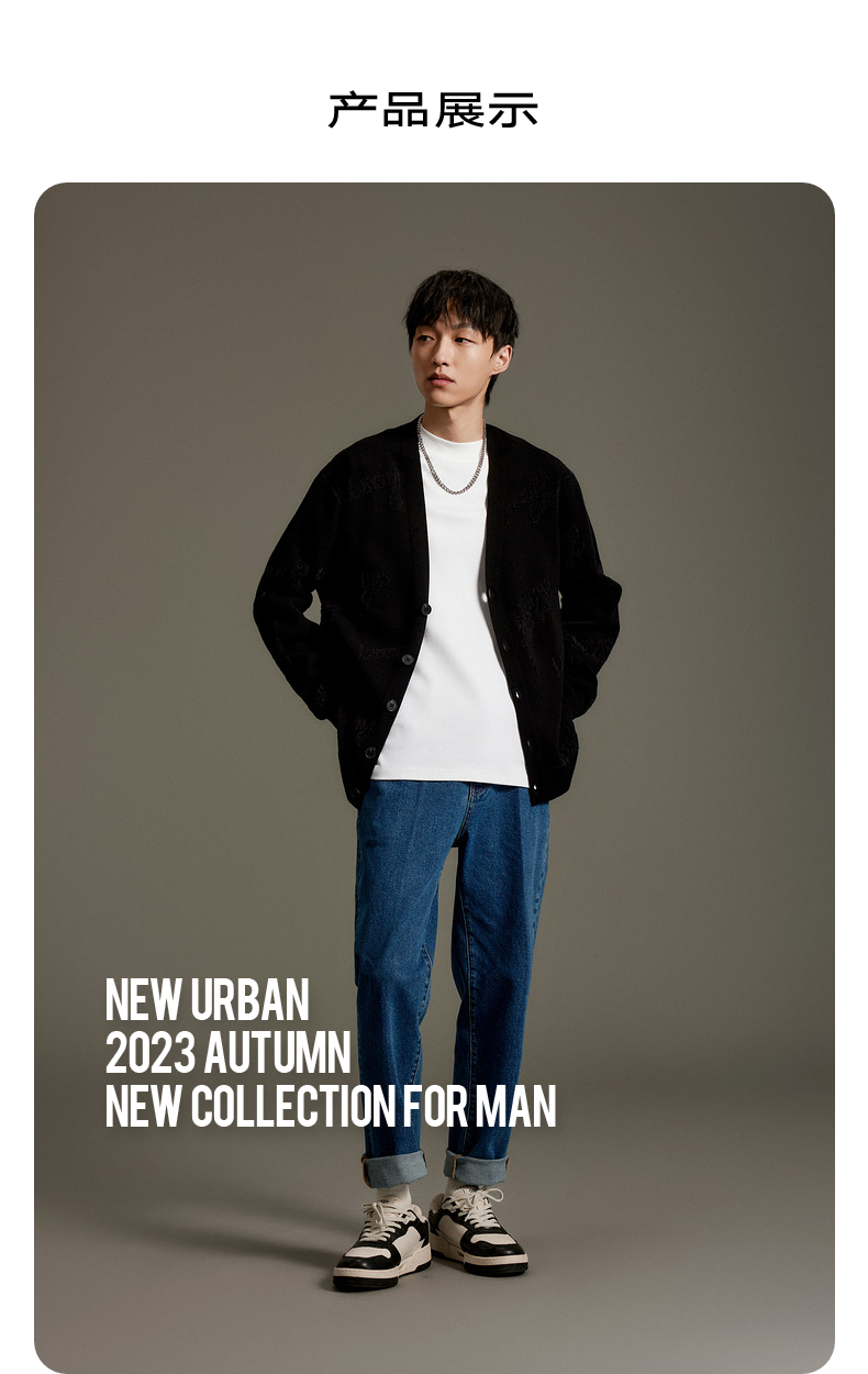 GXG男装 黑色暗纹印花毛衣针织开衫外套毛衫GEX13013863 热卖毛衫