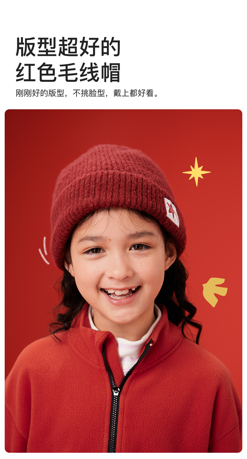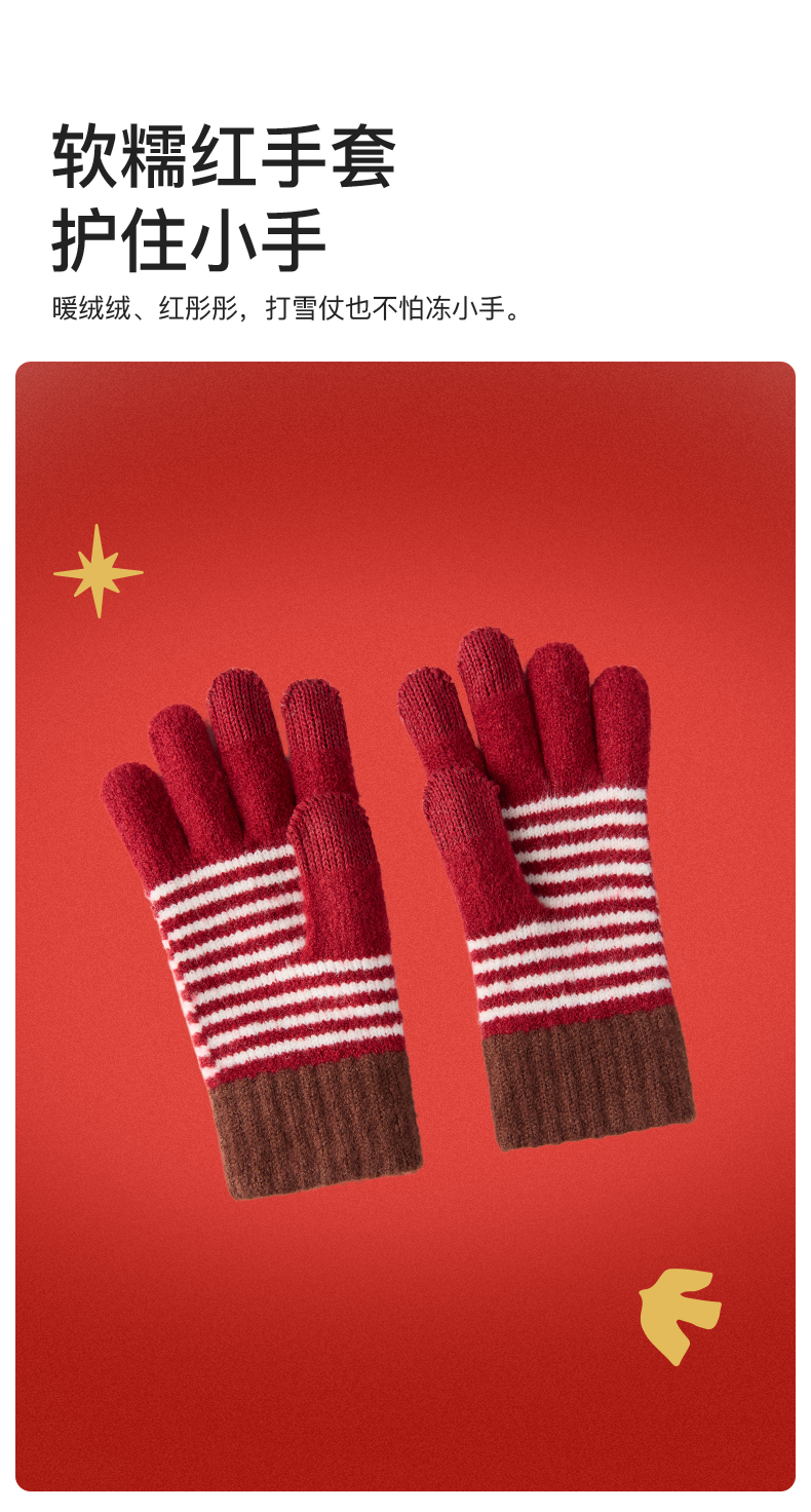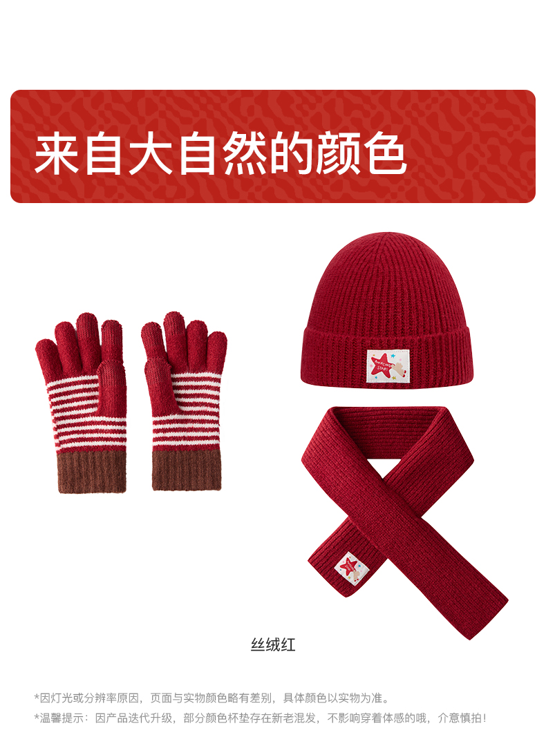 likeuu新年秋冬红色毛线帽子围巾手套男女中大童百搭保暖秋冬新款dr