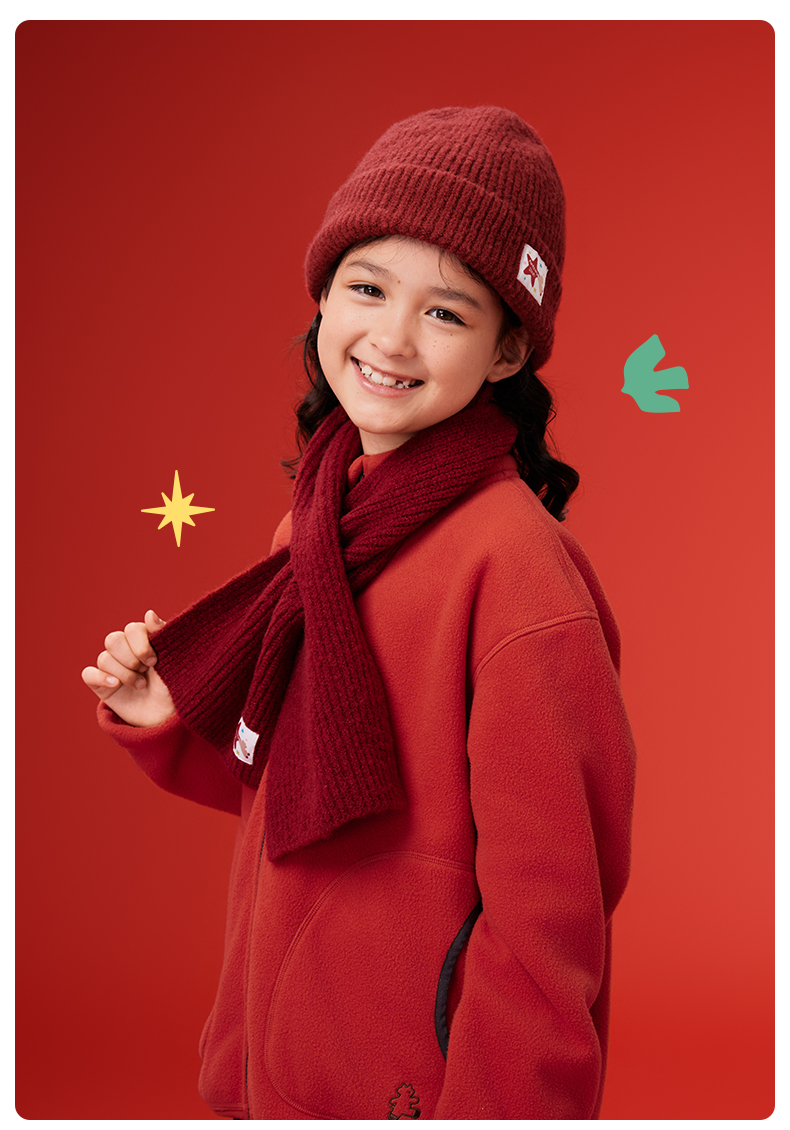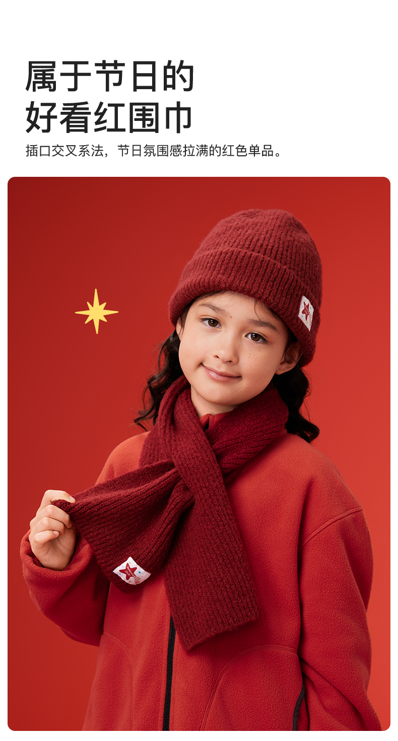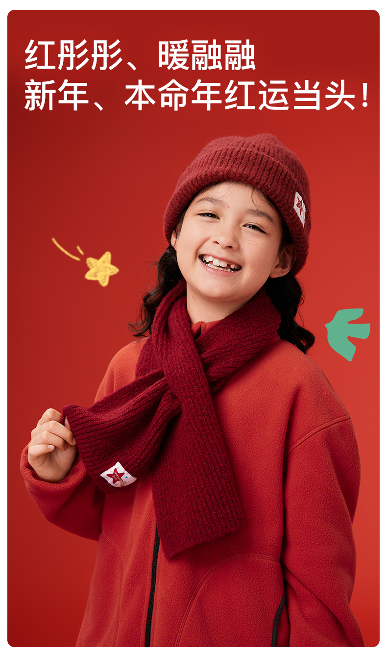 likeuu新年秋冬红色毛线帽子围巾手套男女中大童百搭保暖秋冬新款dr