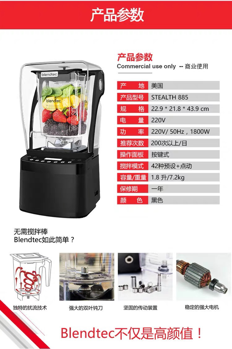 Blendtec 885柏兰德美国进口商用大功率隔音降噪搅拌机料理机