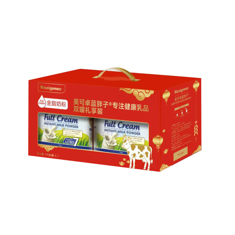 澳洲美可卓蓝胖子全脂高钙奶粉1kg*2罐礼盒