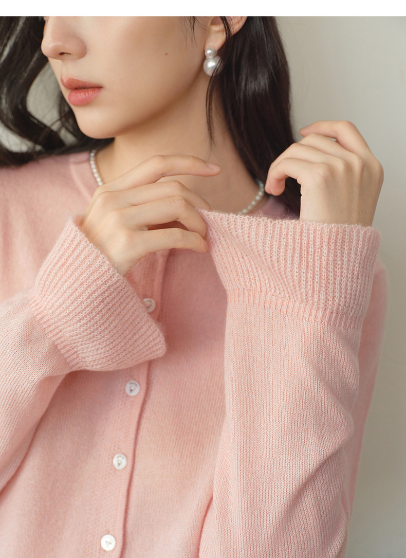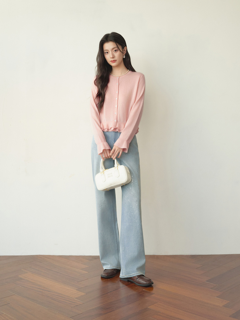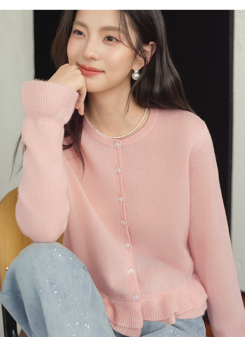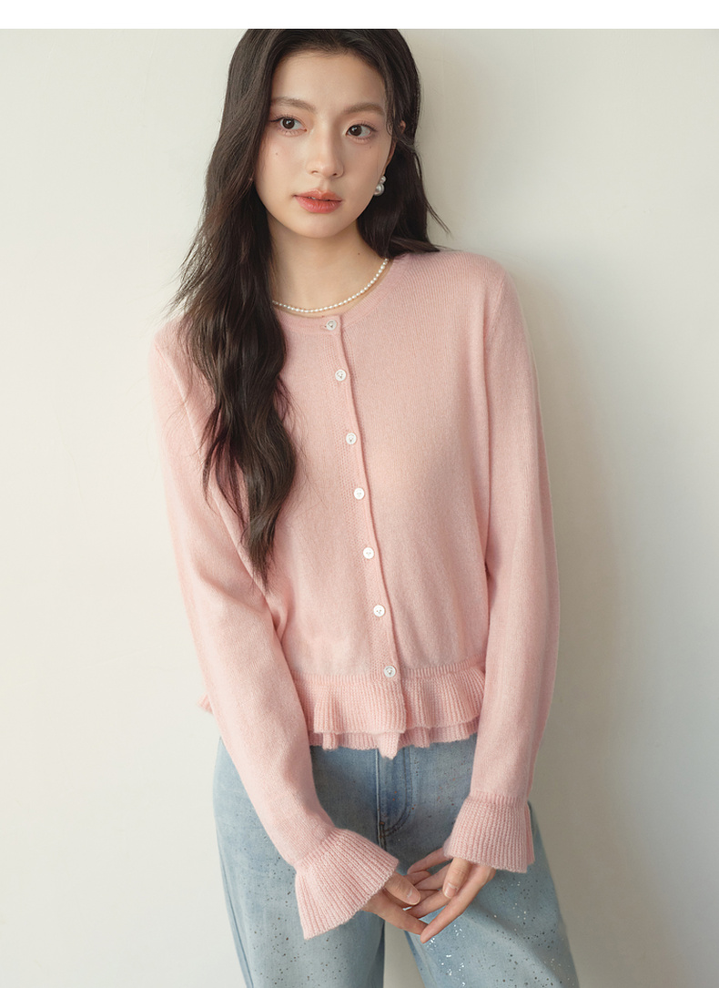【严选】诗凡黎莱赛尔木耳边针织开衫2026春新款粉色温柔氛围感长袖上衣女7H2230391