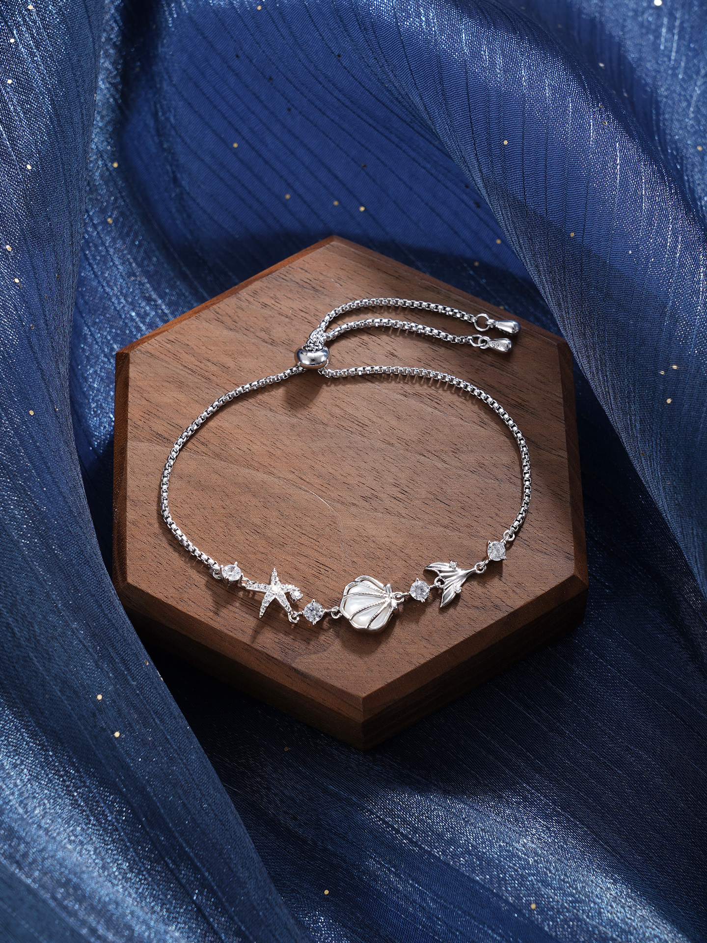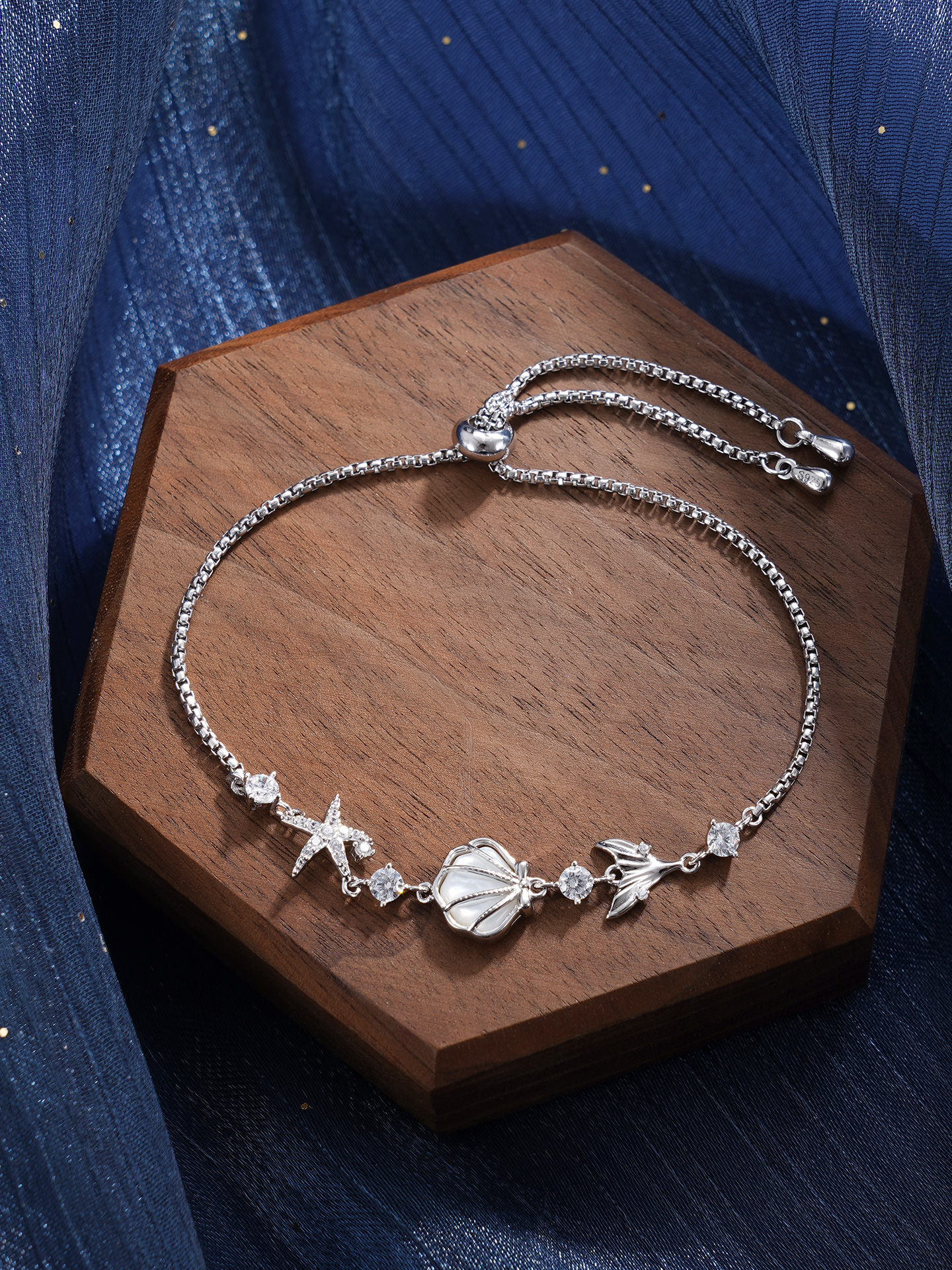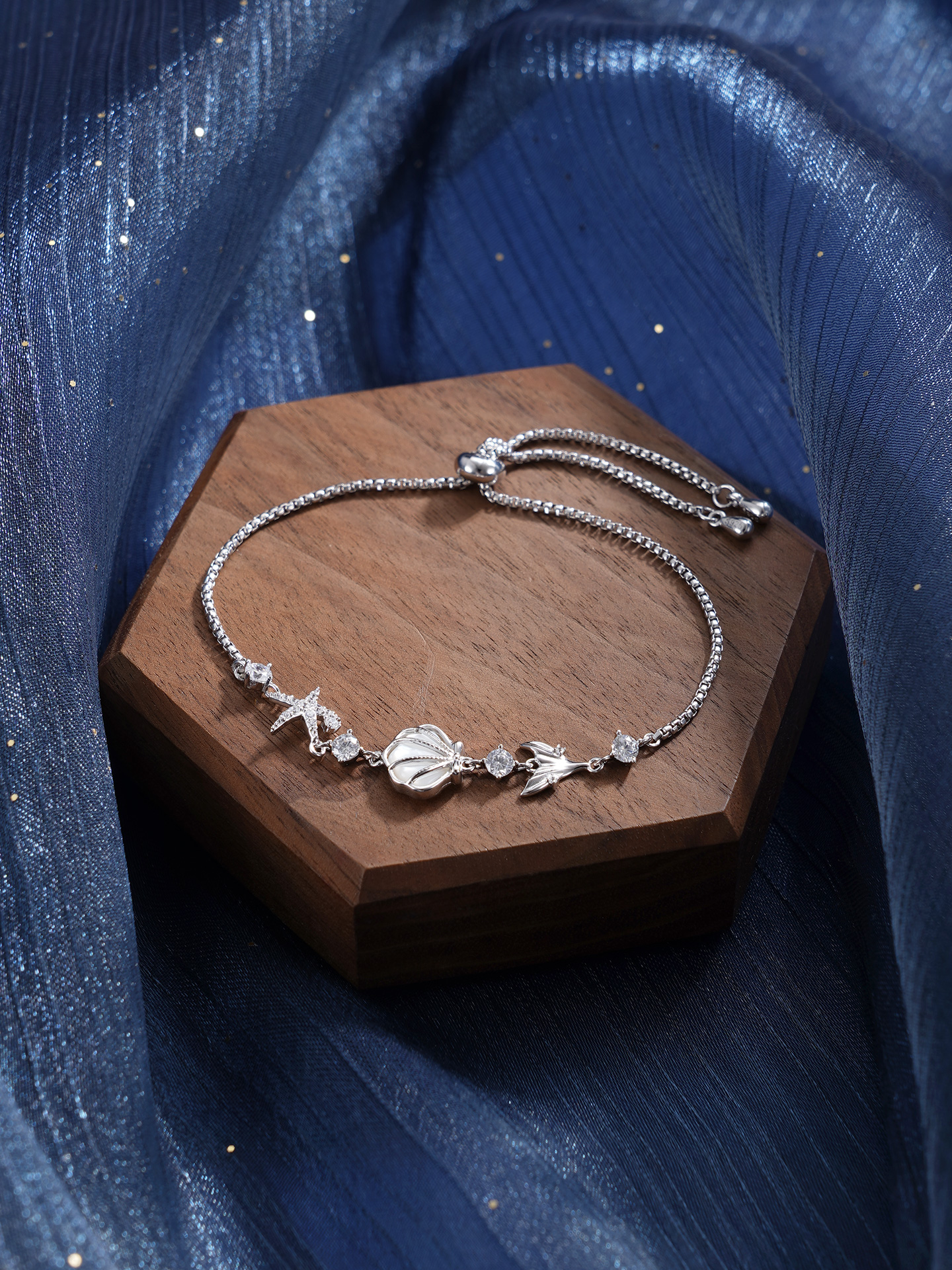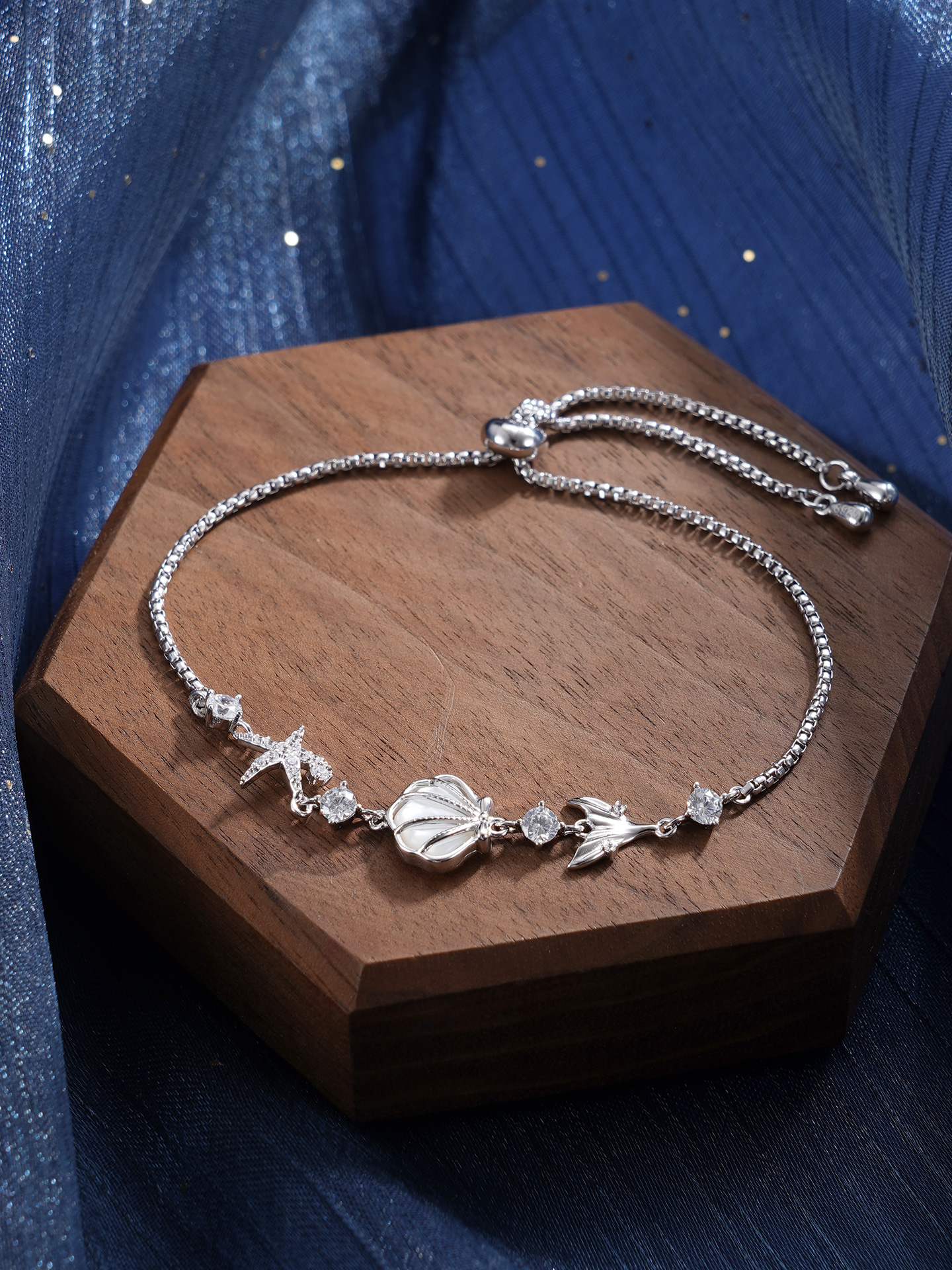 【寓意】:商周时期,贝壳曾被用作货币,被视作财富的象征。手链以贝壳为设计灵感,融入海星、鱼尾等元素,寓意招财聚宝、事事圆满。