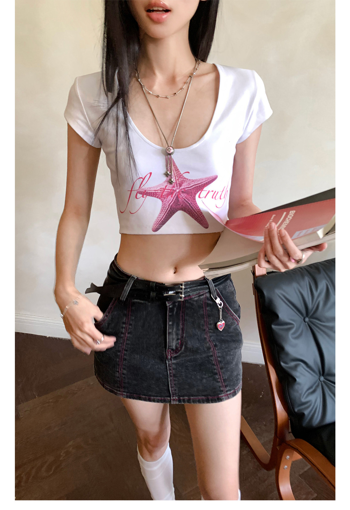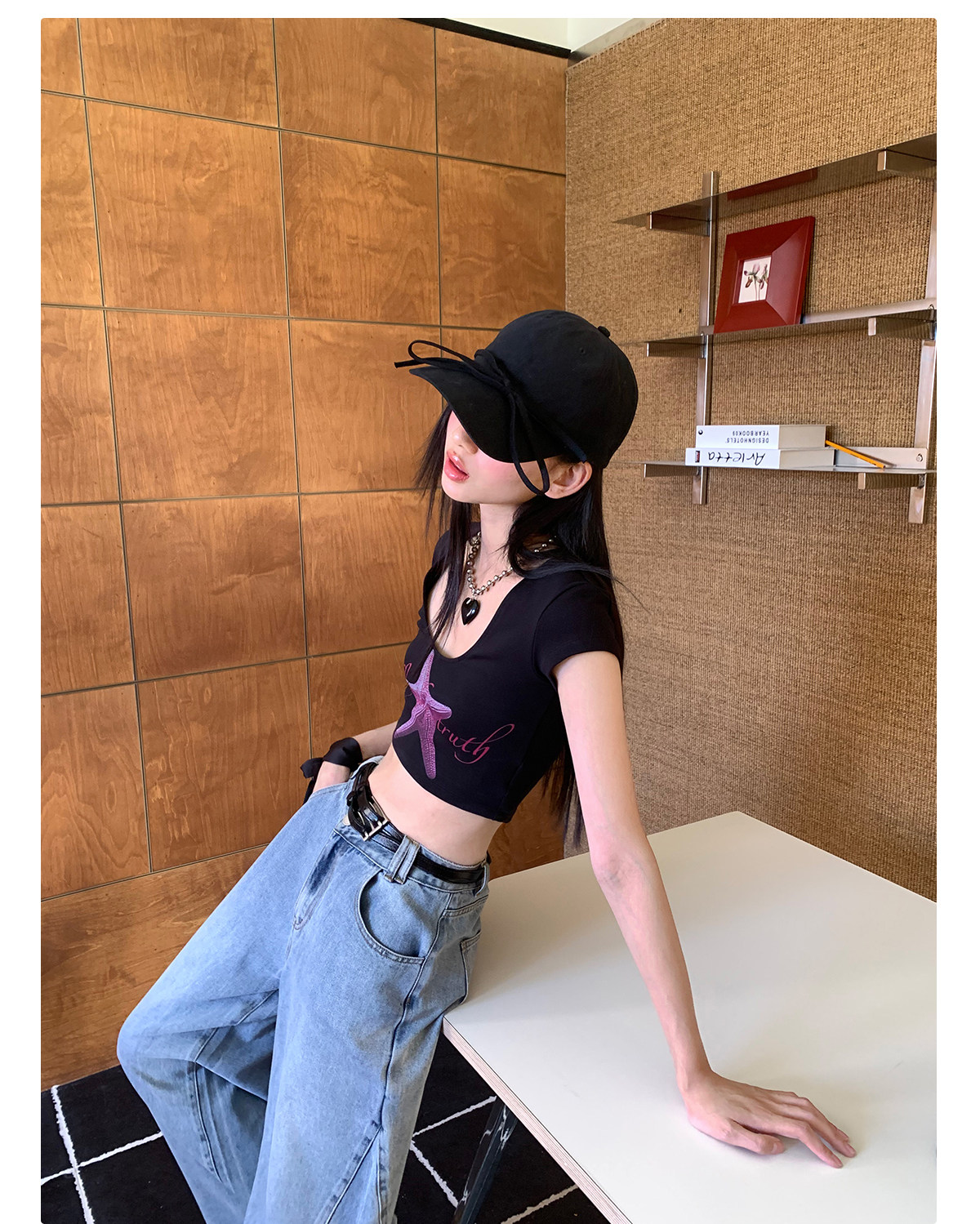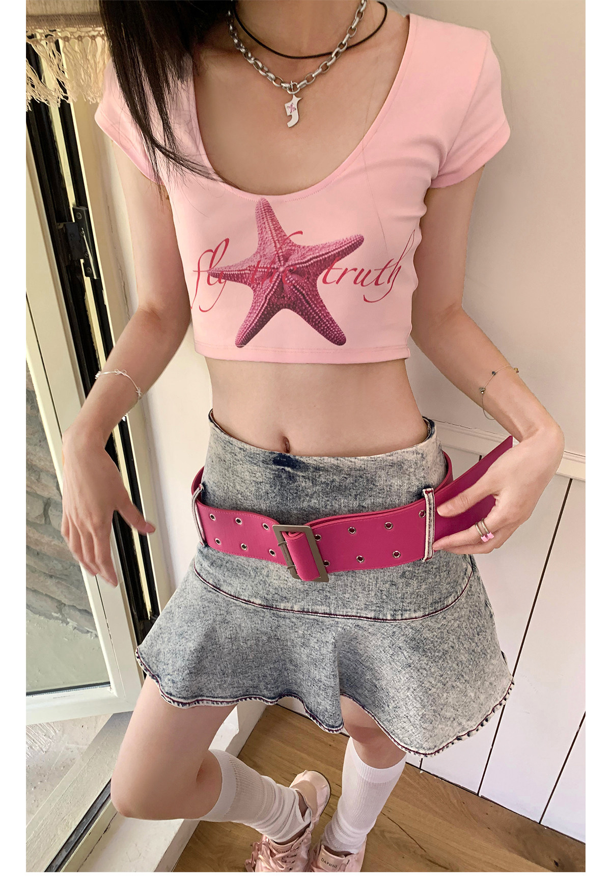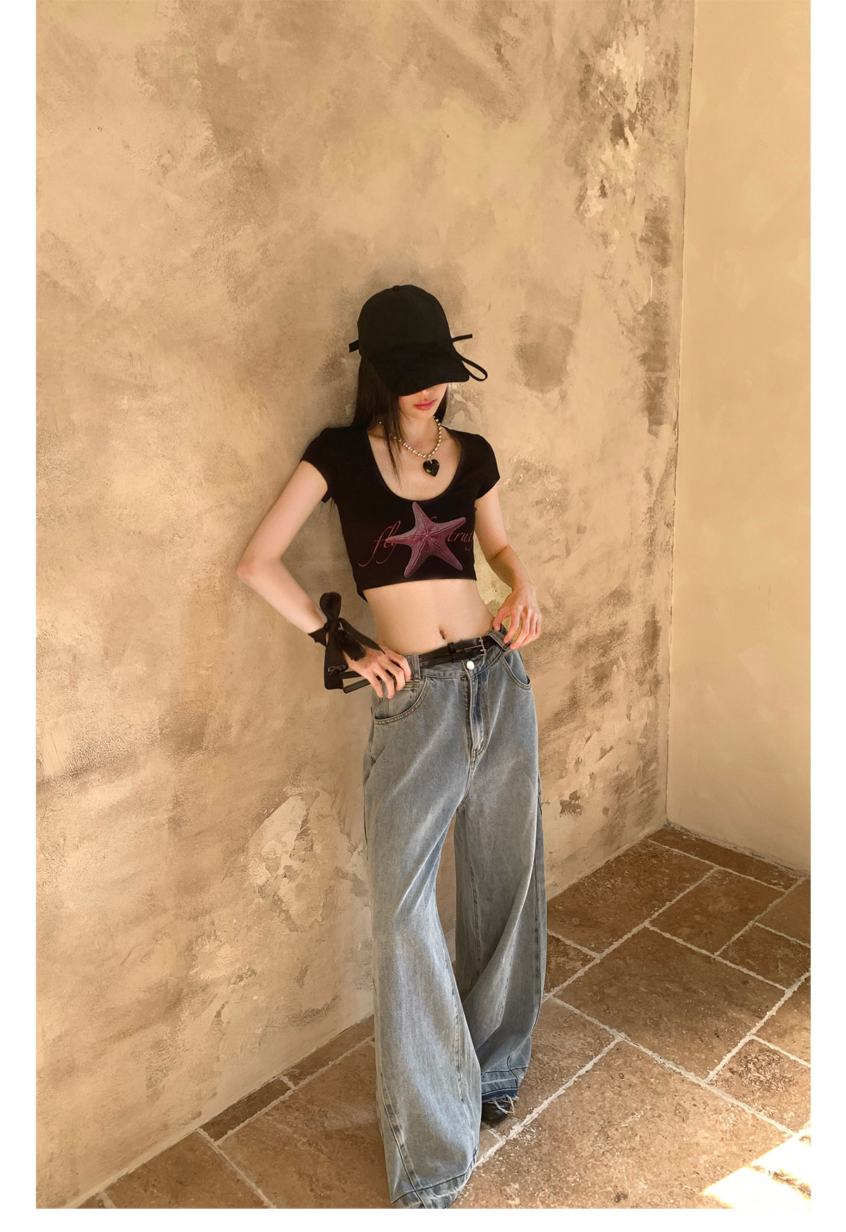 FTT FlyTheTruth『潮汐星吻』复古海星印花短袖T恤女夏修身短上衣