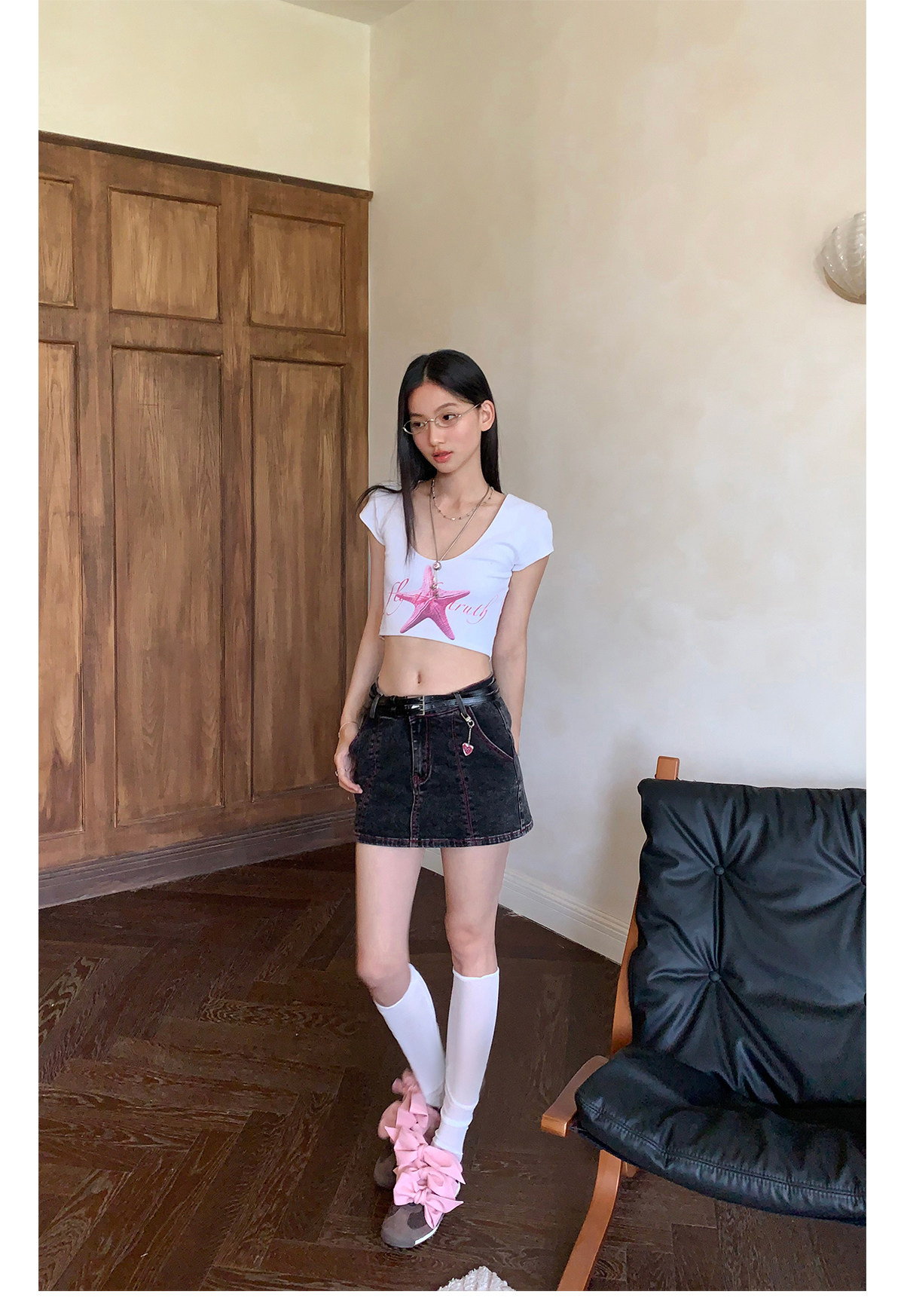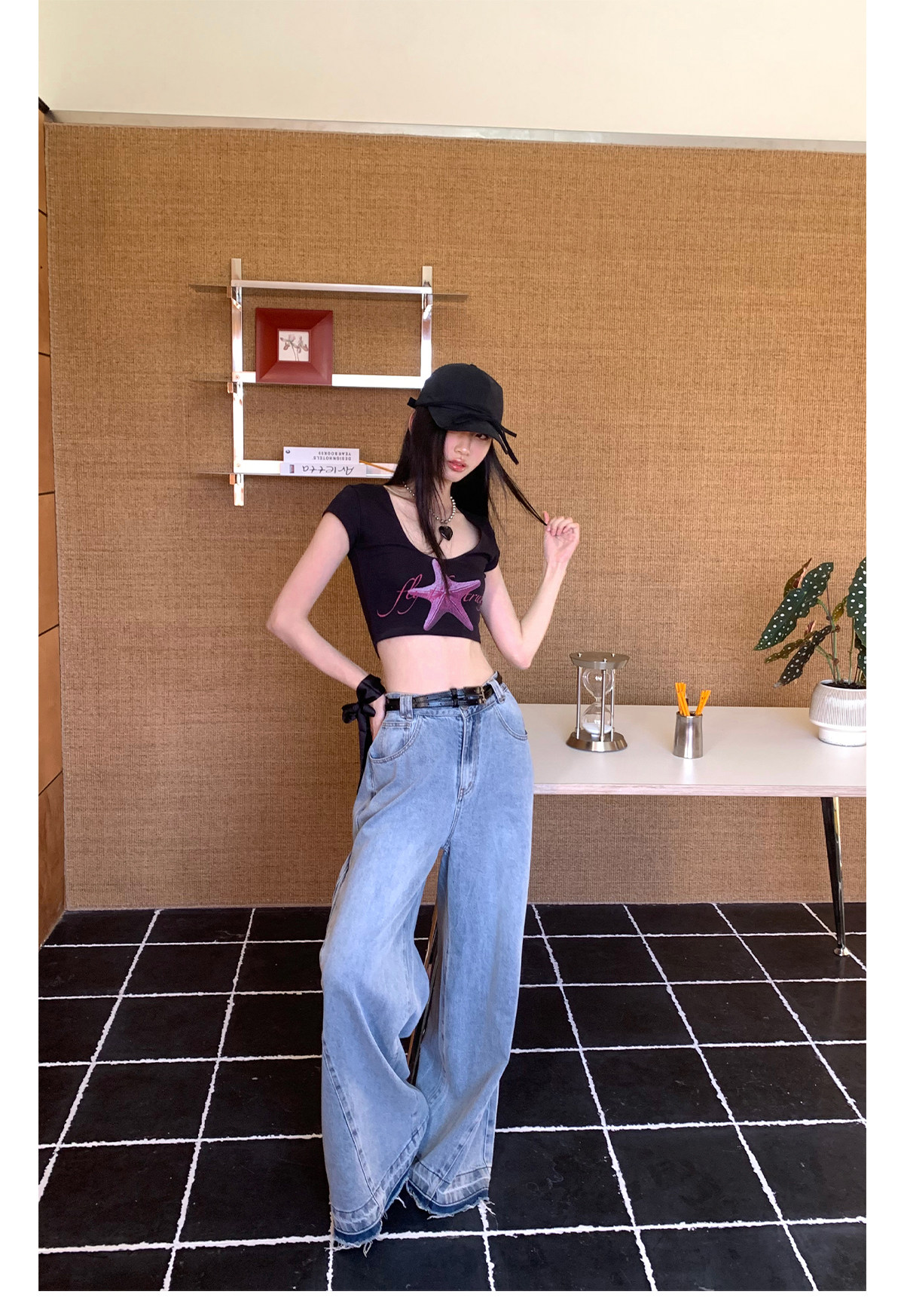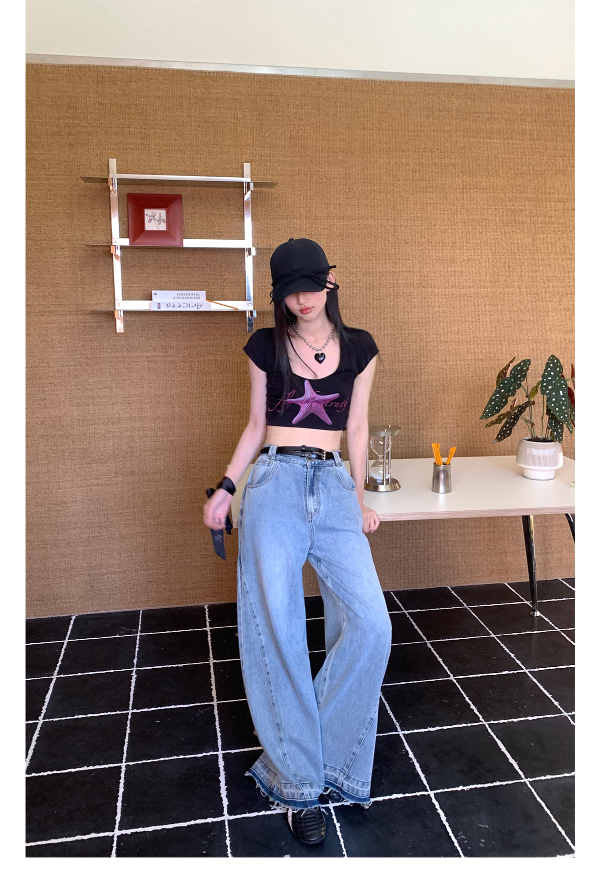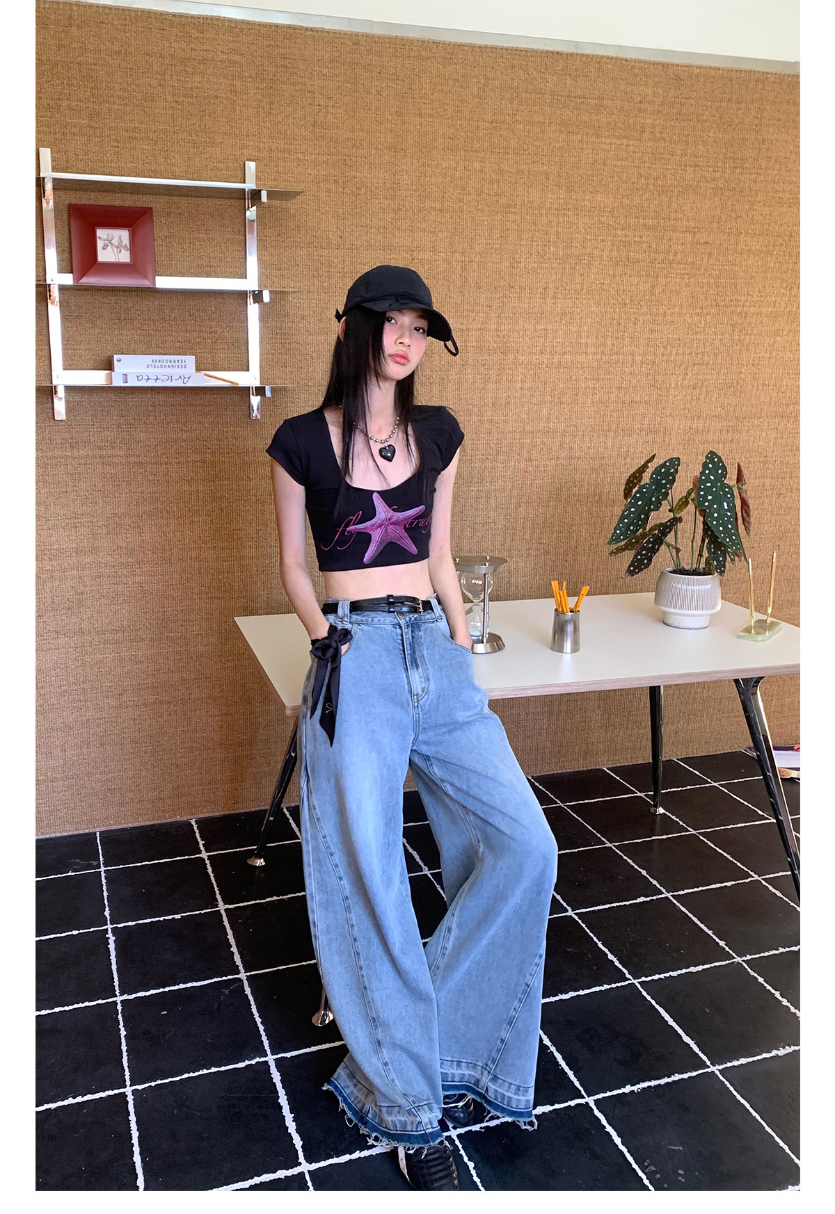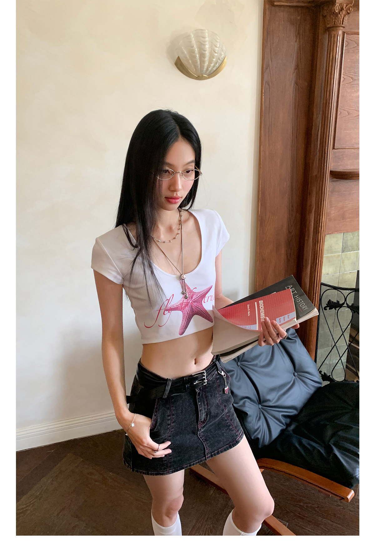 FTT FlyTheTruth『潮汐星吻』复古海星印花短袖T恤女夏修身短上衣