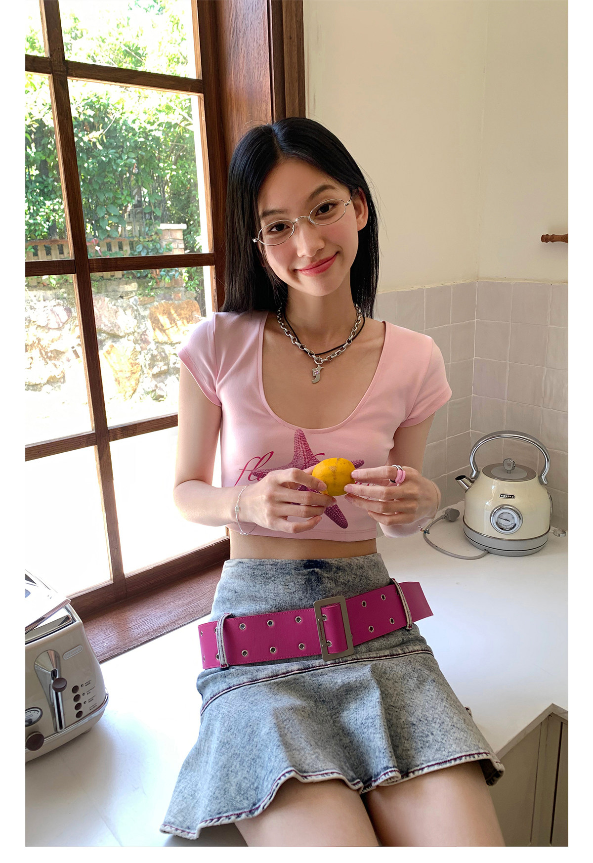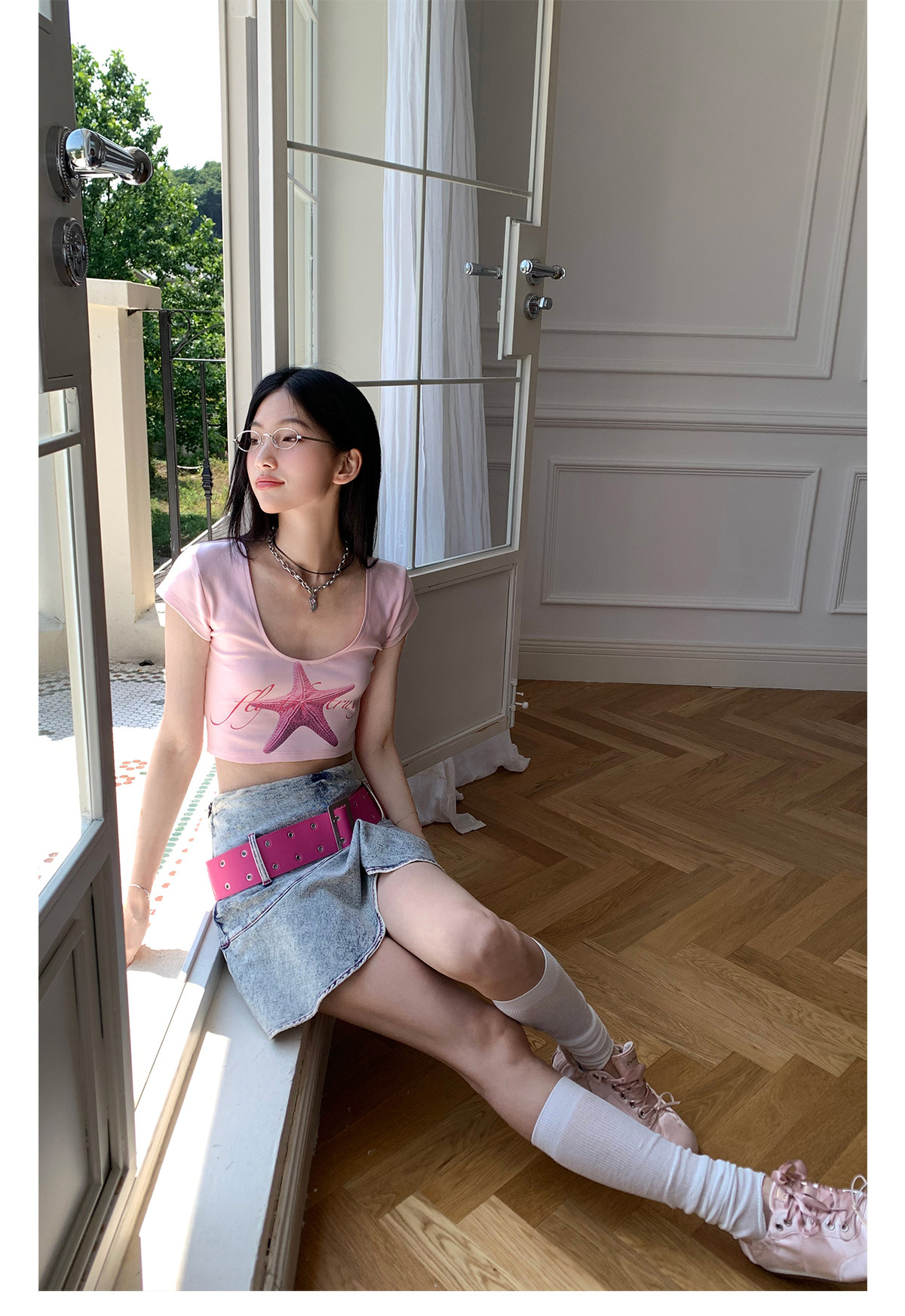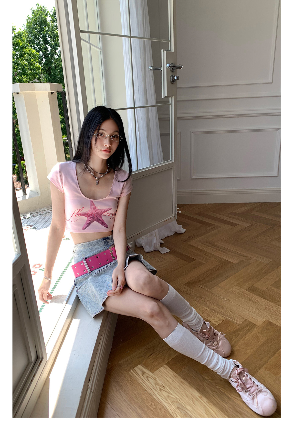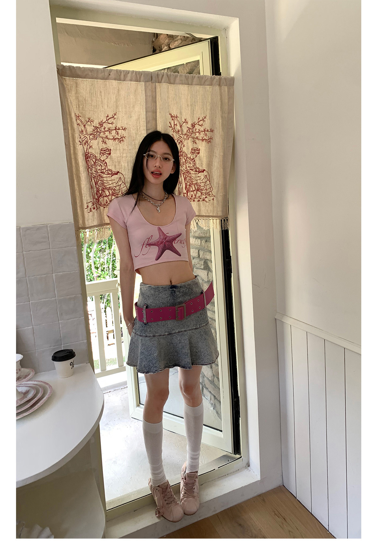 FTT FlyTheTruth『潮汐星吻』复古海星印花短袖T恤女夏修身短上衣