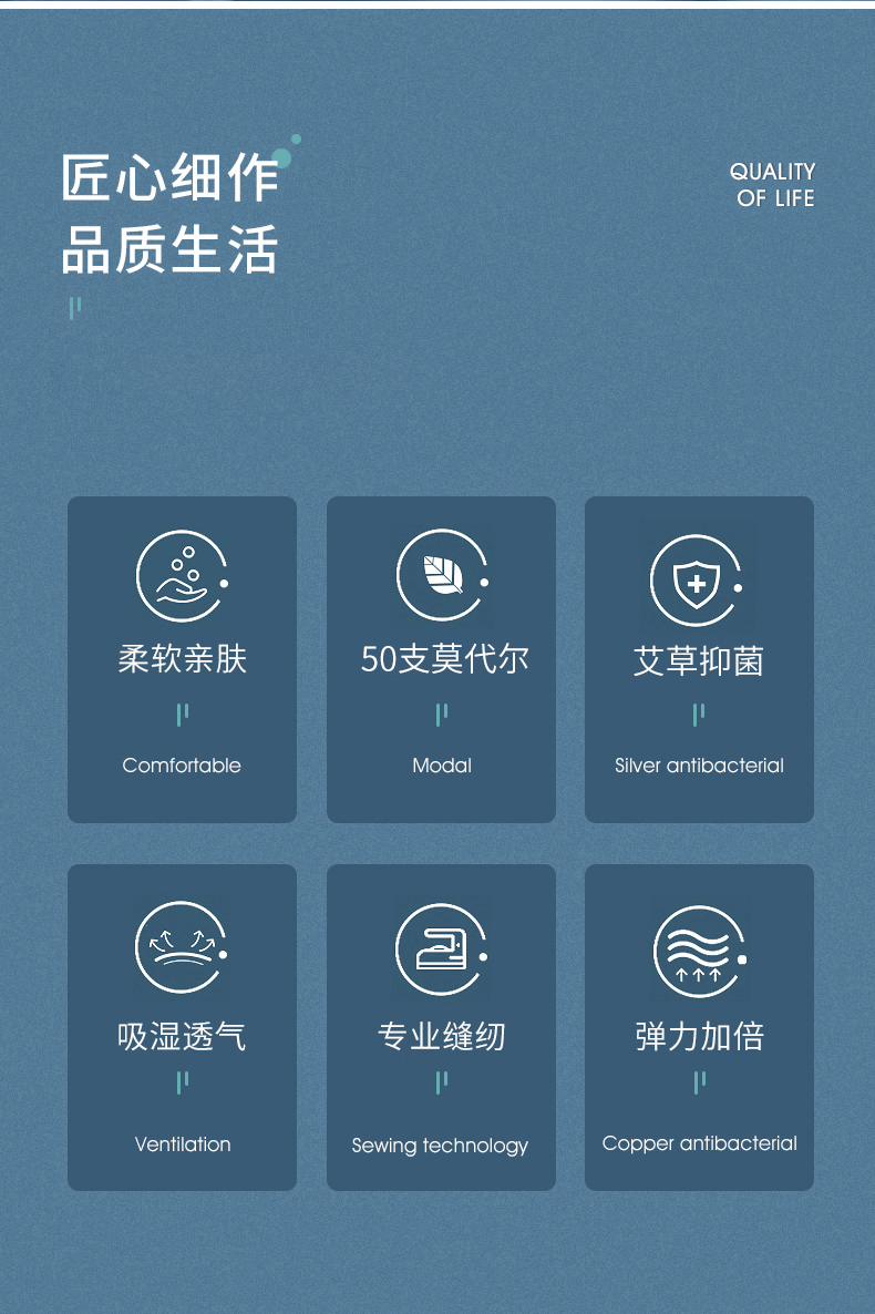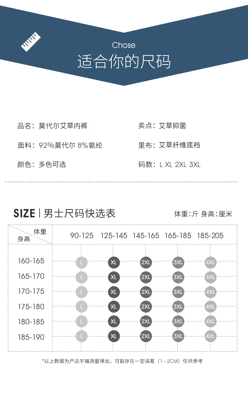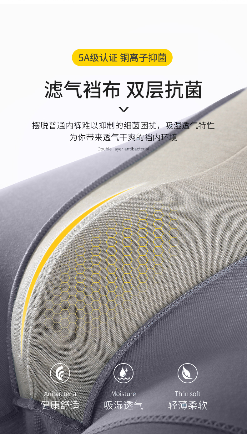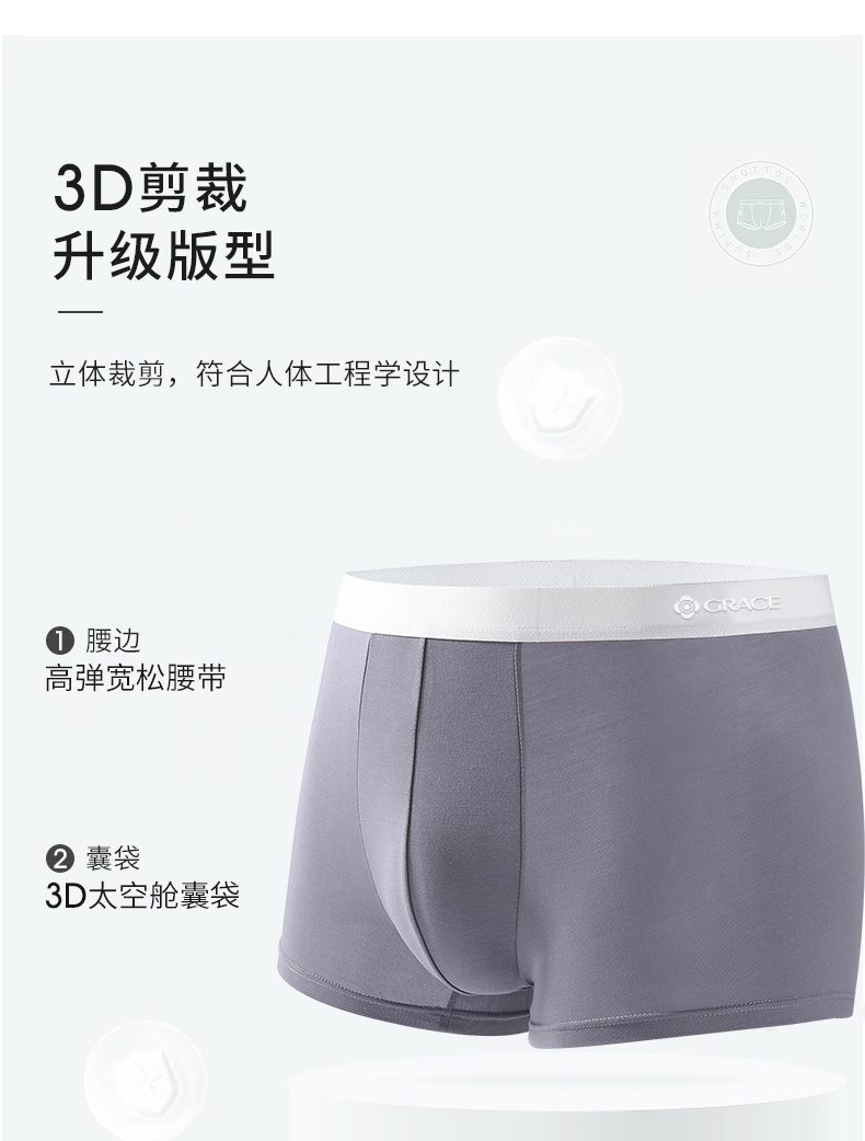 洁丽雅男士内裤莫代尔抗菌中腰短裤成人男生青少年四角平角裤