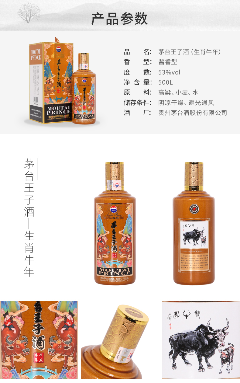 茅台王子酒 生肖年份纪念酒 王子牛年 500ml