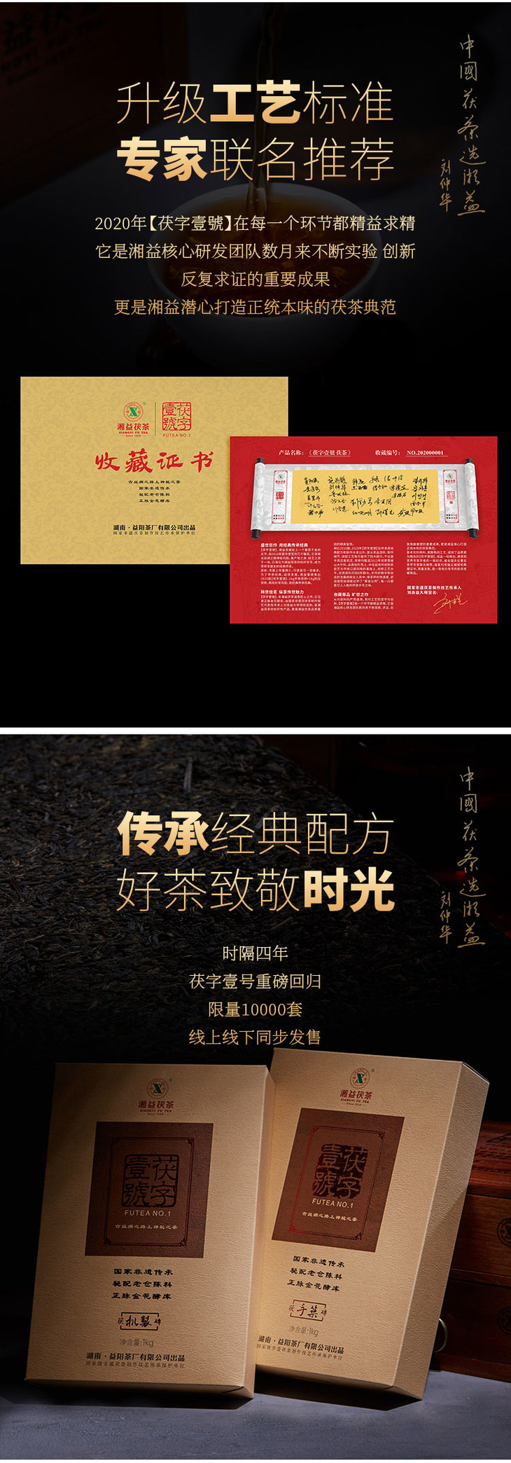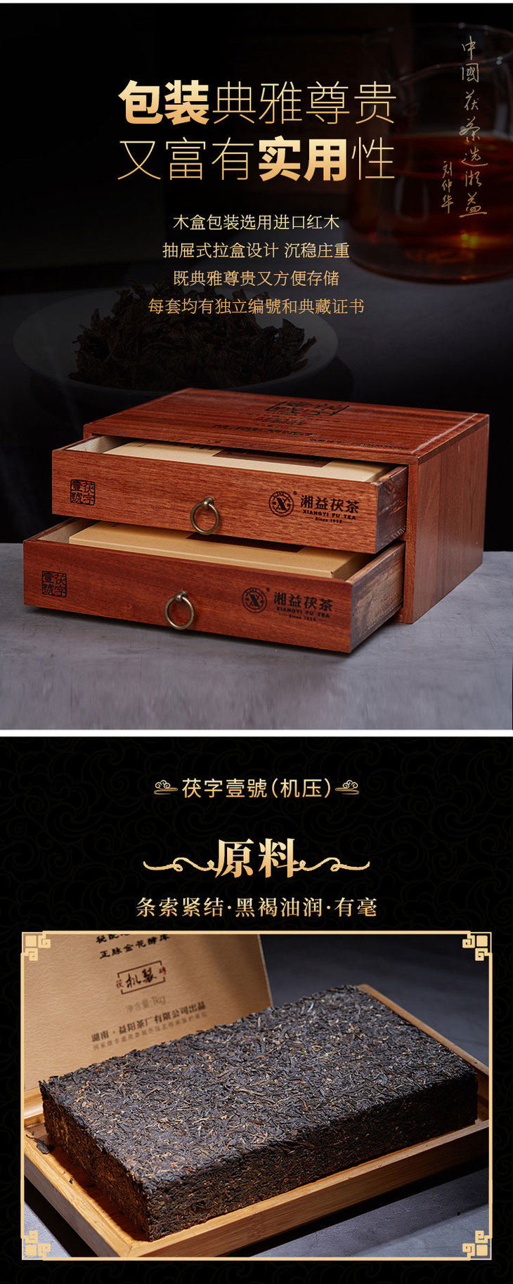 安化黑茶 湘益 2020年 茯字壹号 1kg手筑+1kg机压