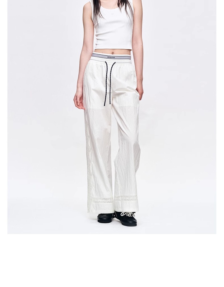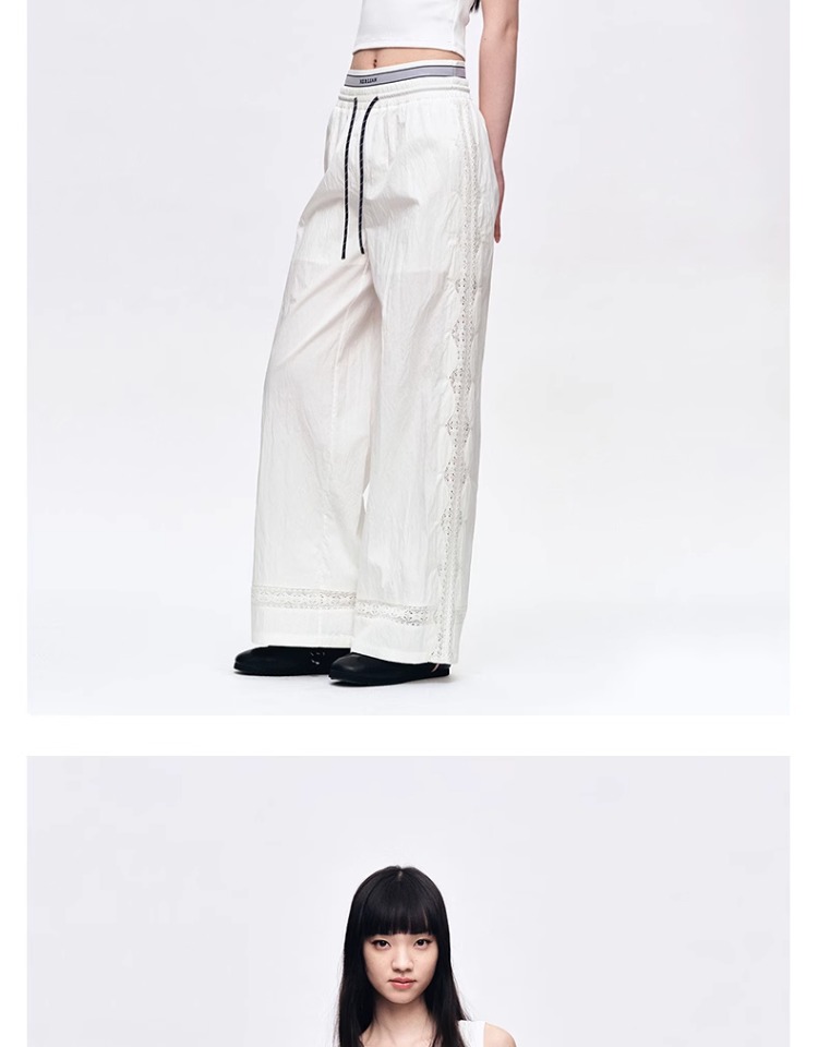 Herlian2025年秋季新品女士牛仔裤裤脚拼接格纹原牛色宽松休闲裤
