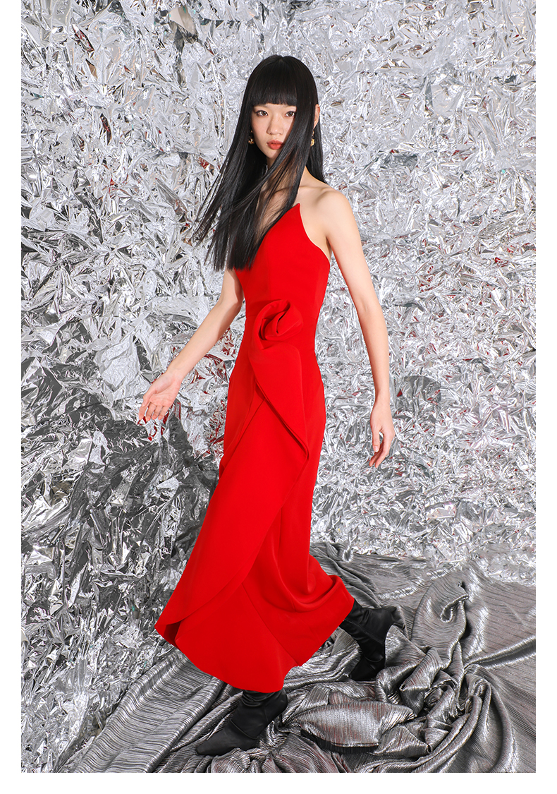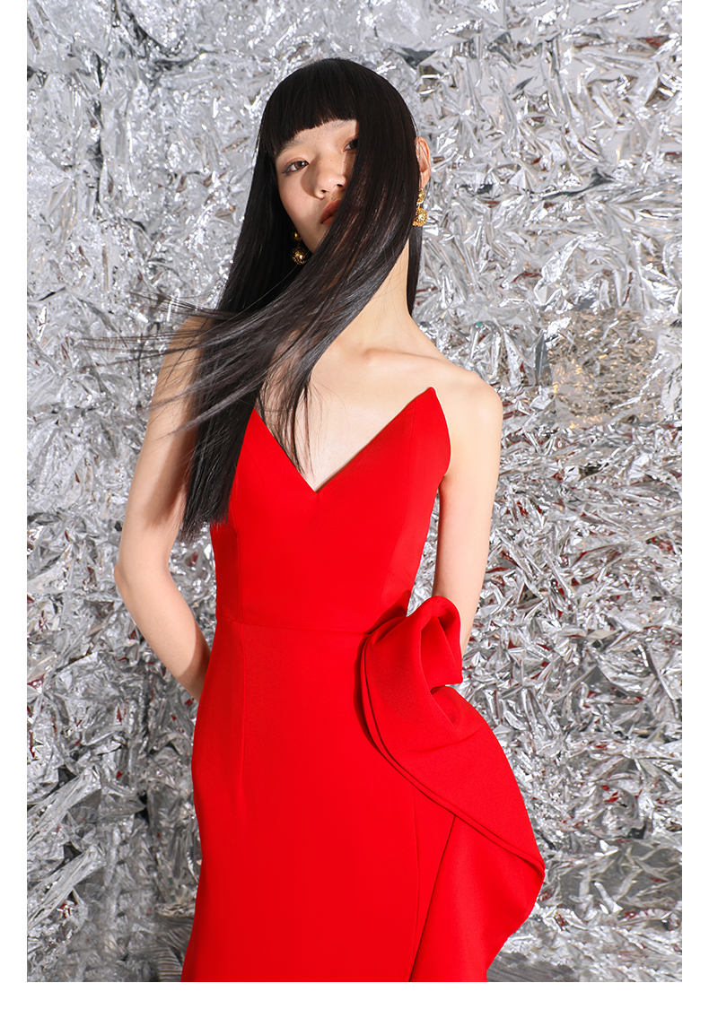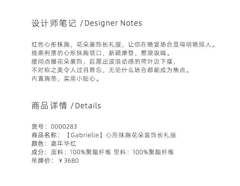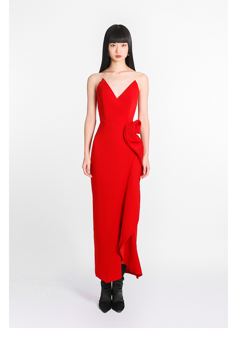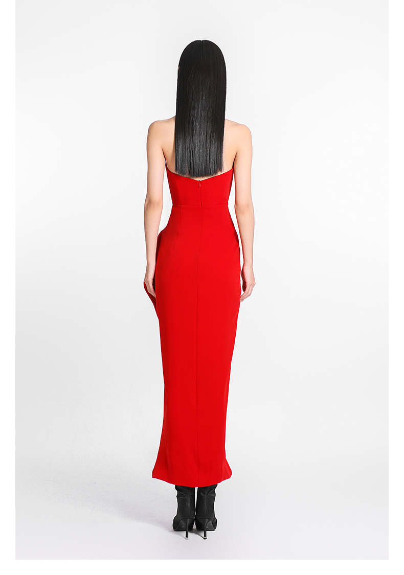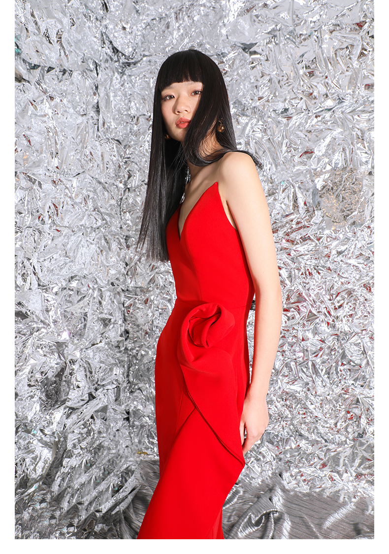 【Gabrielle】红色心形抹胸花朵装饰长礼服/0000283