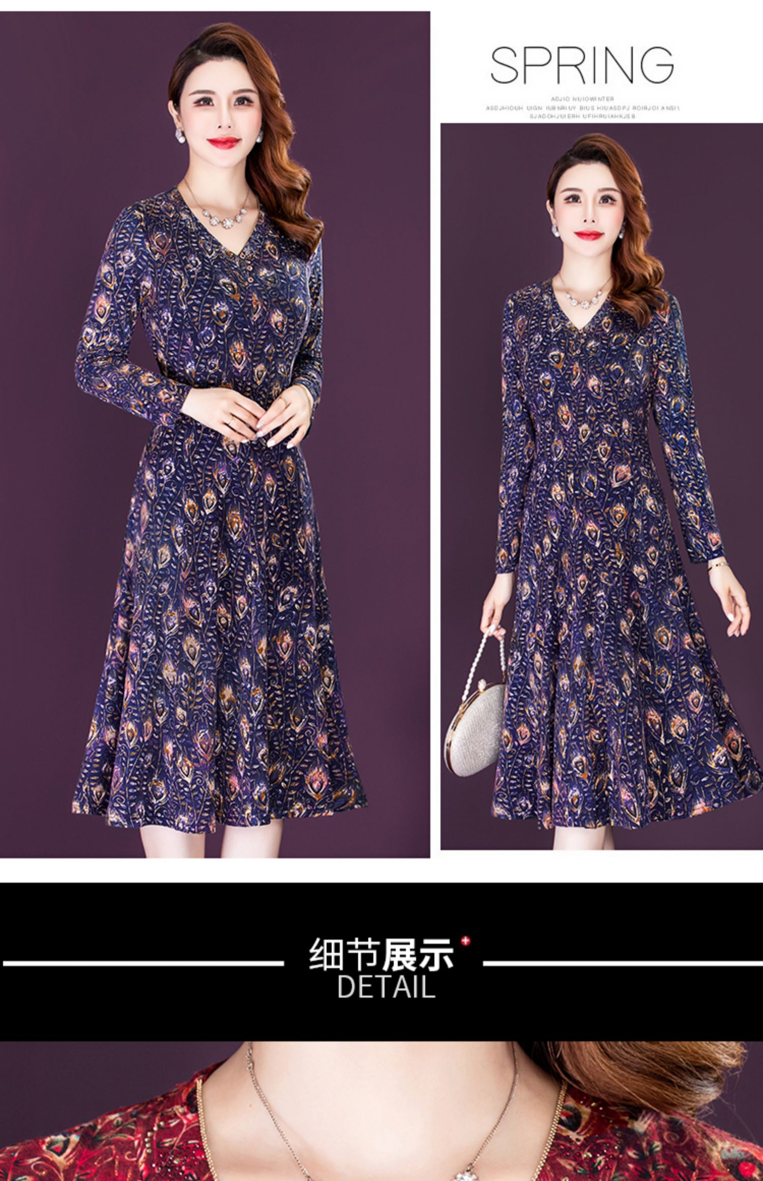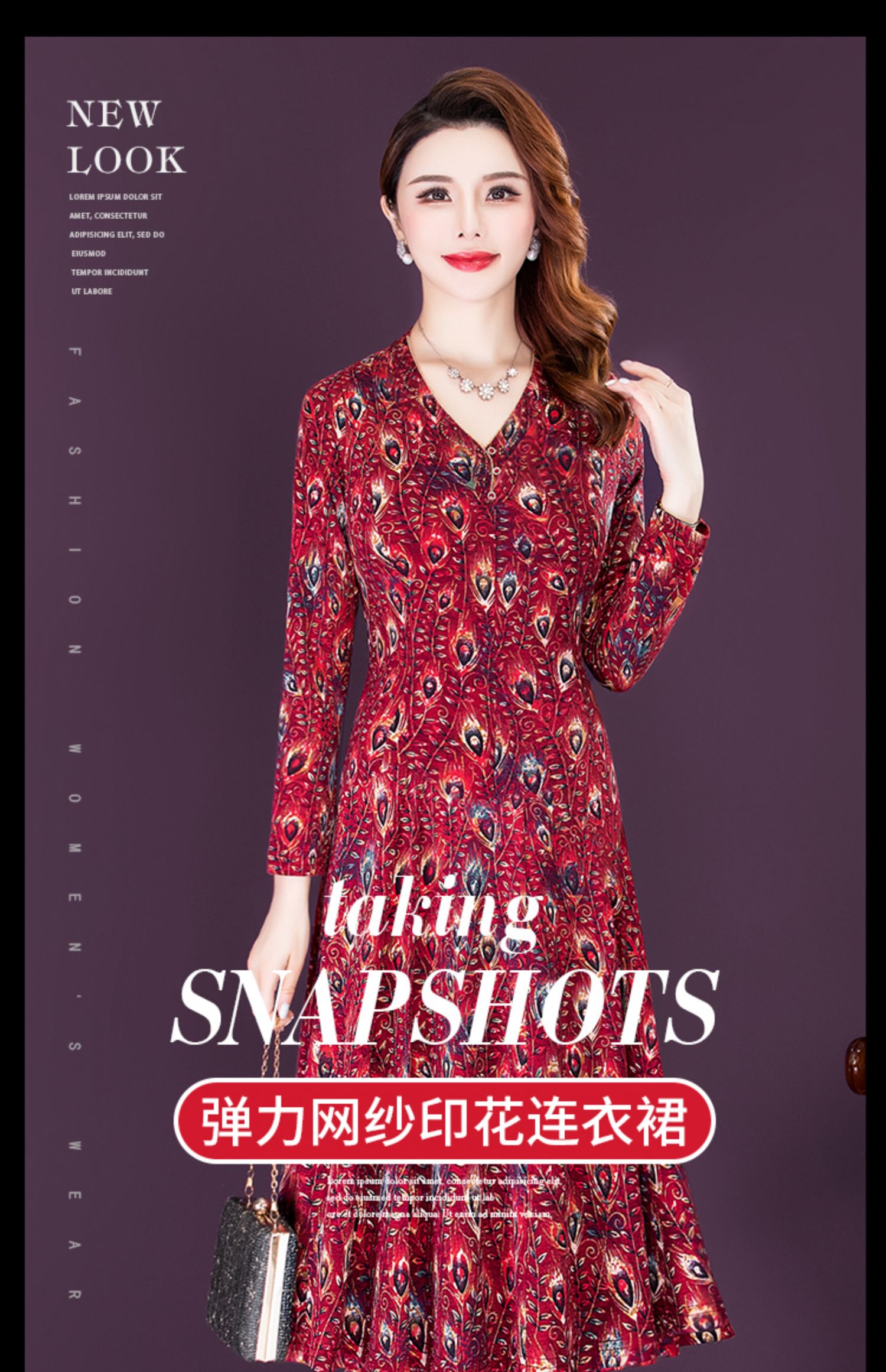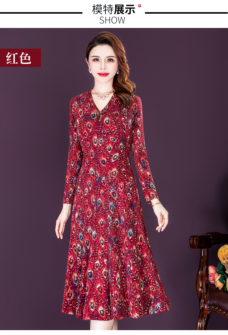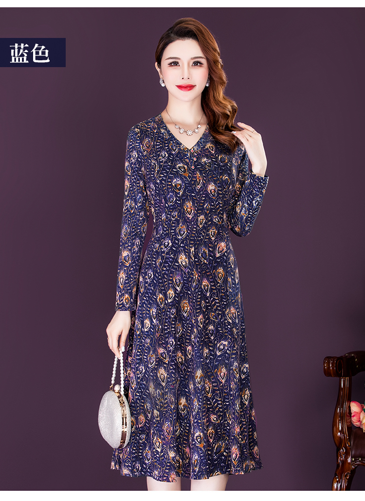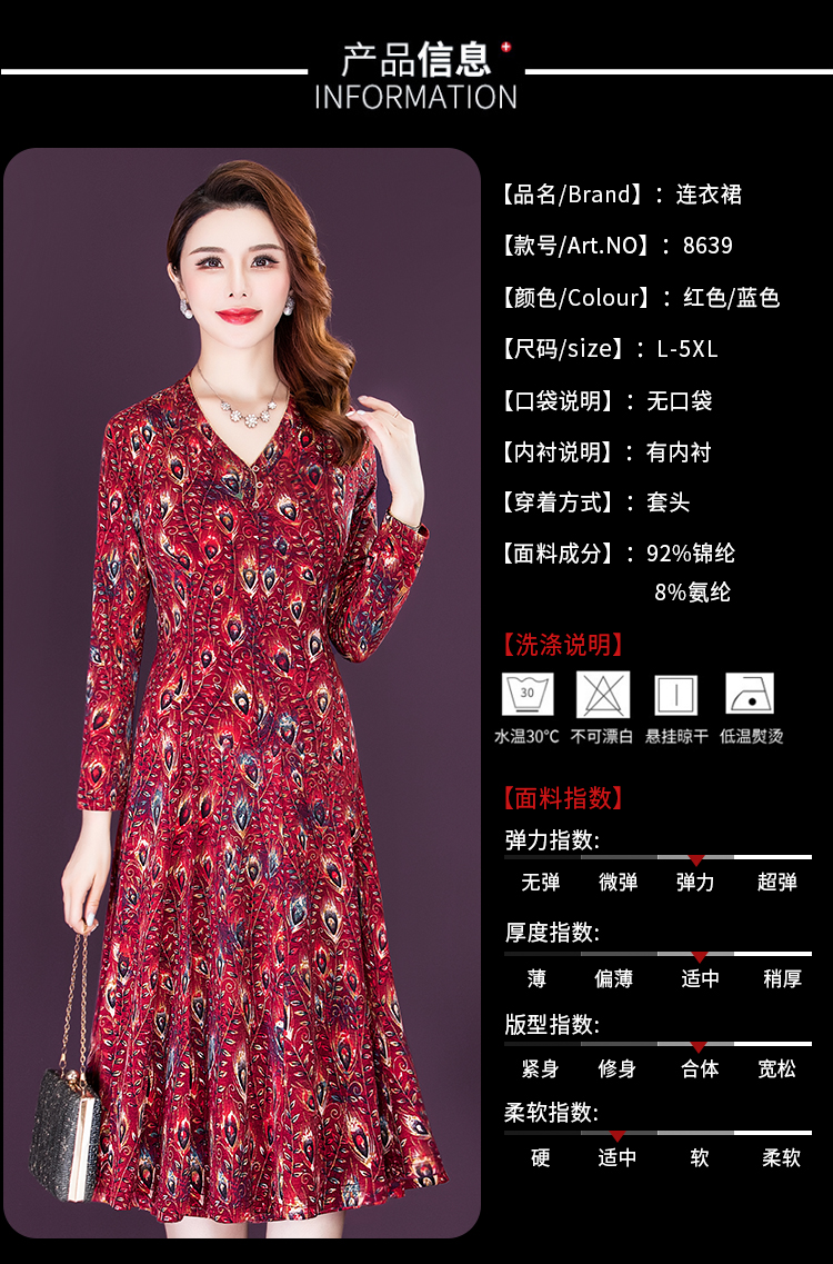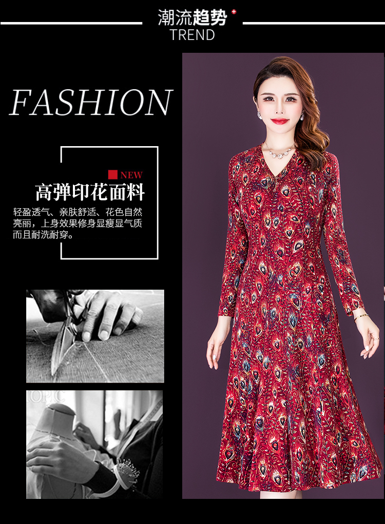 女春秋装印花连衣裙气质大码时尚裙 NSM8639