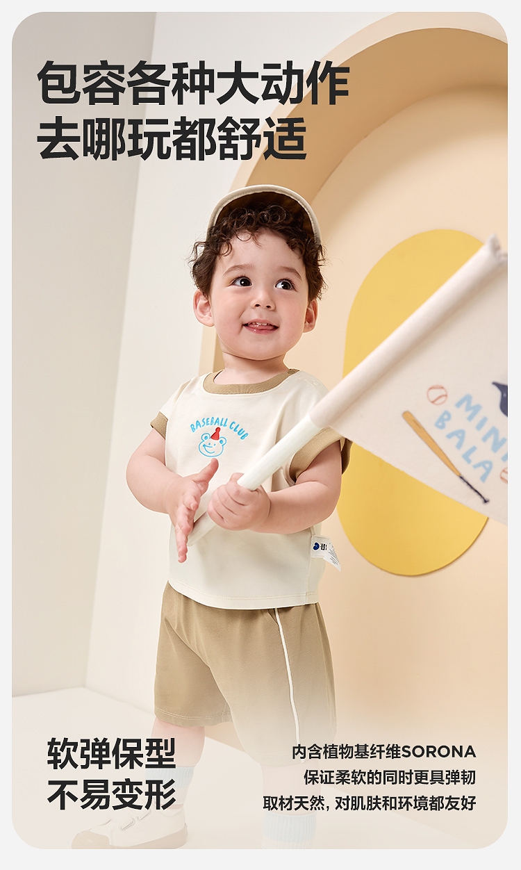 【凉感抑菌】迷你巴拉短袖套装男女童宝宝夏日短袖短裤两件套