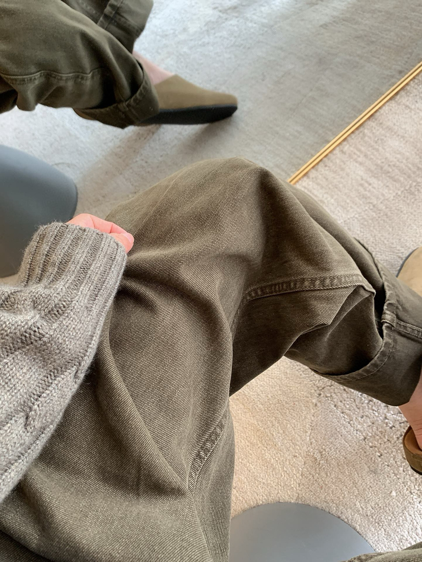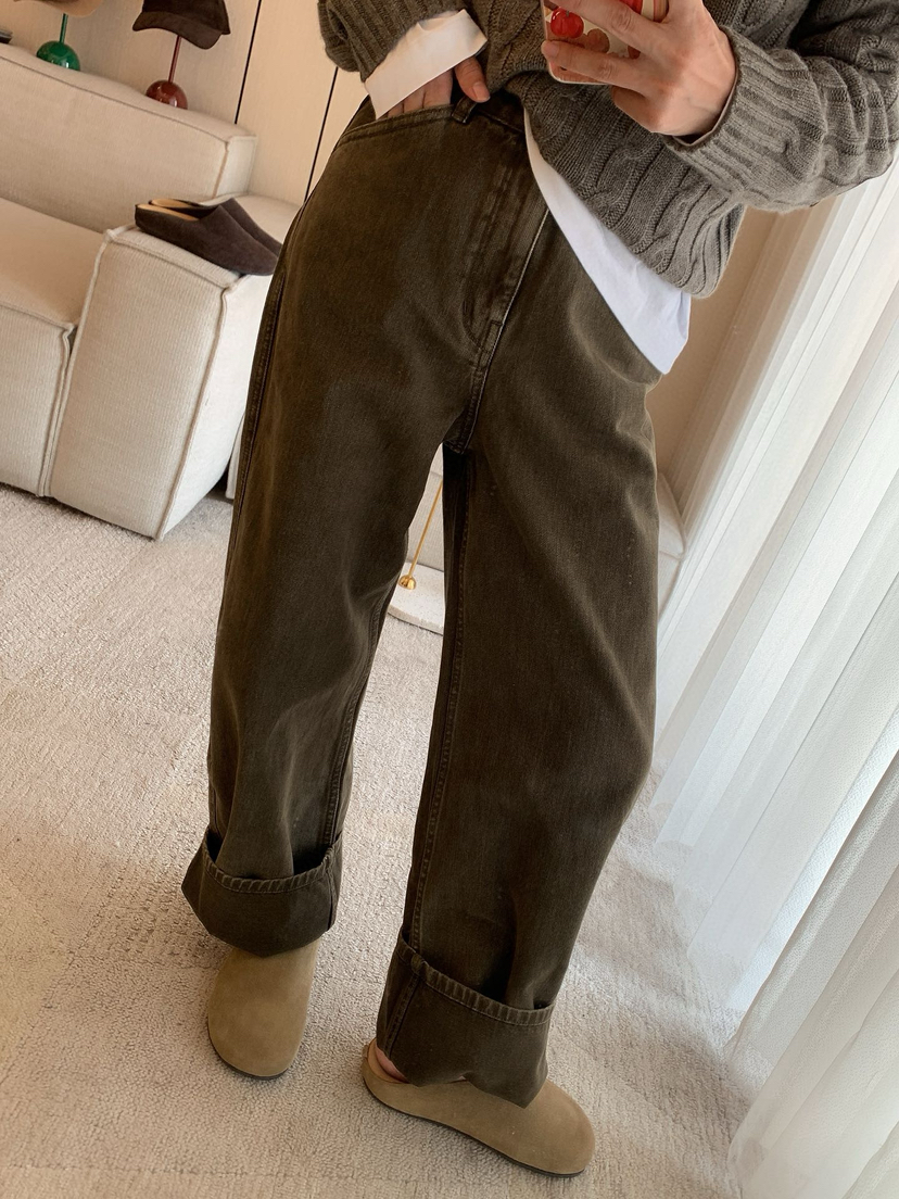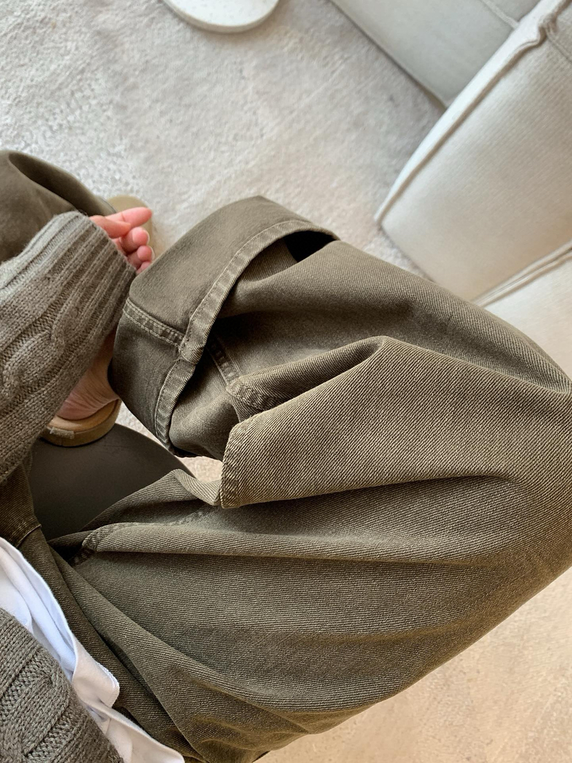1128-9 微商相册 lew 复古墨绿 小直筒 牛仔裤