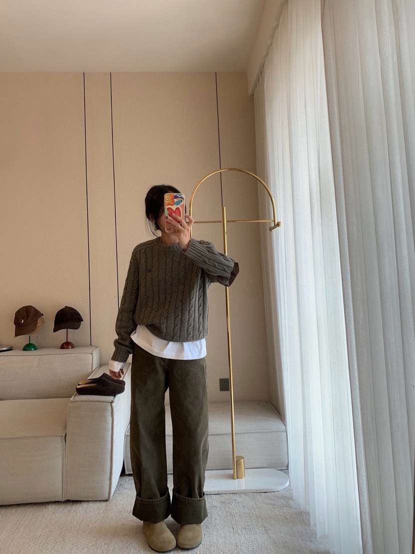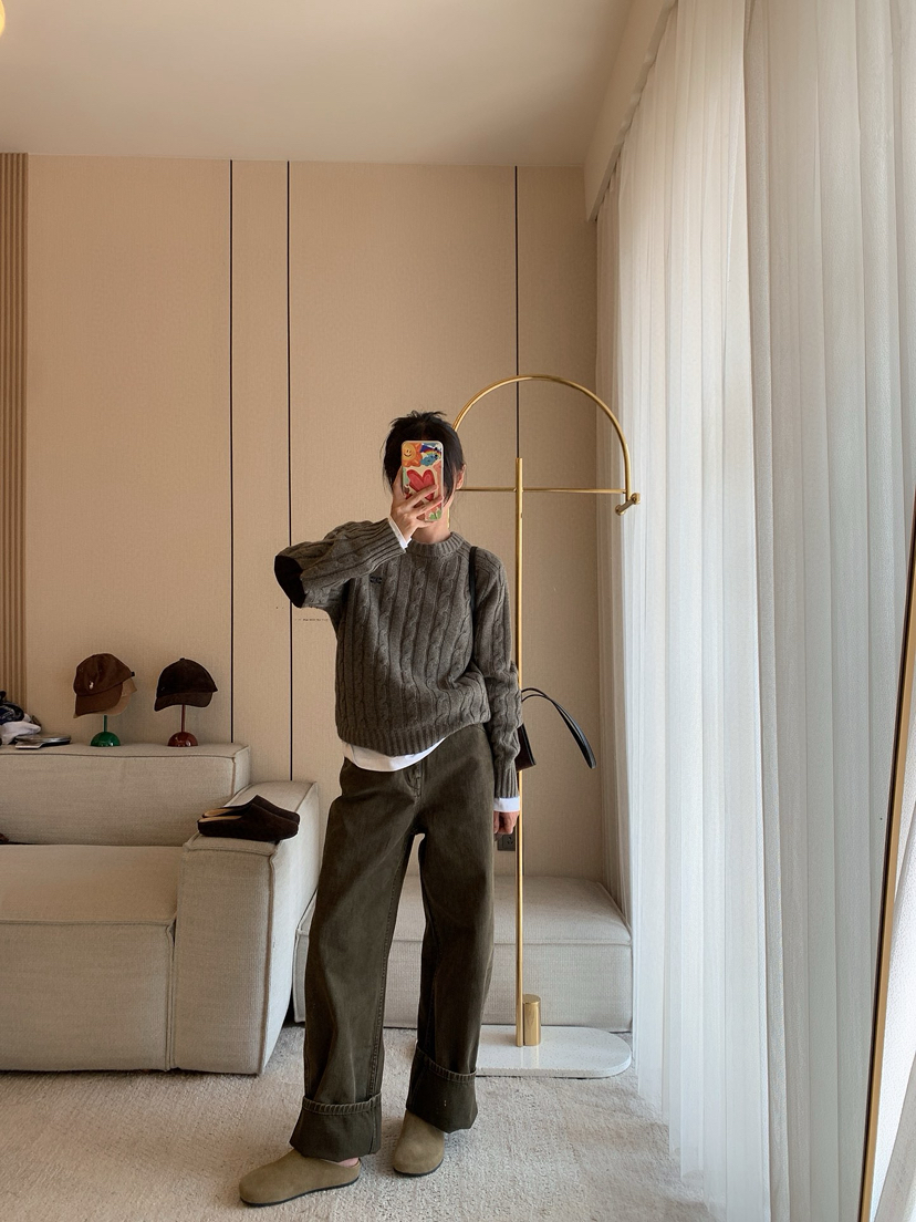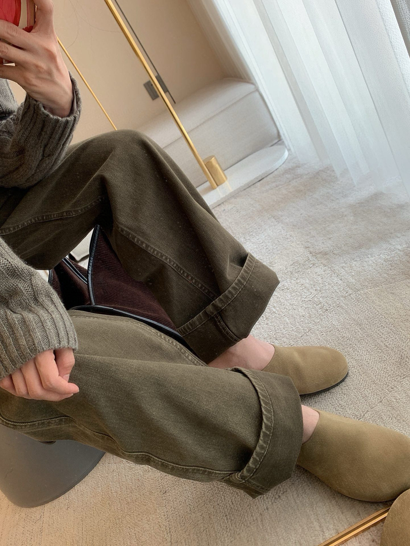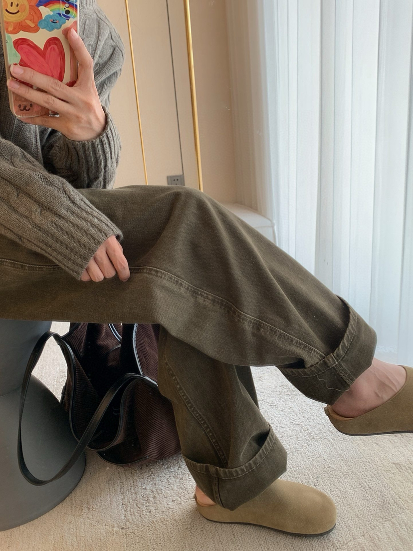1128-9 微商相册 lew 复古墨绿 小直筒 牛仔裤