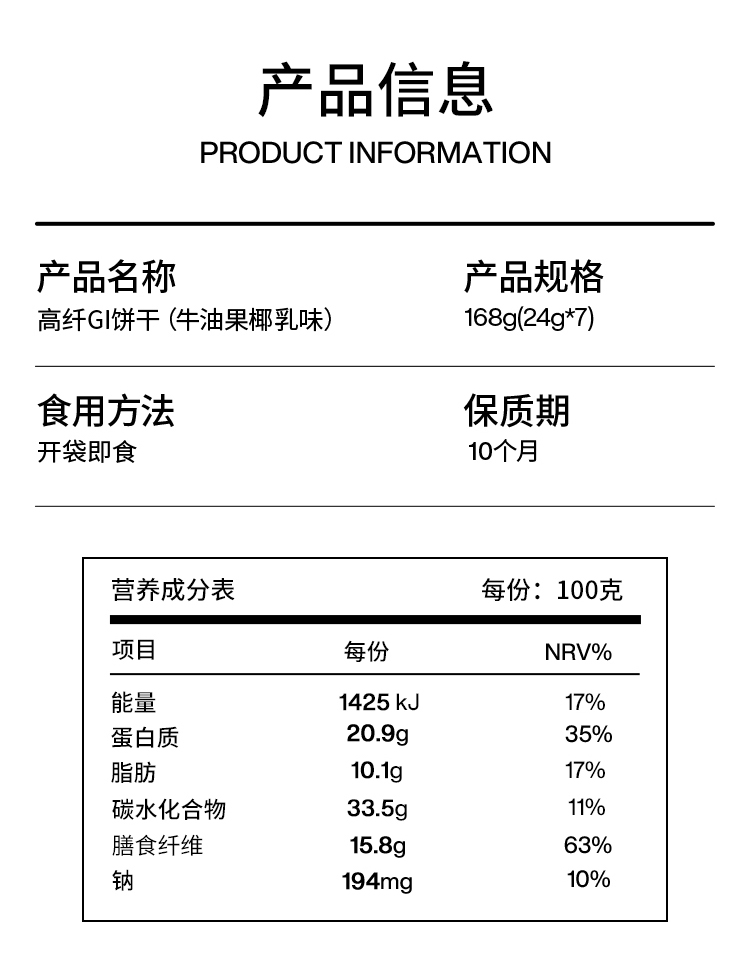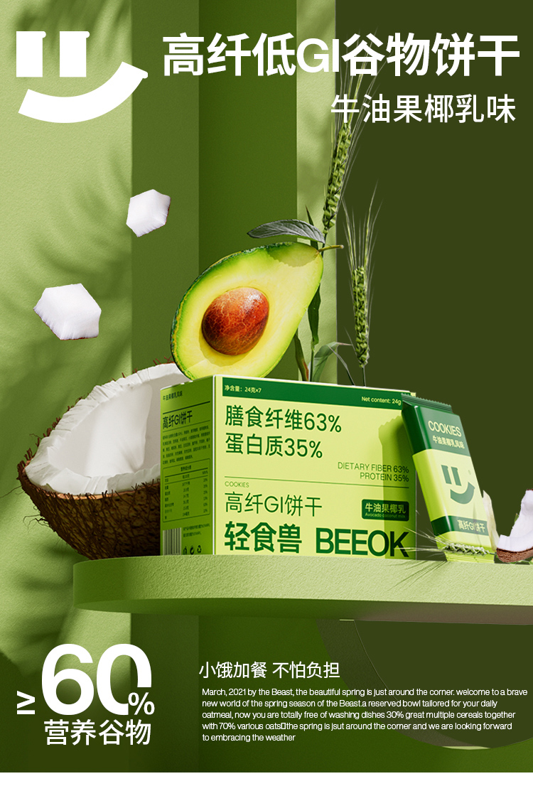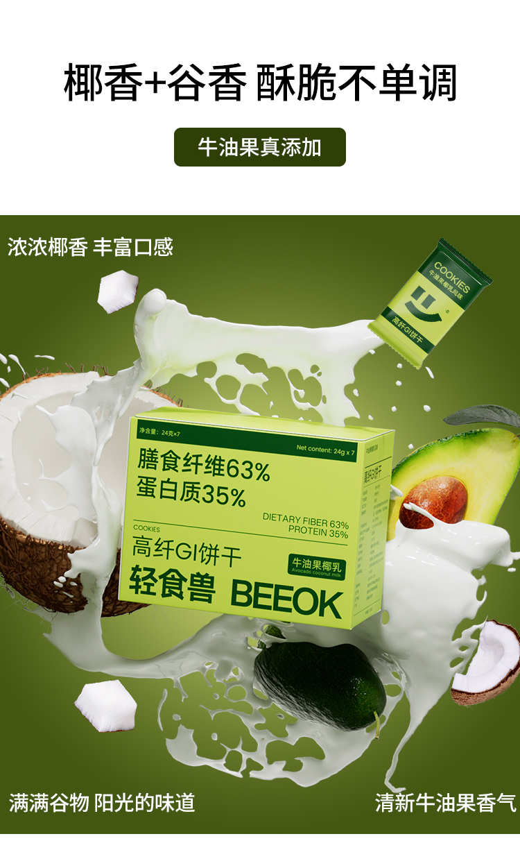 【丁妈认真选专属】轻食兽 牛油果椰乳高纤低GI代餐饼干