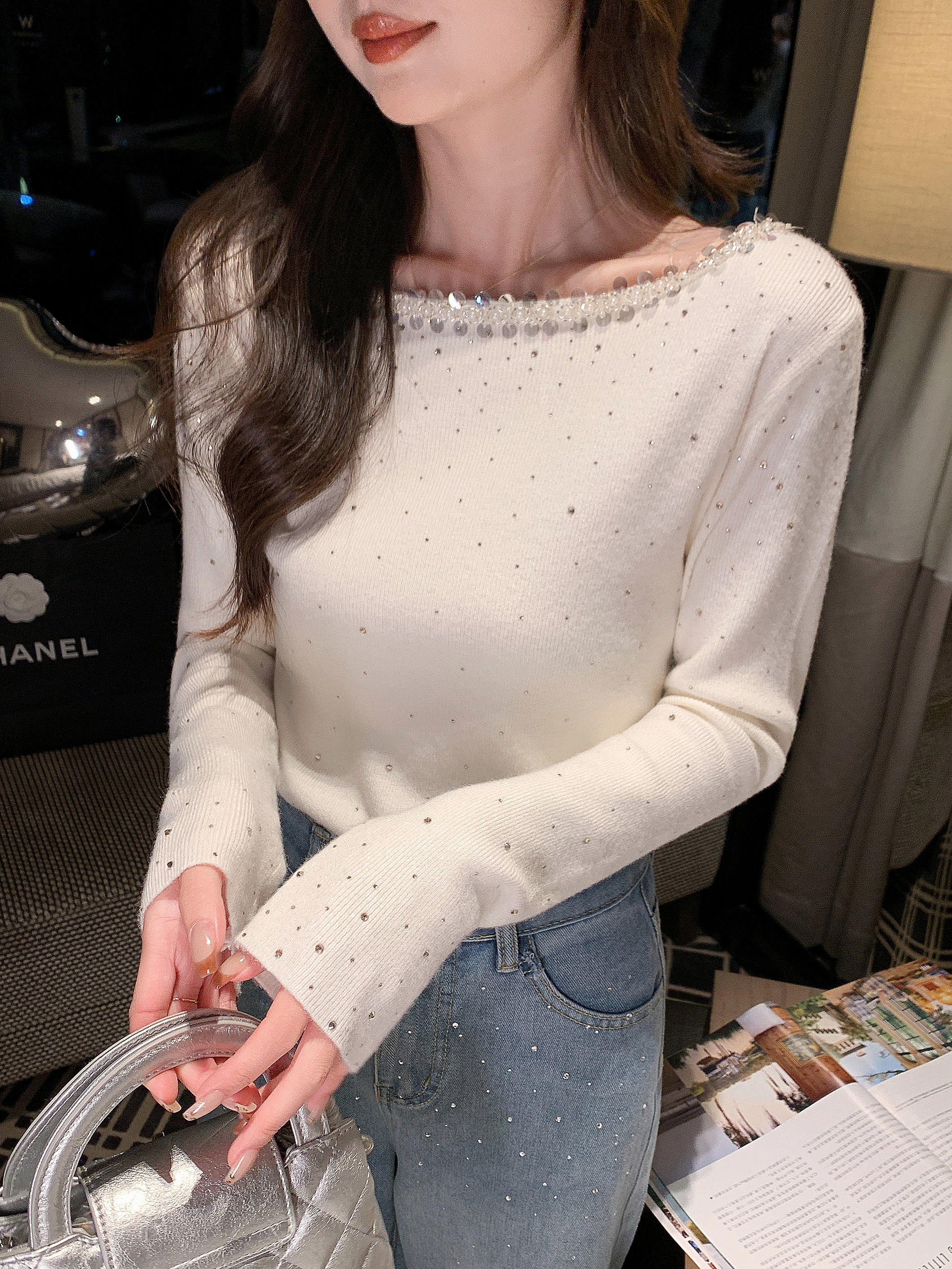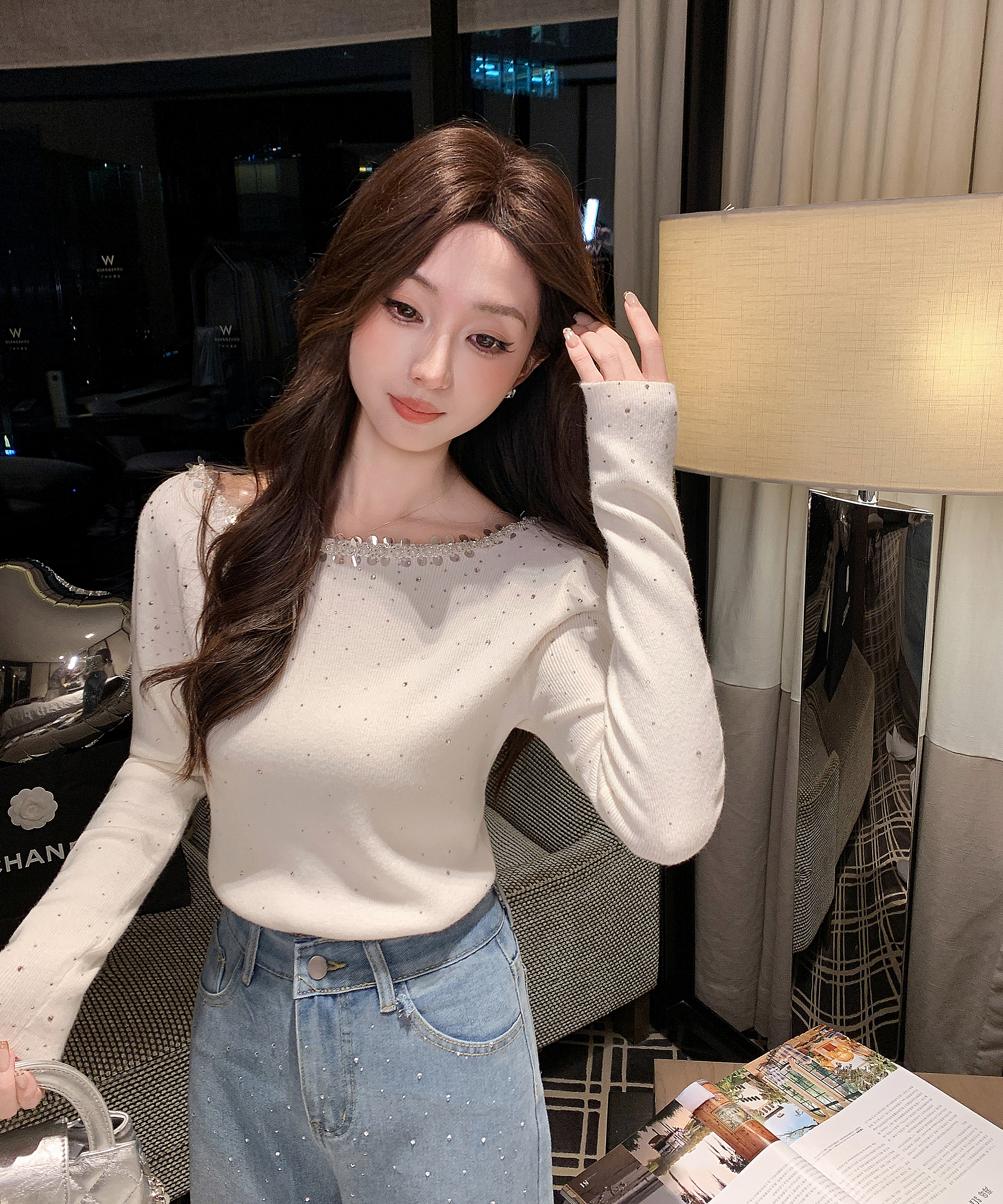 张心子【巴黎记事】软糯亮片圆领针织打底衫上衣 U2509033