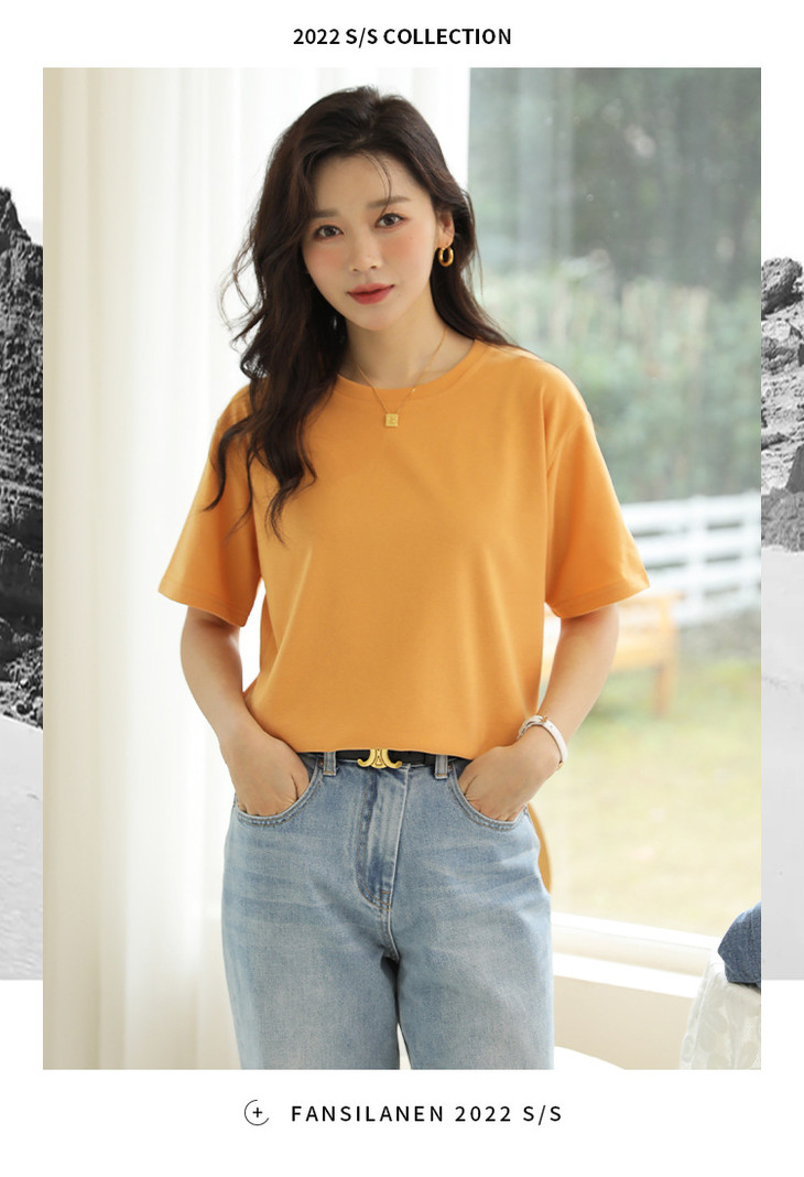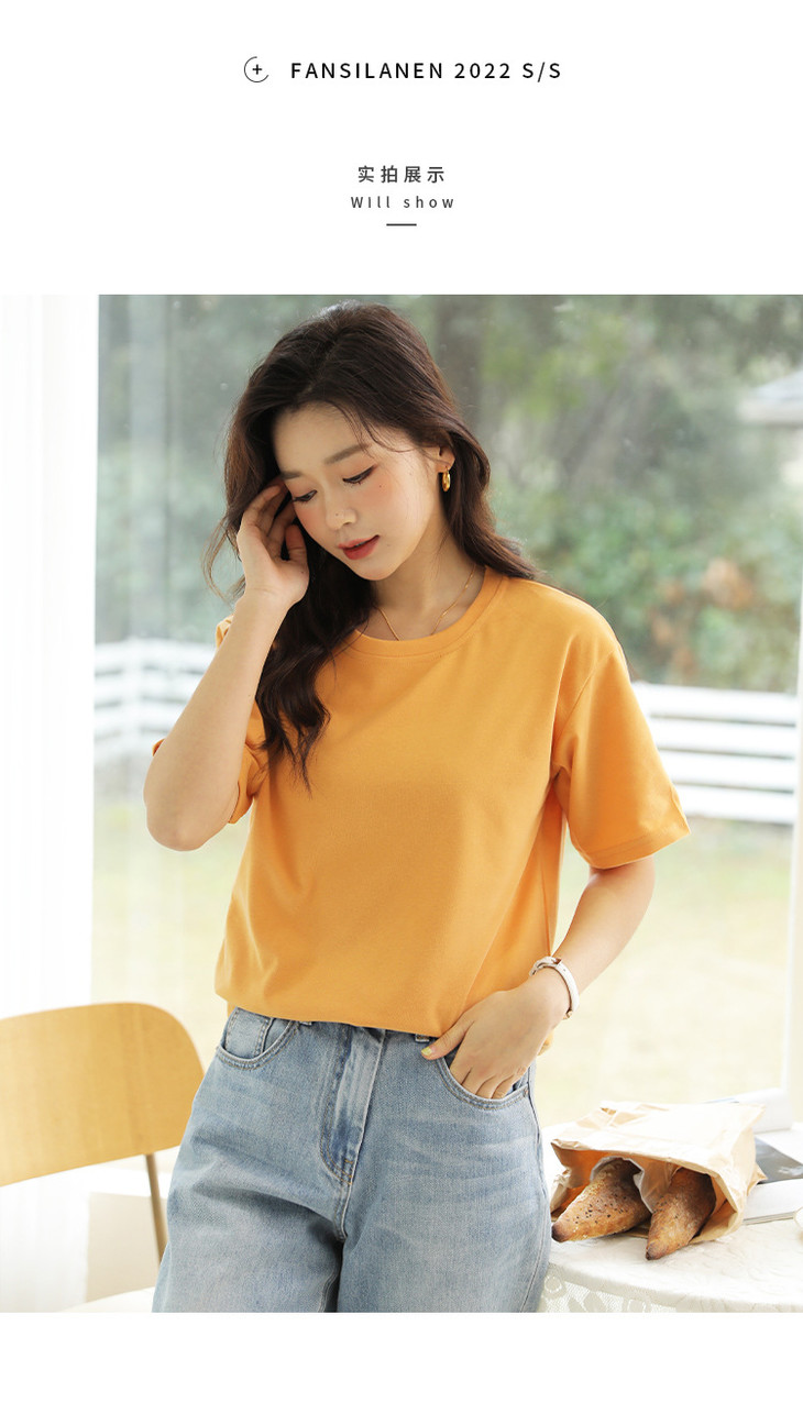 「马卡龙棉!感受不一样的质感」纯色女装春夏外穿宽松打底上衣圆领内搭套头短袖