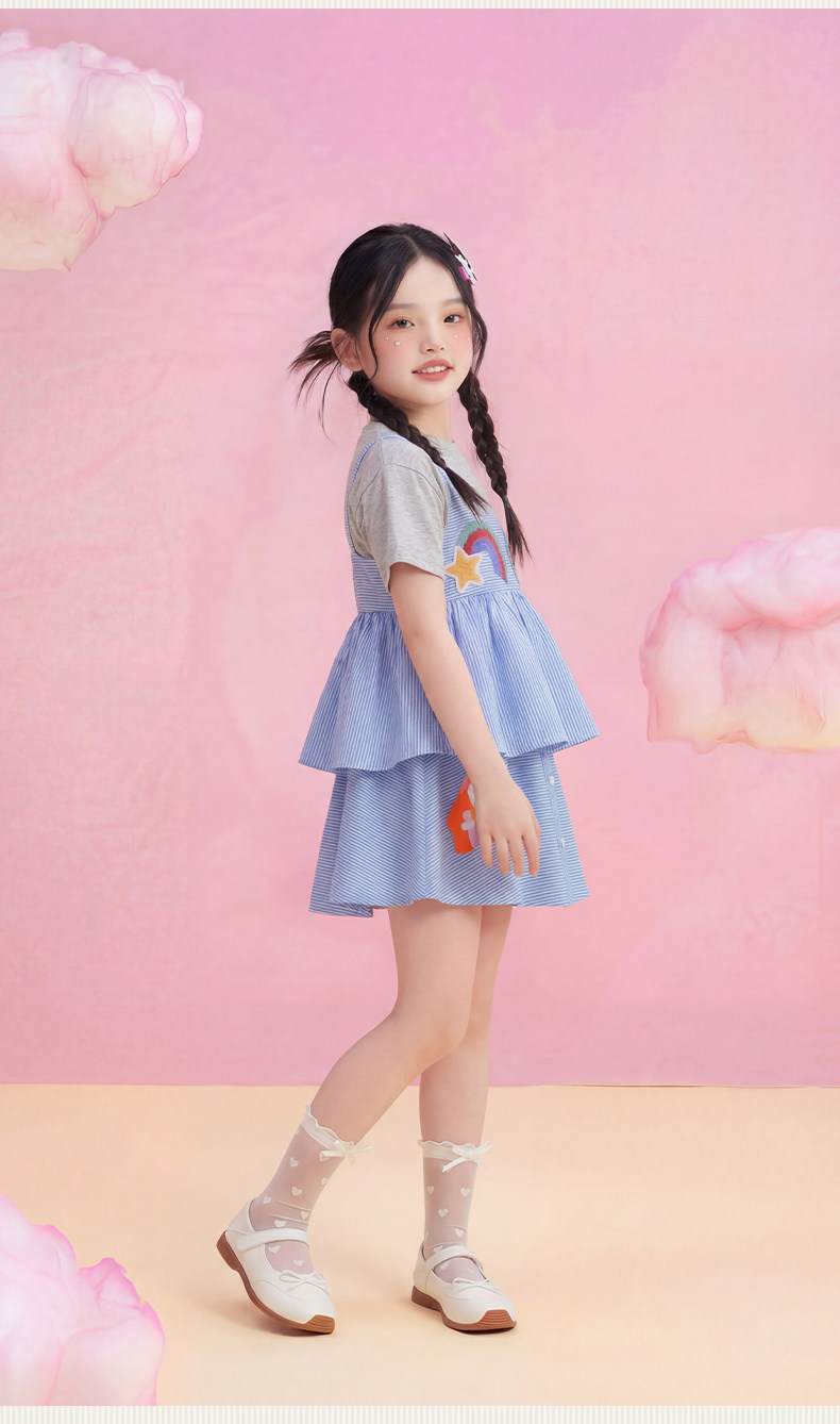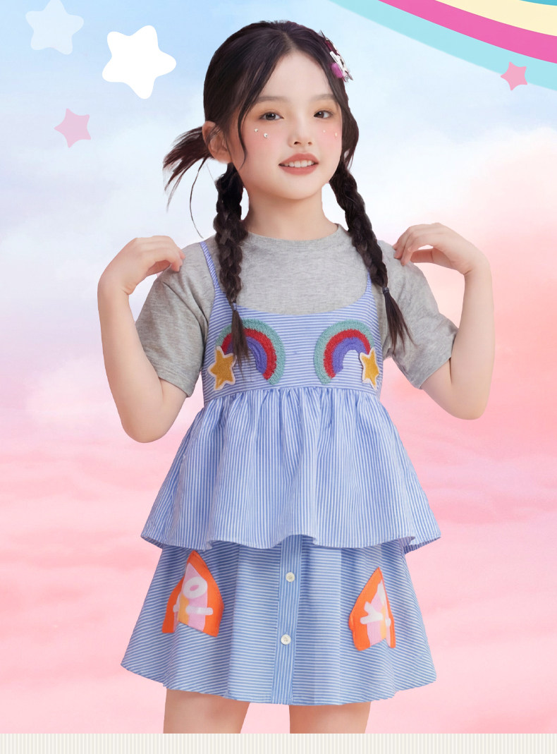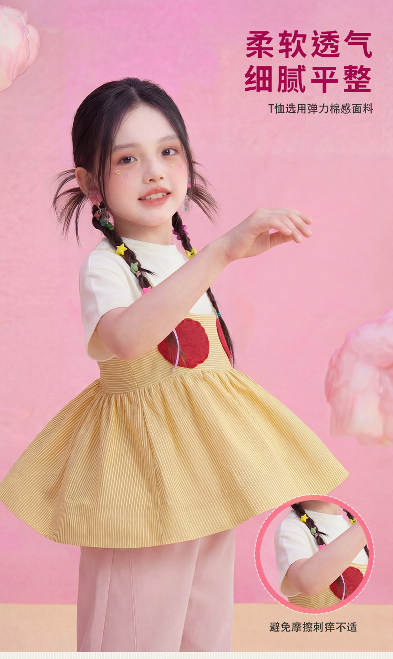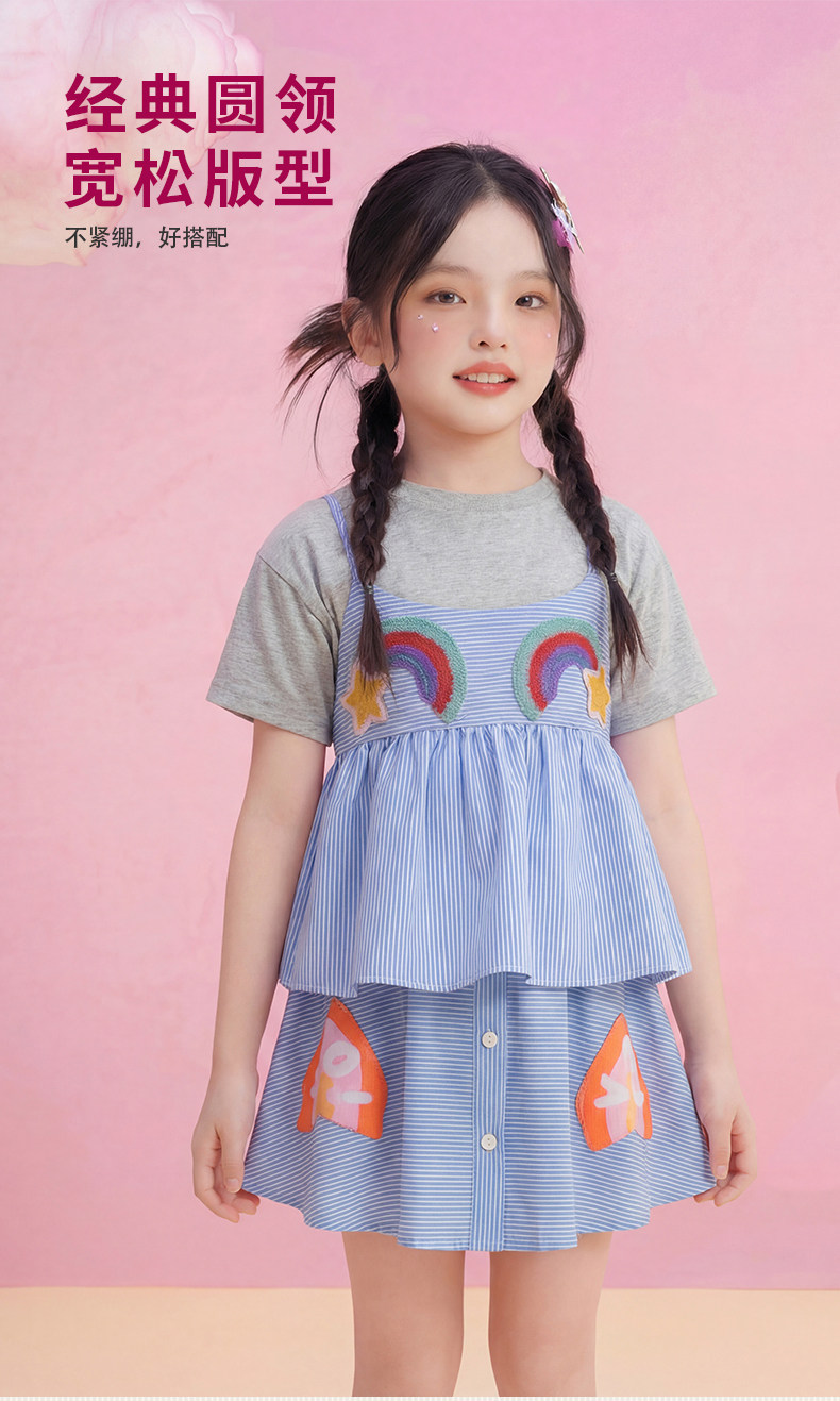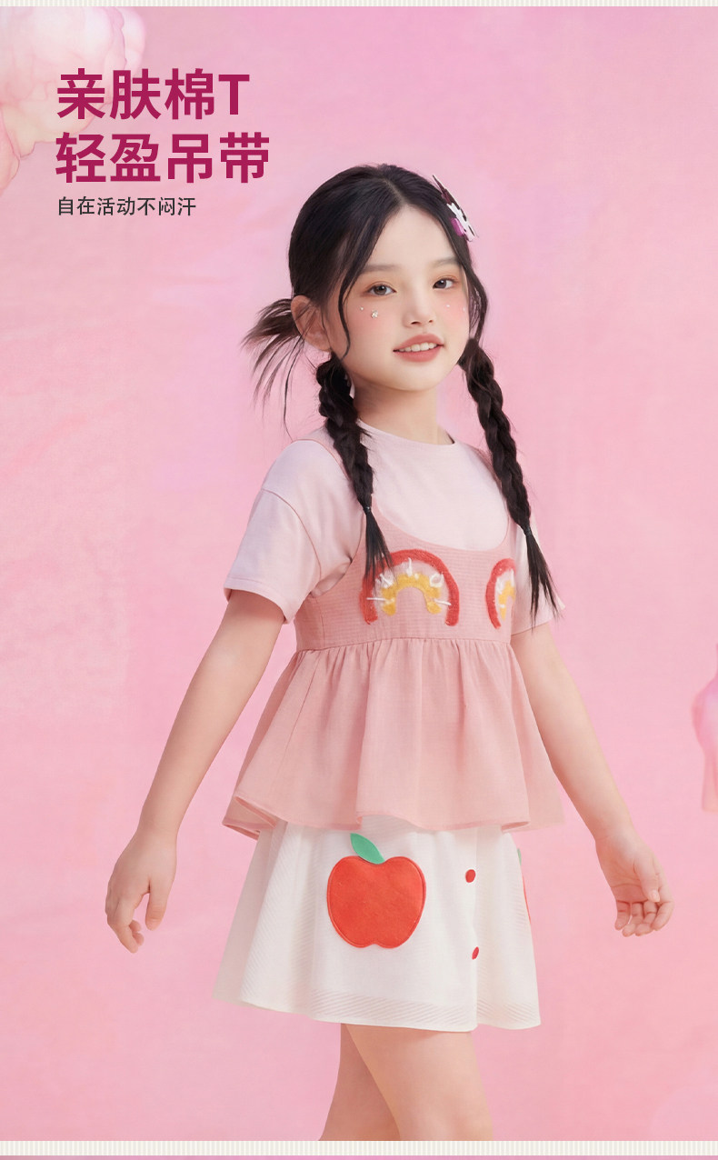 小马宝莉联名年衣童装T恤两件套女童夏新款卡通可爱吊带罩衫套装