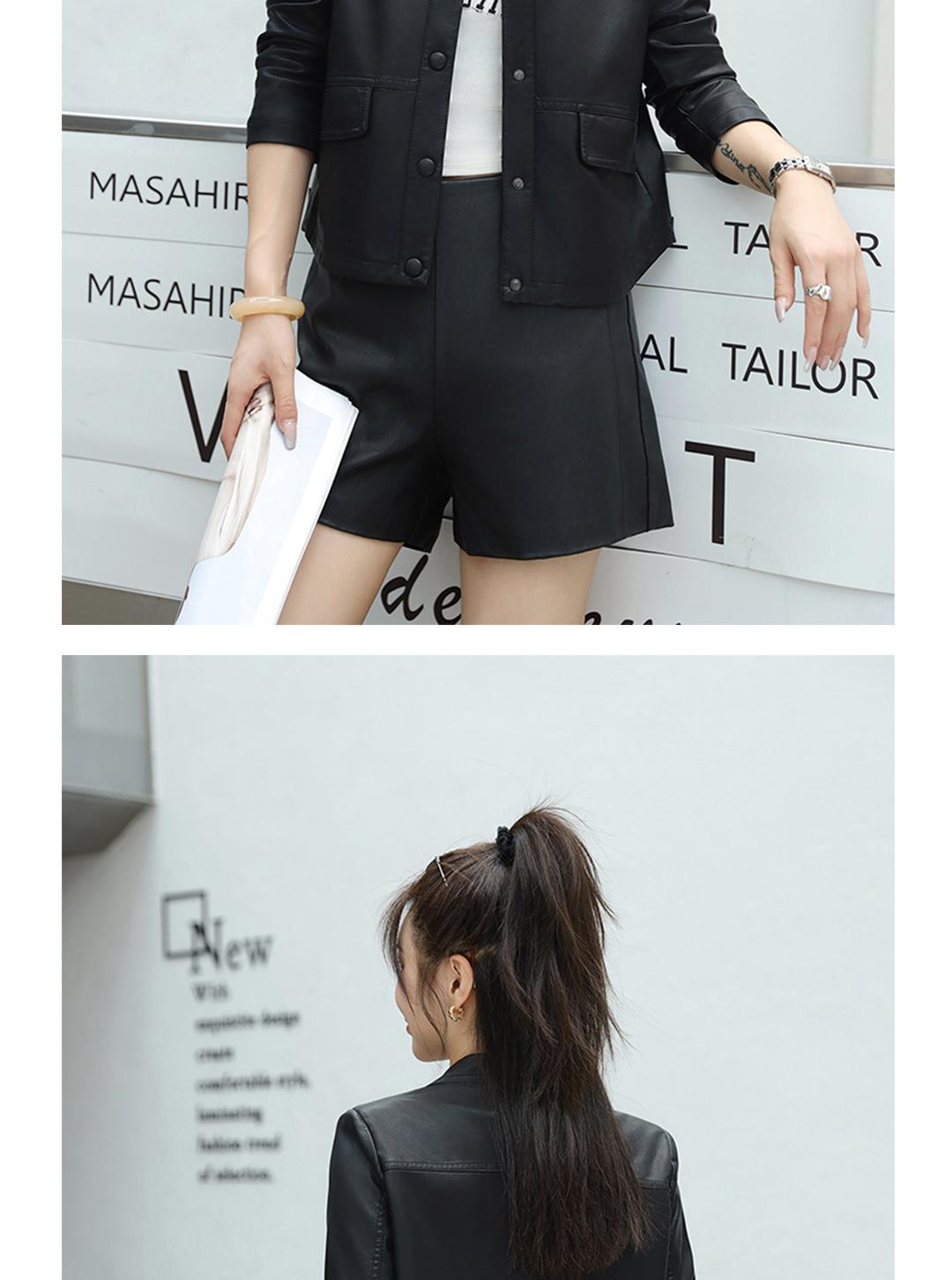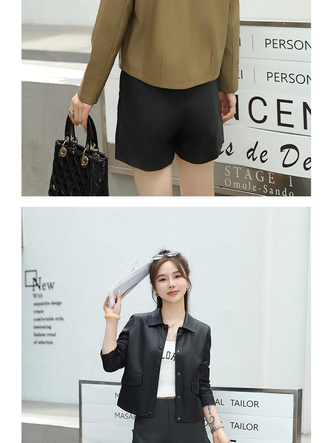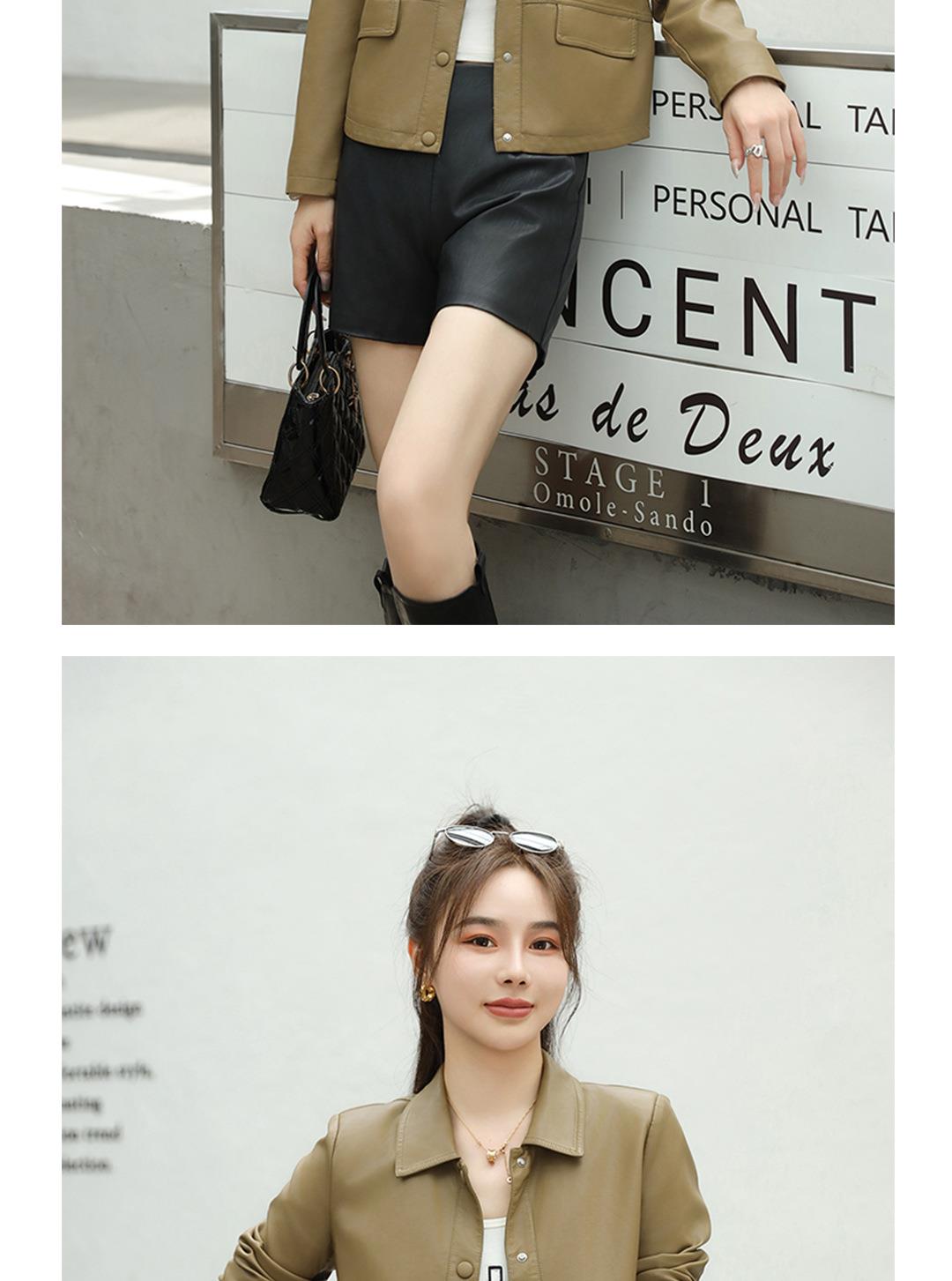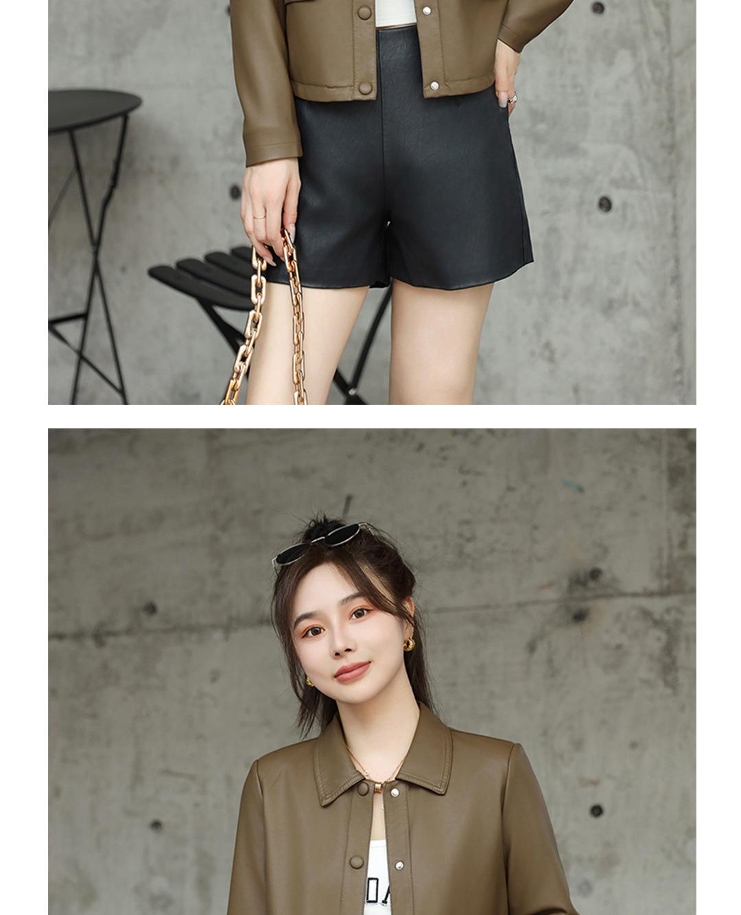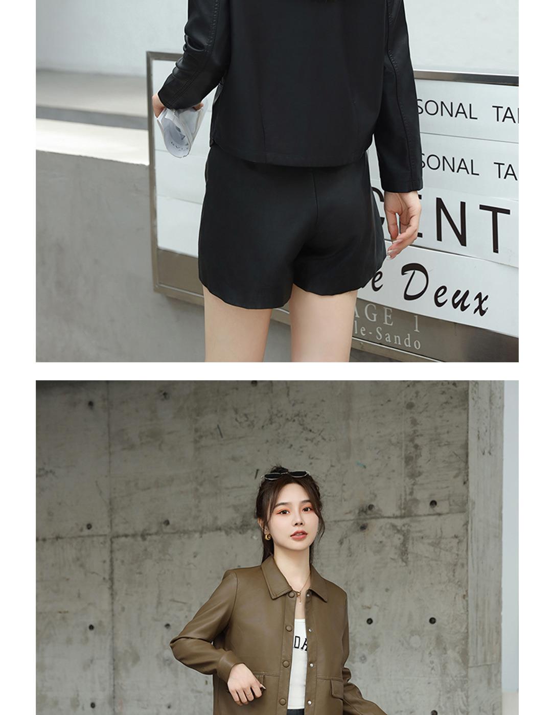 2023秋季新款韩版短款皮衣外套女翻领皮夹克修身水洗PU皮夹克
