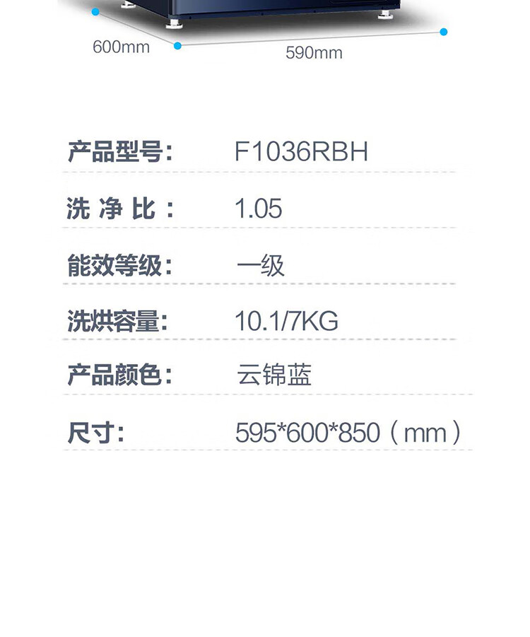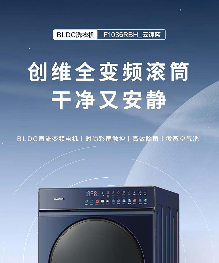 【家电焕新季】创维全自动洗烘一体滚筒洗衣机 臻彩屏触控 除螨洗 祛味空气洗 一级能效F1036RBH_云锦蓝