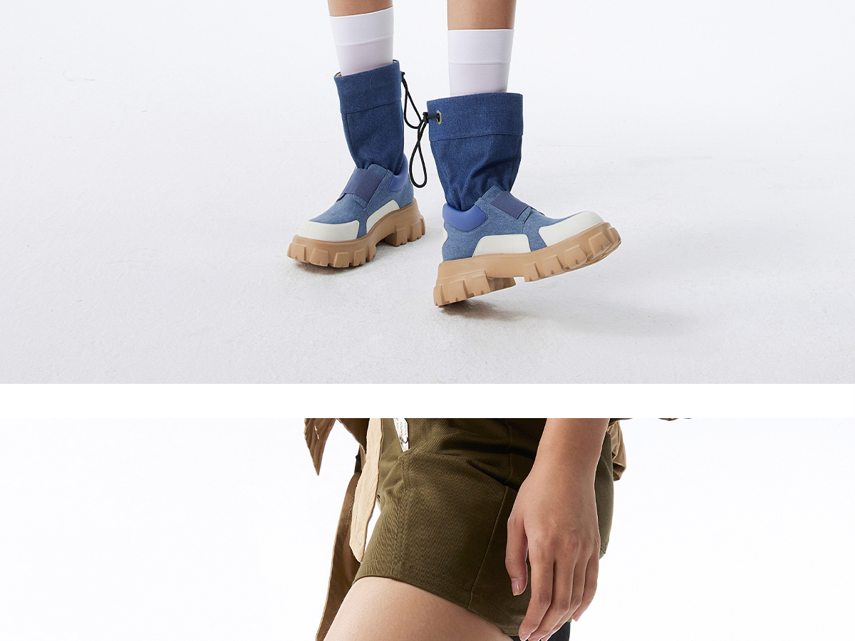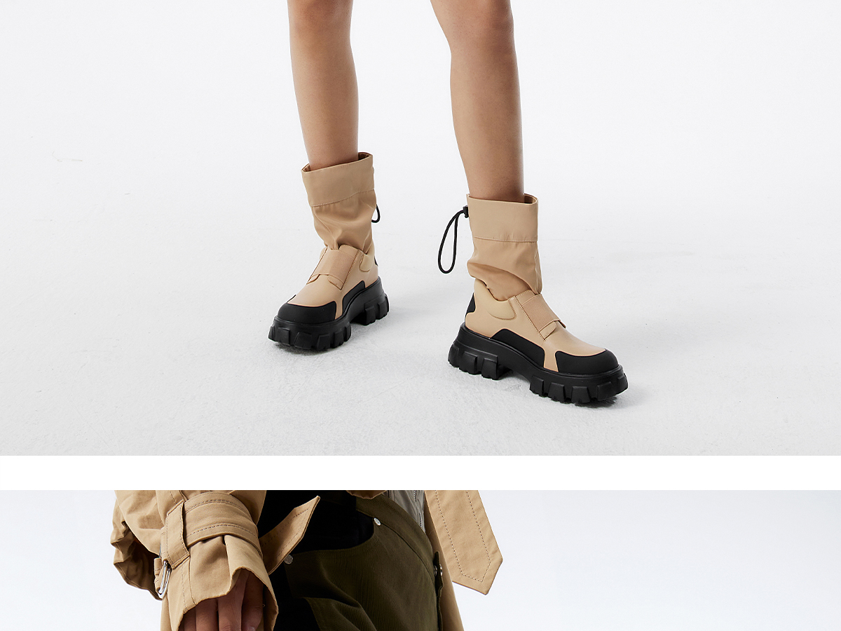 [捡漏价]lost in echo不无聊的马丁靴风衣布抽绳拼接马丁短靴裤管靴大黄靴