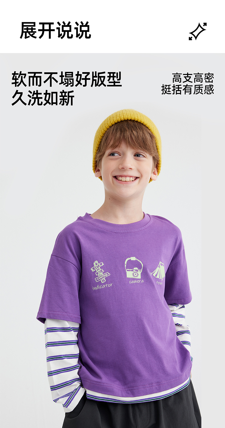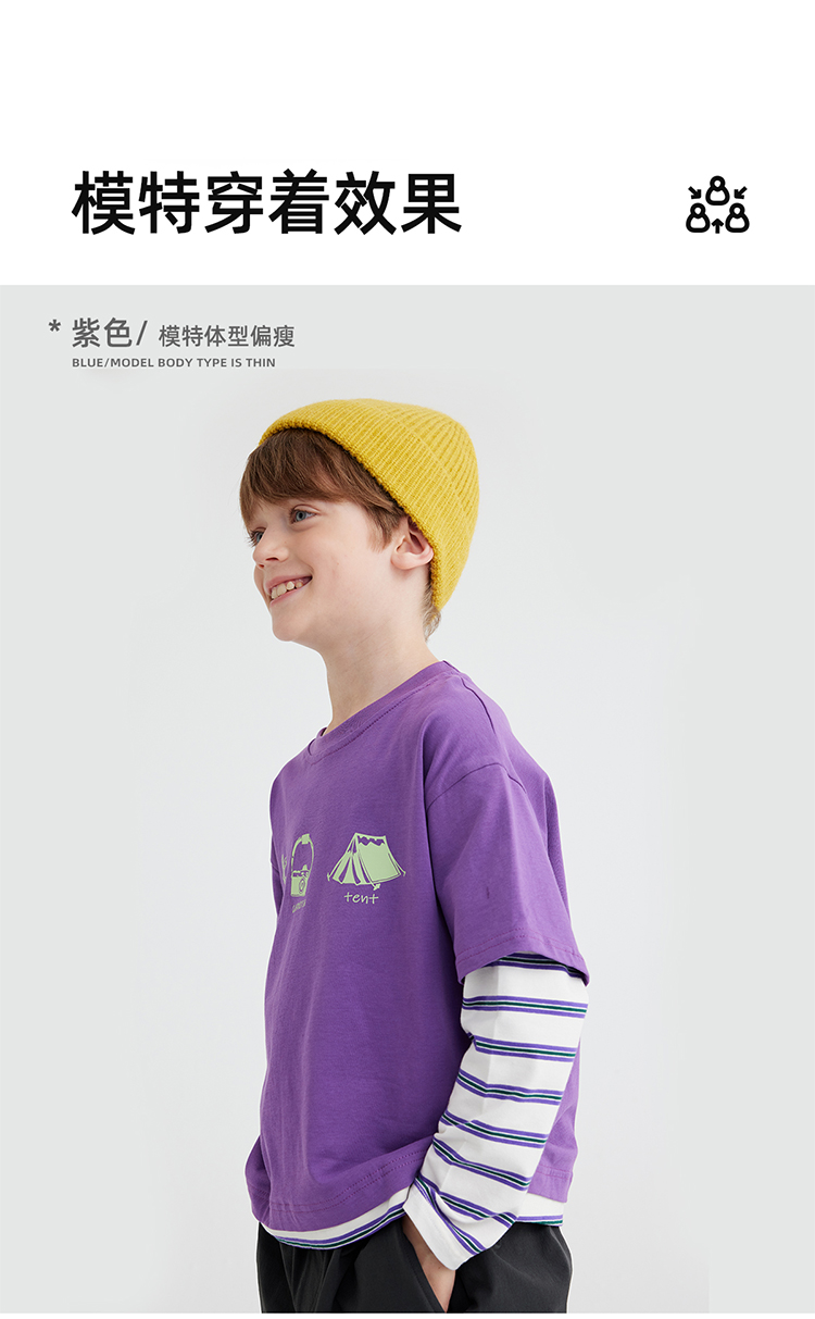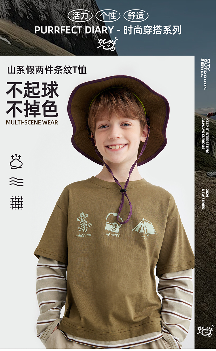 【山系叠穿假两件】儿童山系假两件条纹T恤 PQTX2411