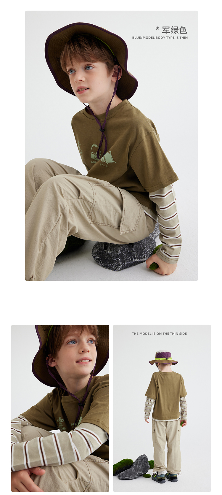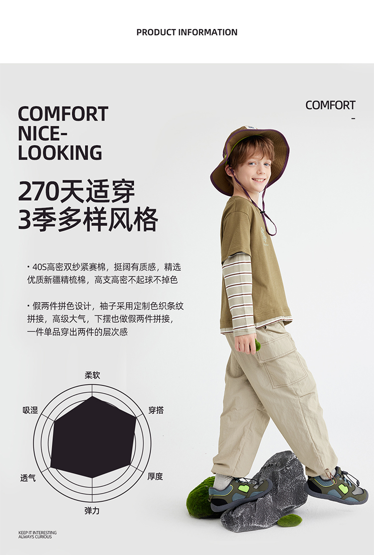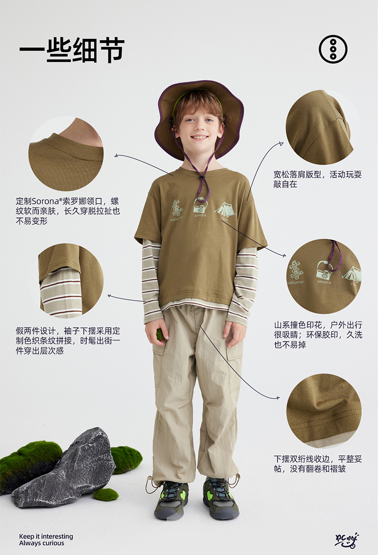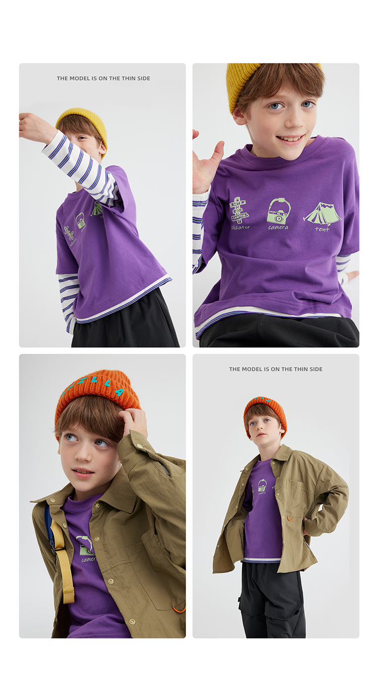 【山系叠穿假两件】儿童山系假两件条纹T恤 PQTX2411