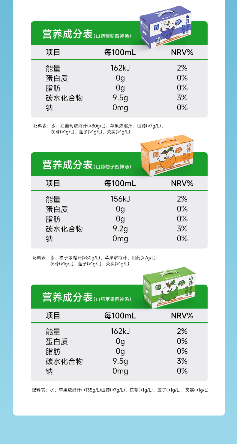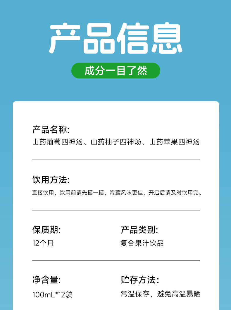 膳次方山药苹果、柚子、葡萄四神汤100ml/袋