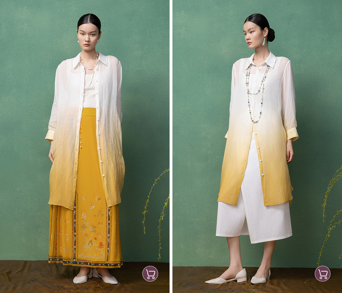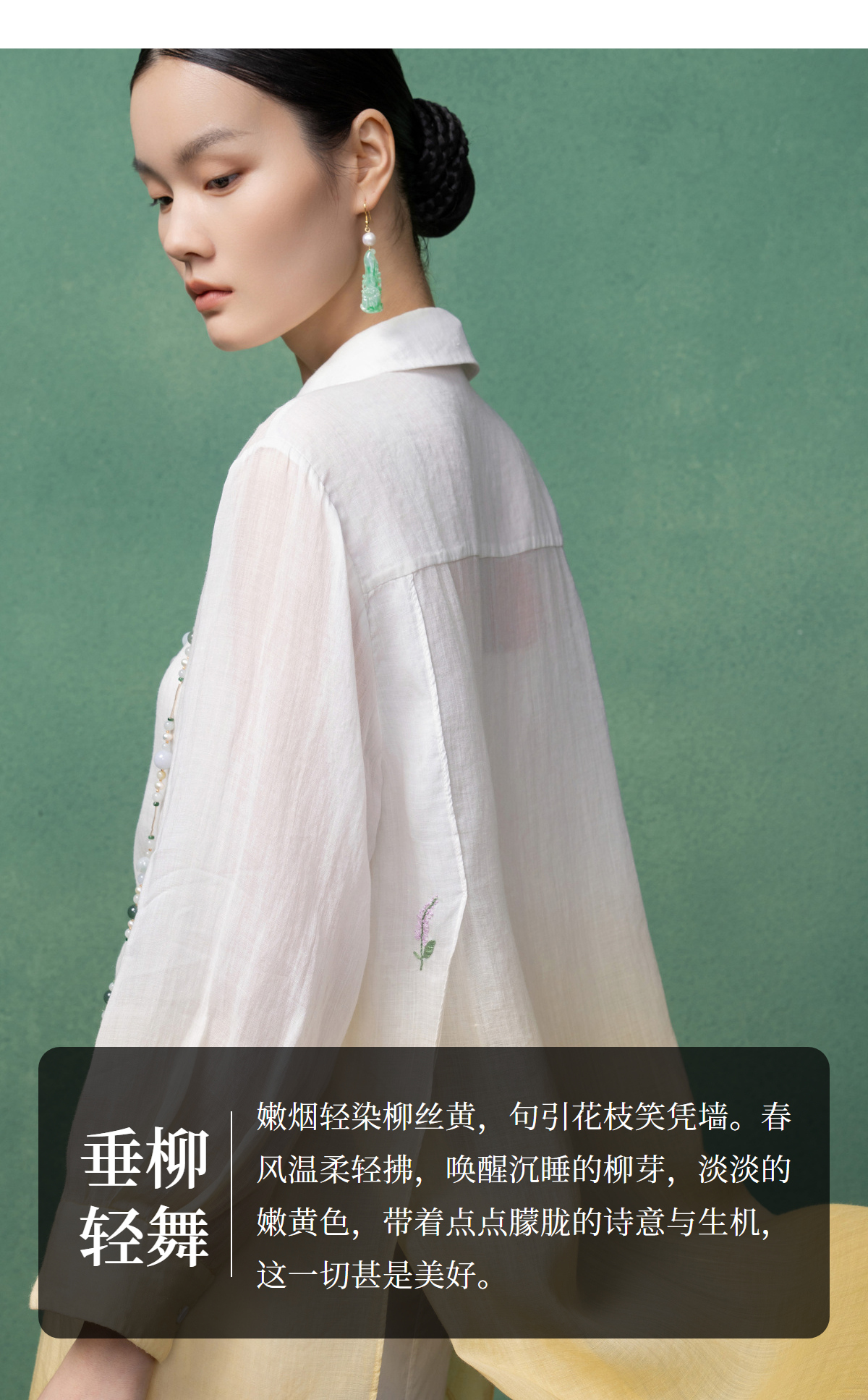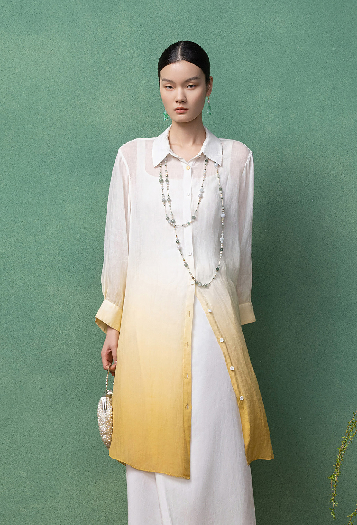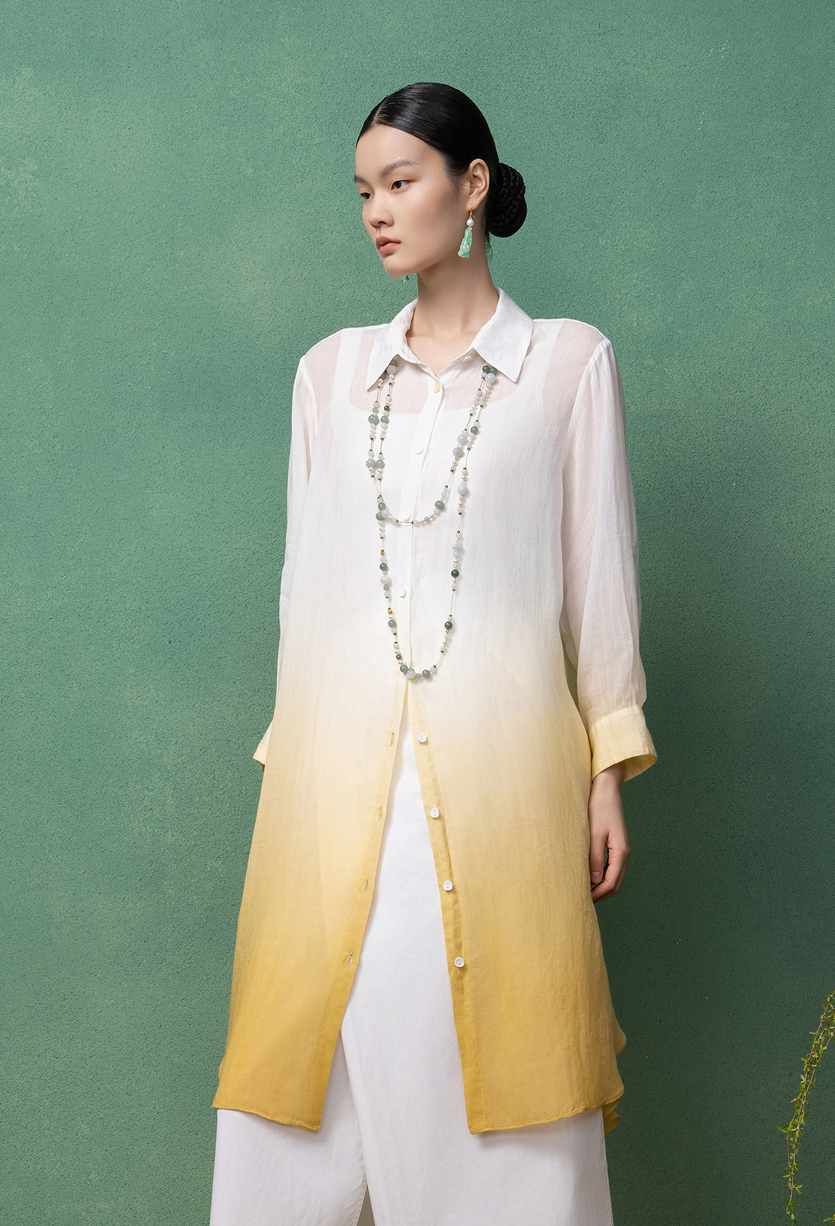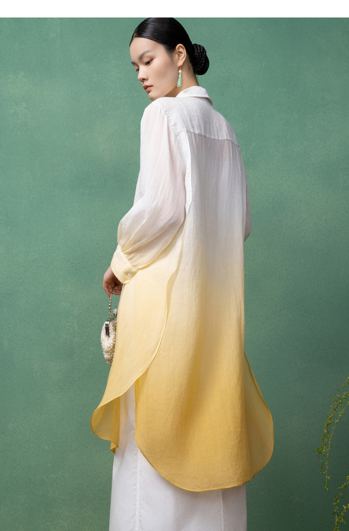 【林栖设计小店】苎麻衬衣渐变色简约百搭宽松显瘦2025夏季新品长款上衣女1952080