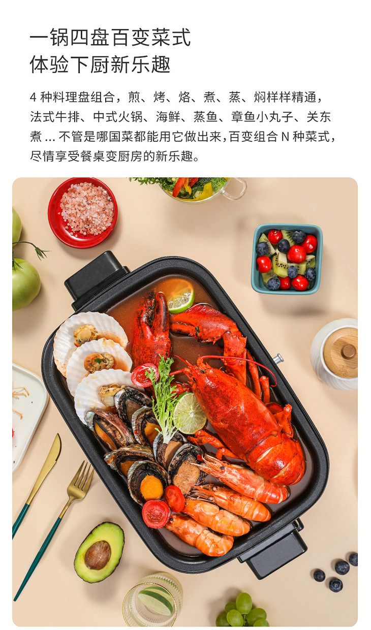 康巴赫网红多功能料理锅家用烤锅大容量烤肉煎煮蒸一体