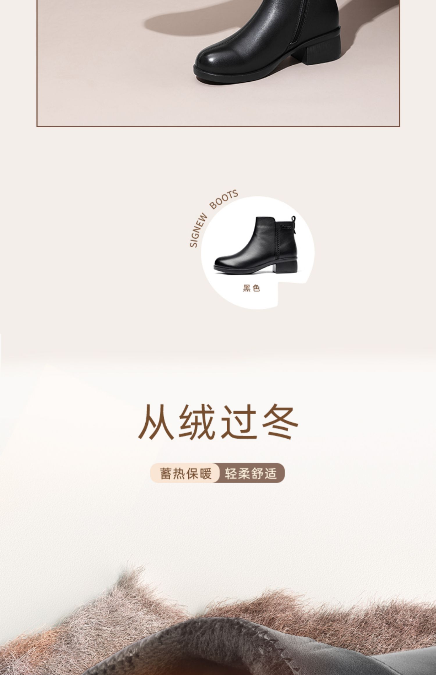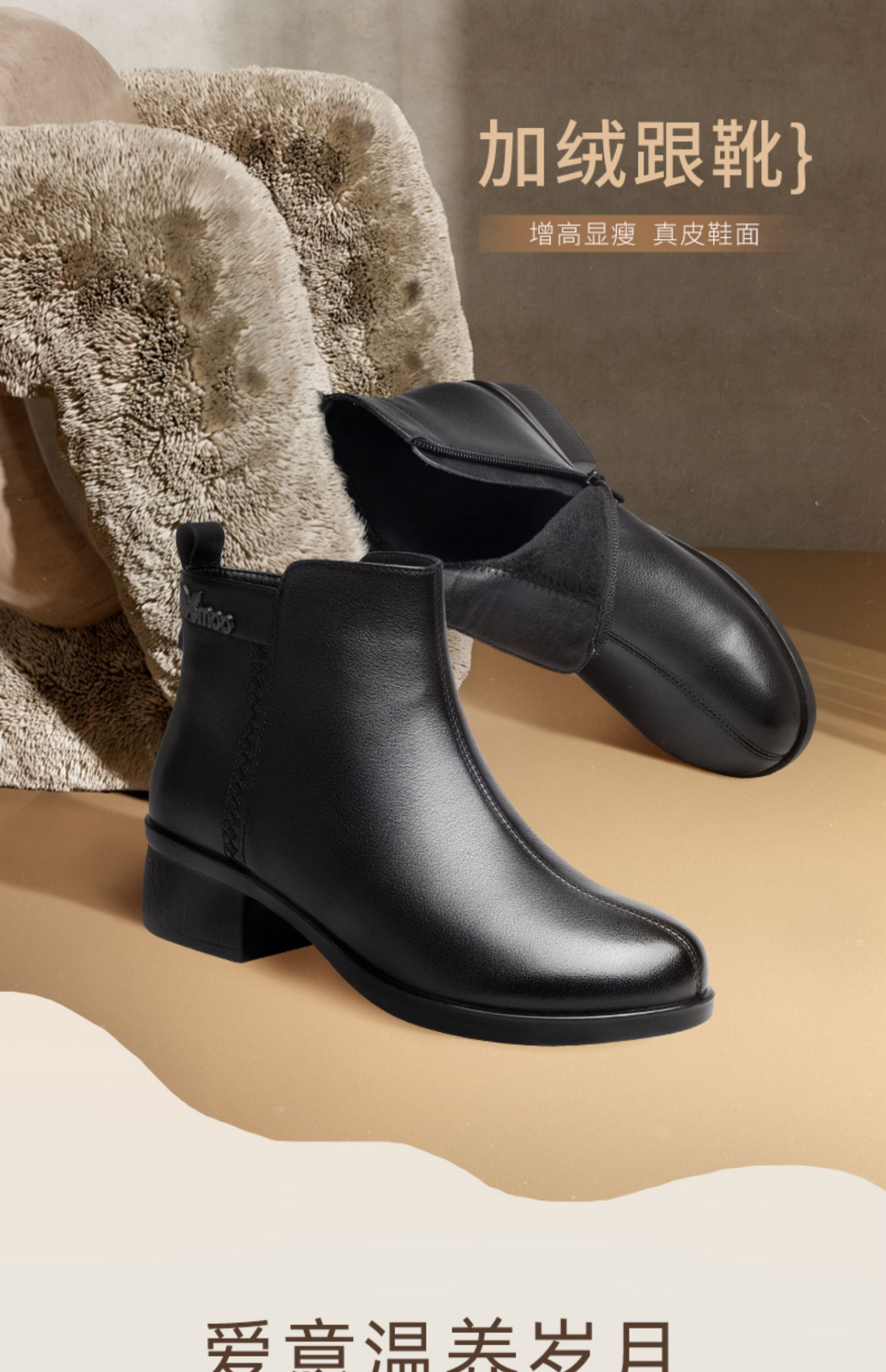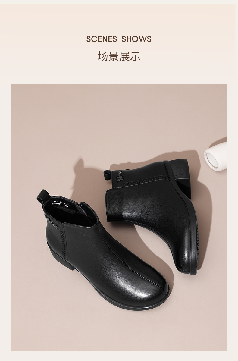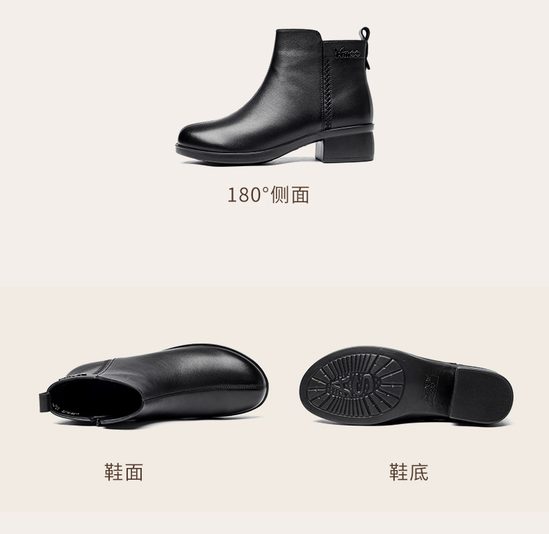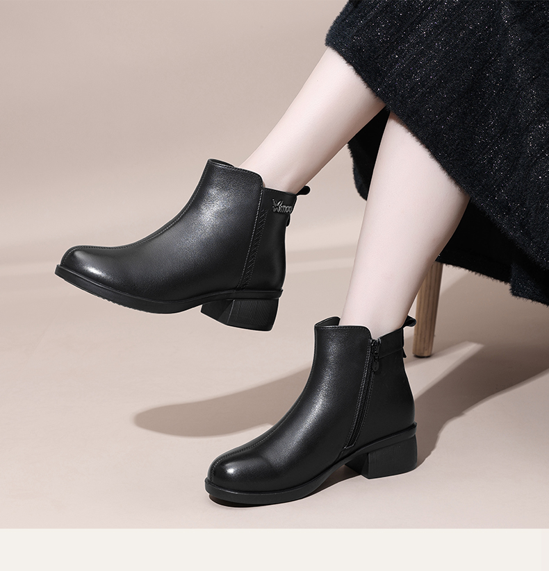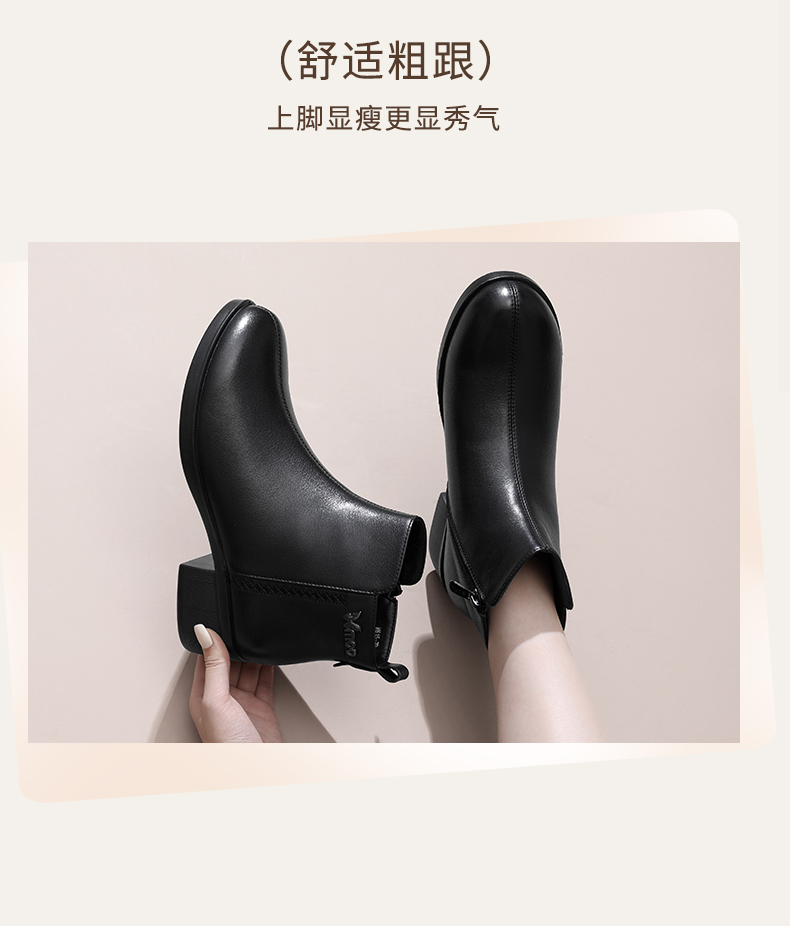 信诺超软真皮短靴女款粗跟靴子2024冬季新款女鞋加绒妈妈棉鞋皮鞋M615-7D