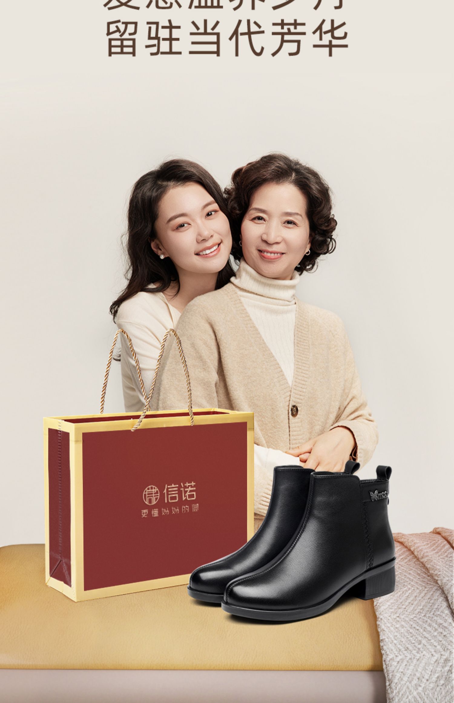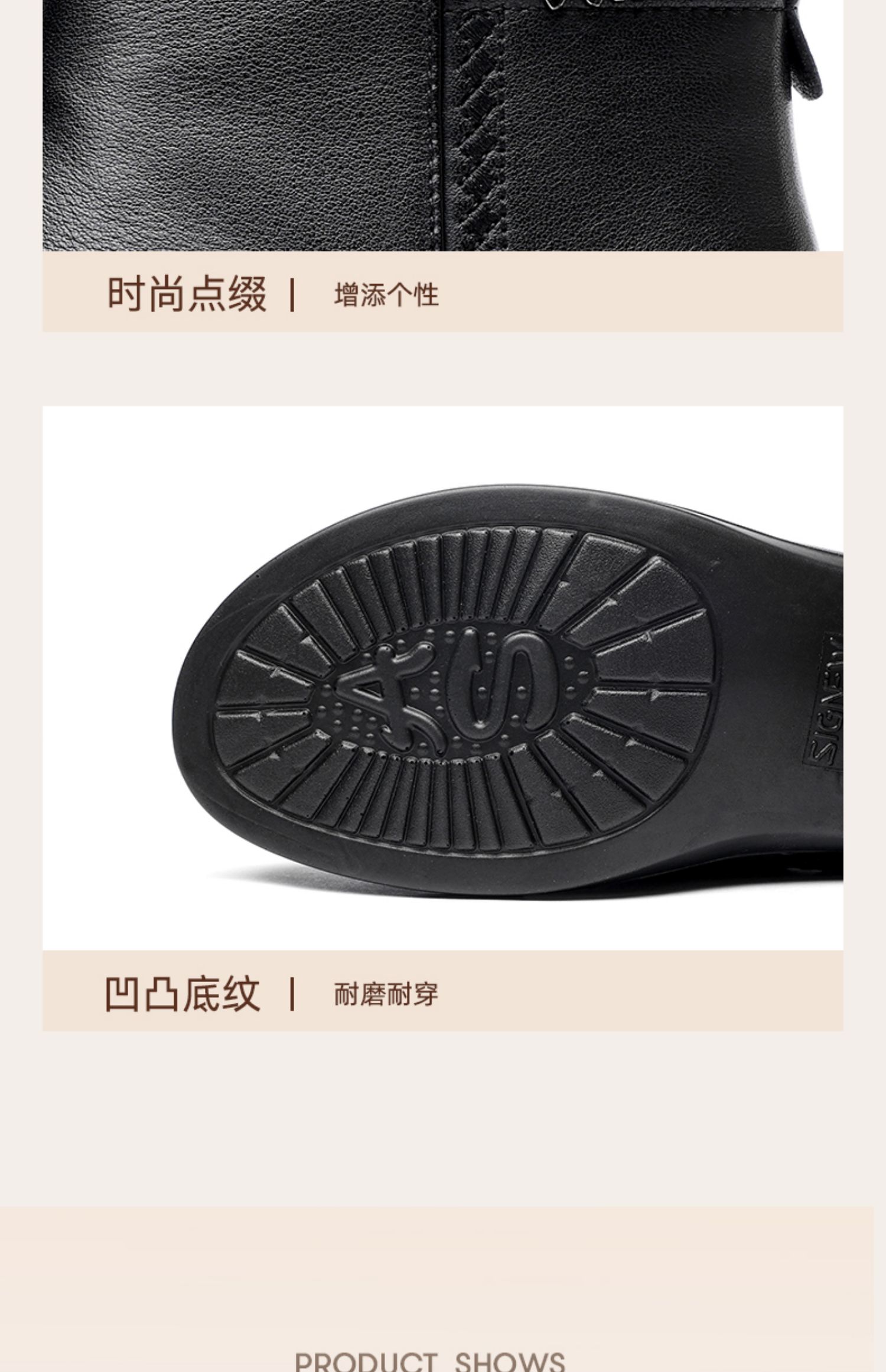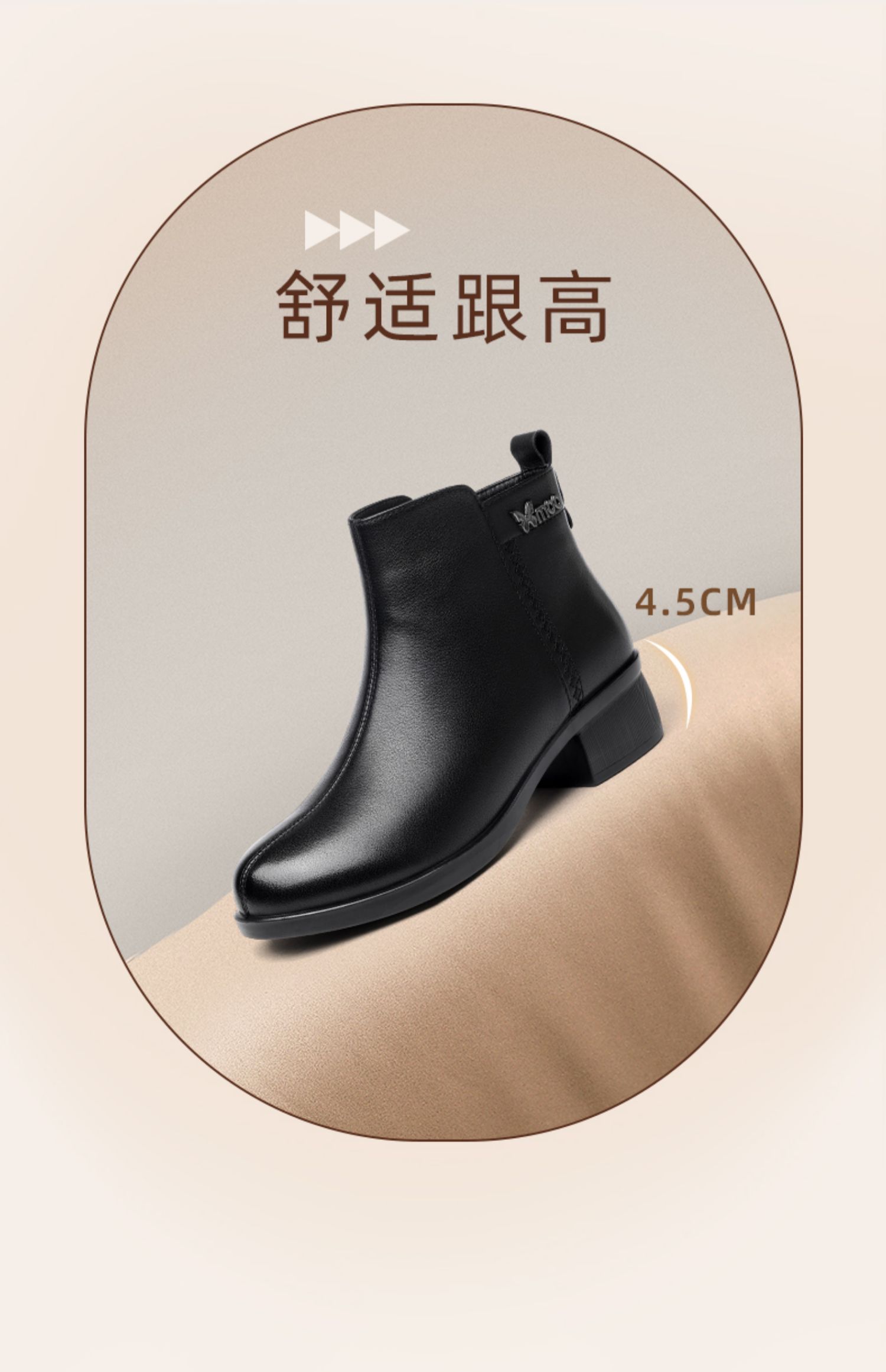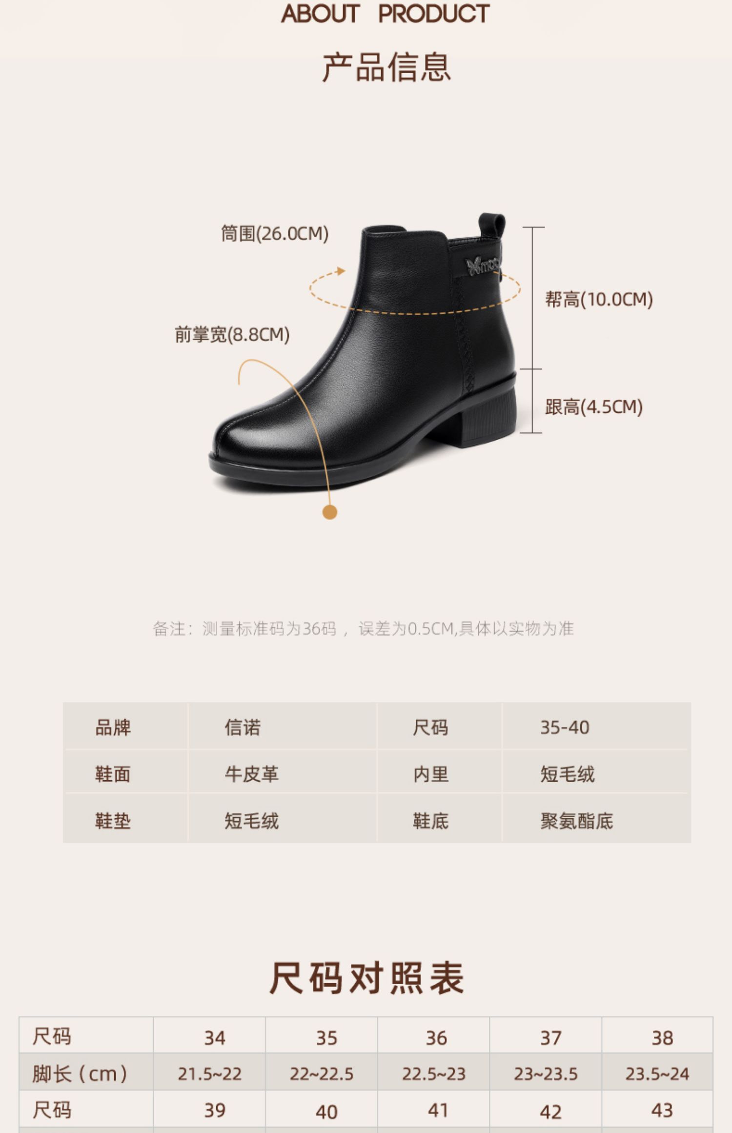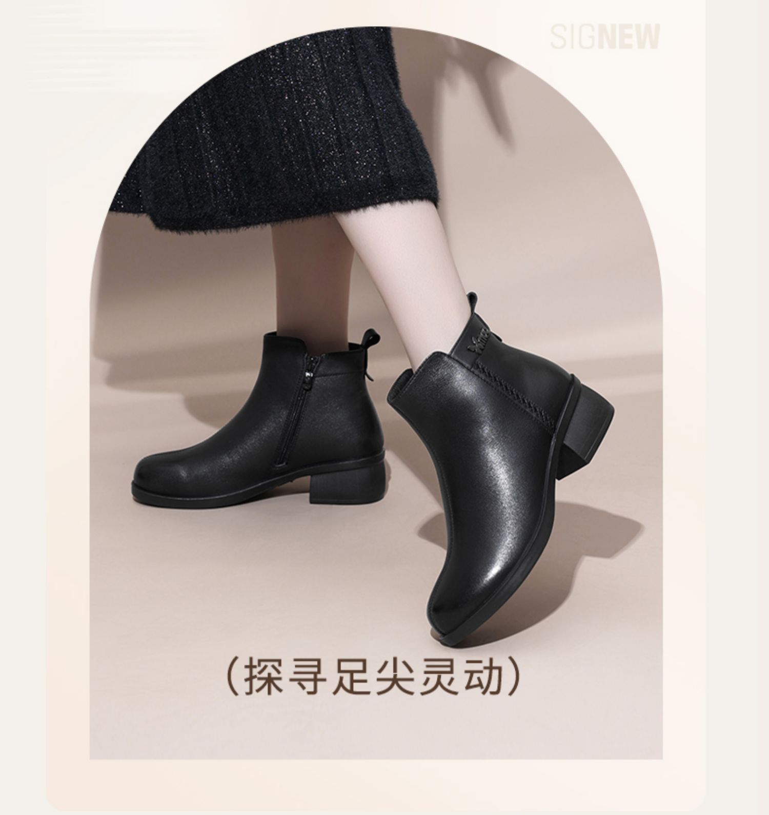 信诺超软真皮短靴女款粗跟靴子2024冬季新款女鞋加绒妈妈棉鞋皮鞋M615-7D