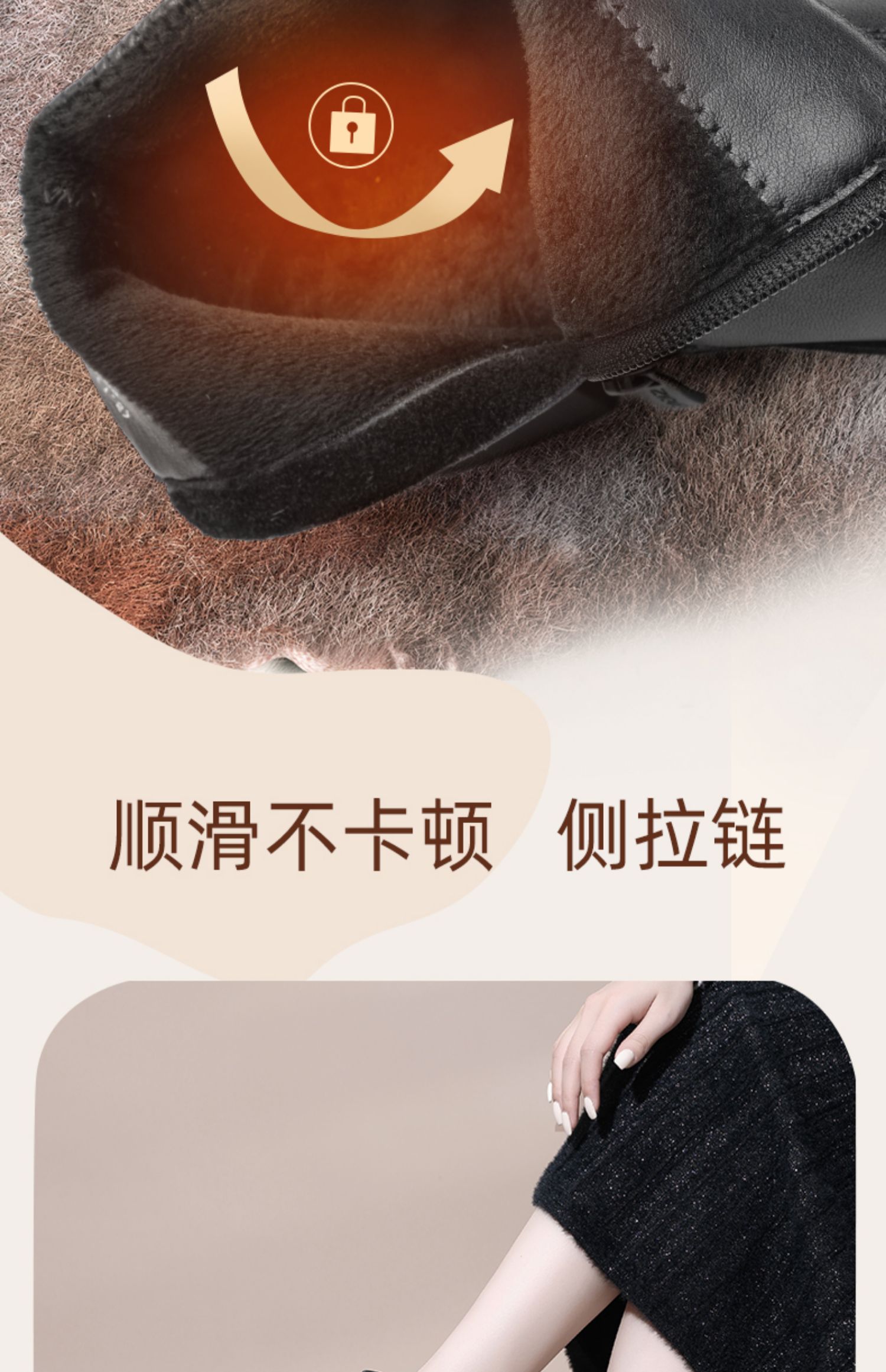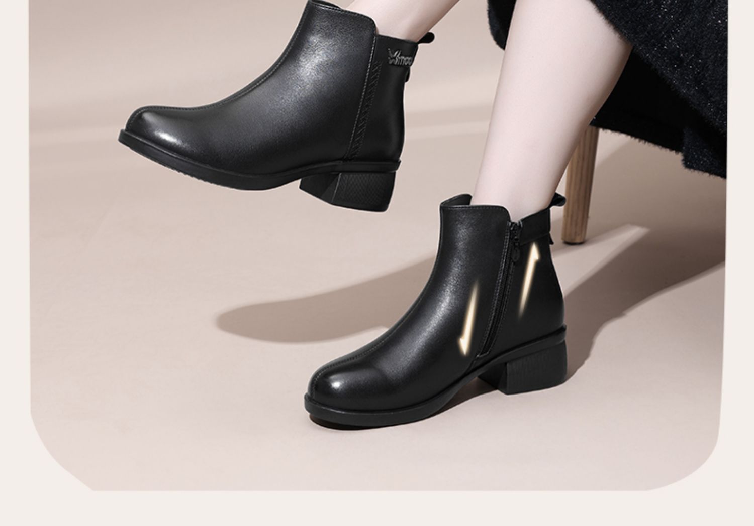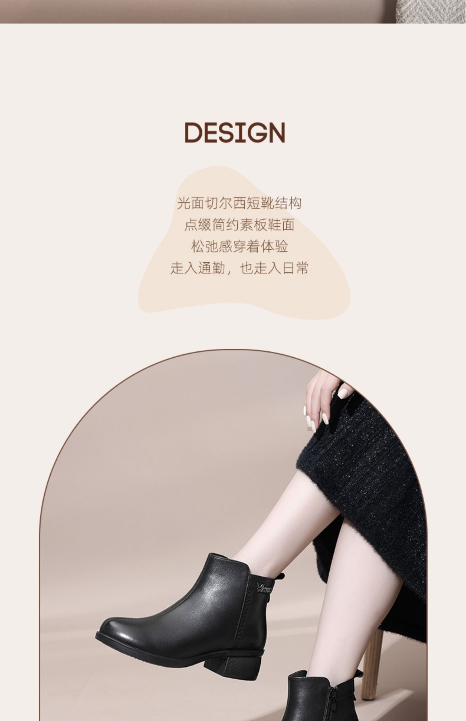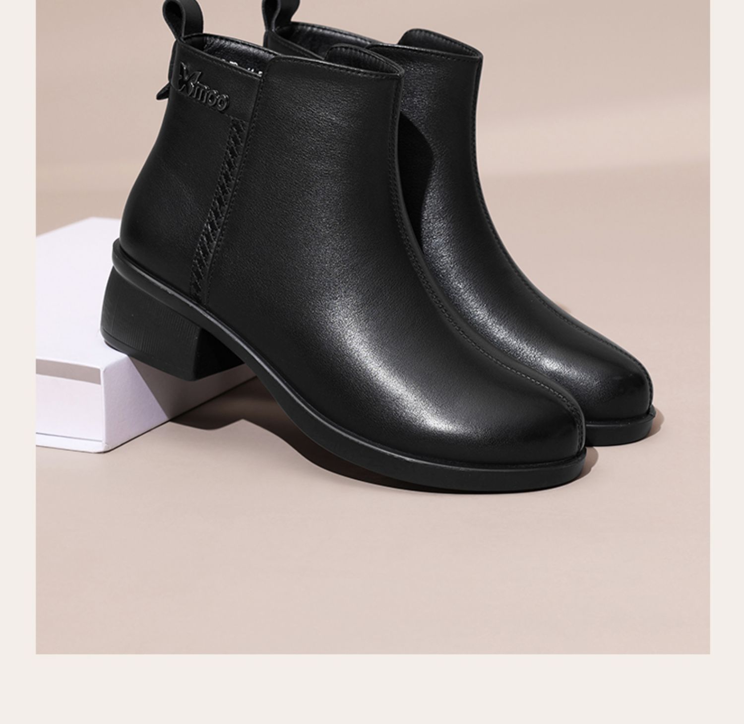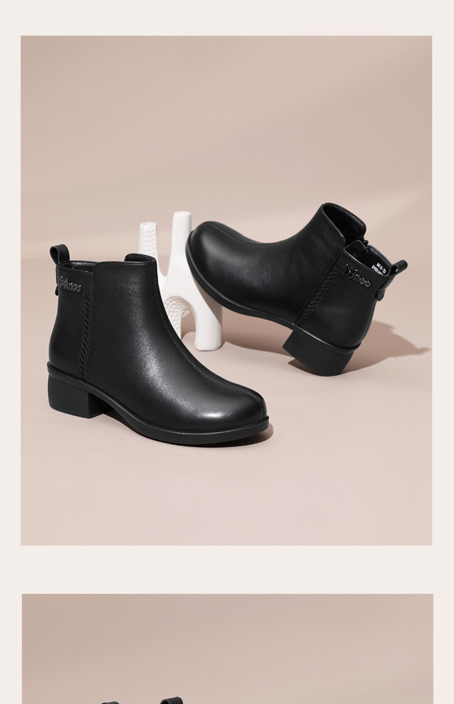 信诺超软真皮短靴女款粗跟靴子2024冬季新款女鞋加绒妈妈棉鞋皮鞋M615-7D