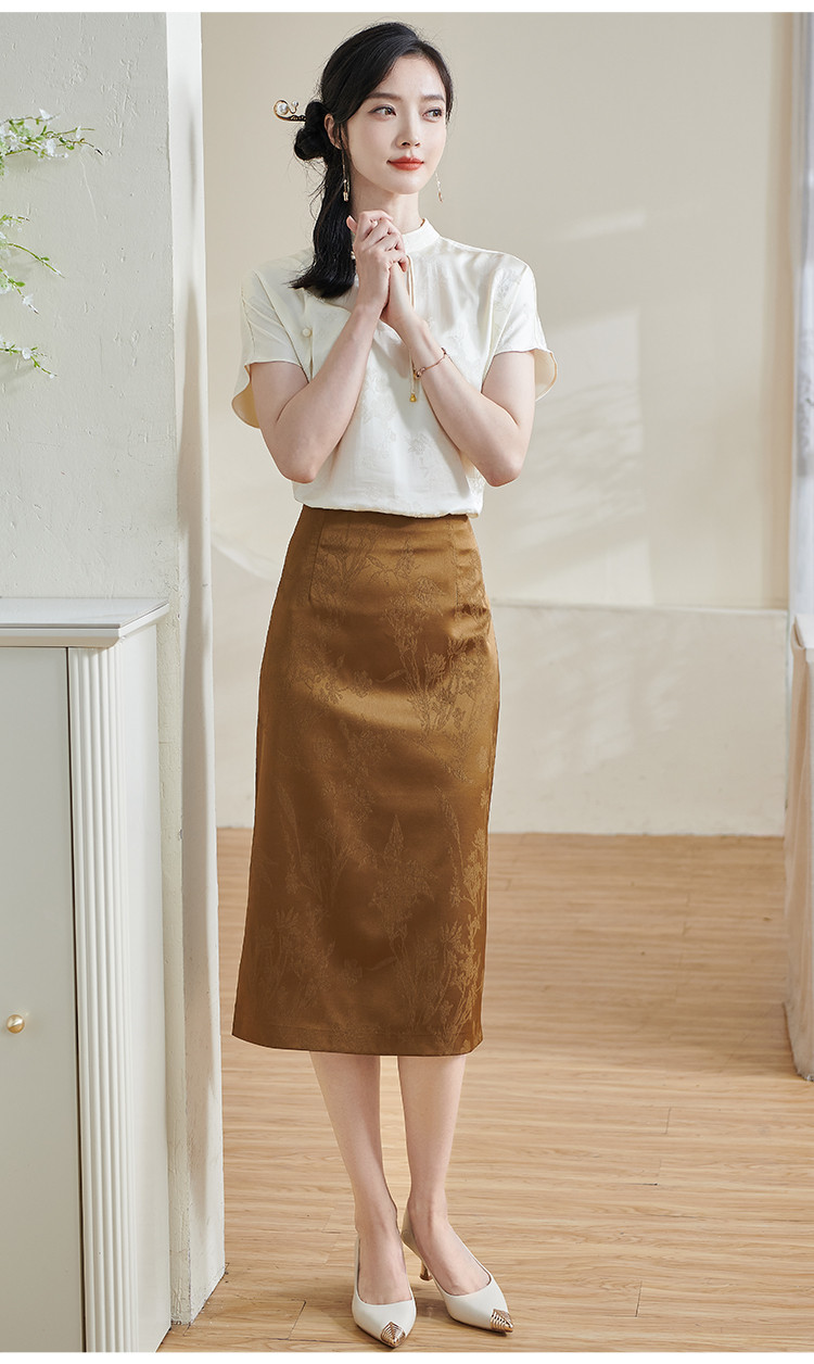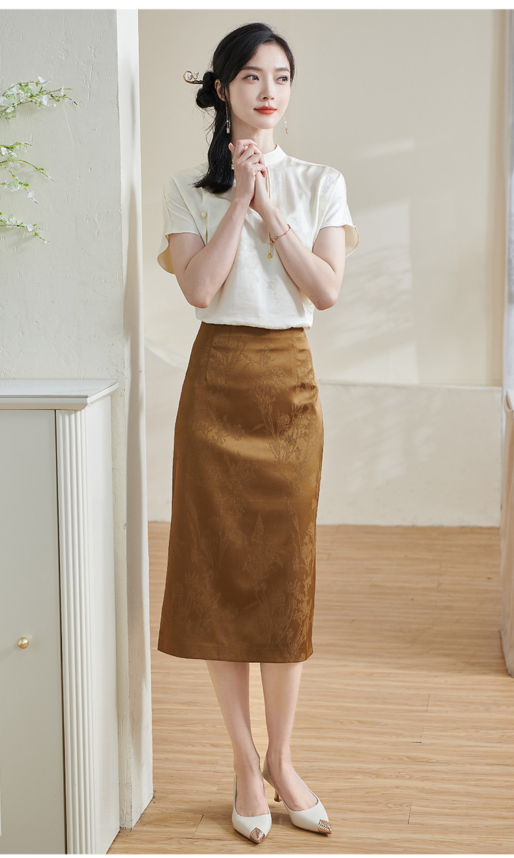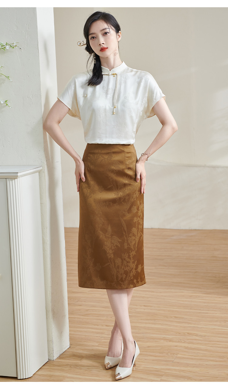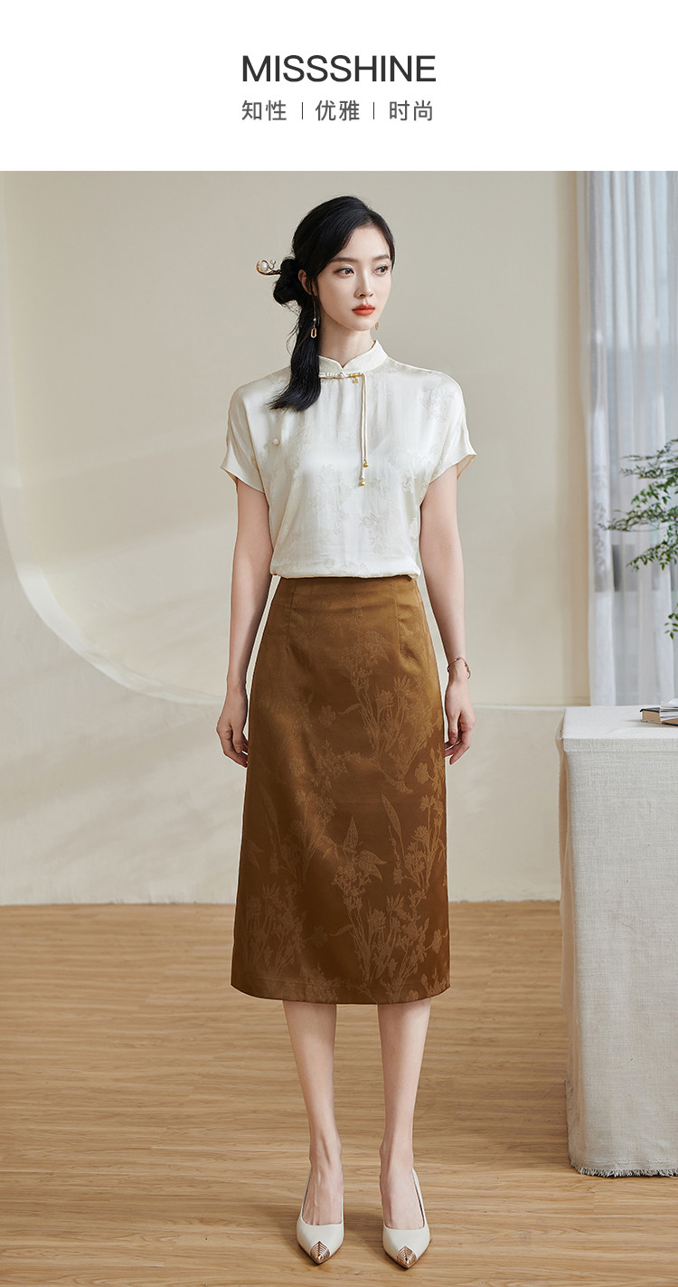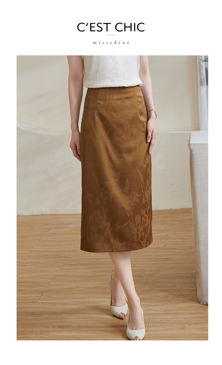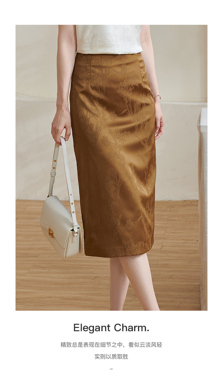 米思阳【高级感暗纹】2026春季轻国风高腰提花通勤直筒A字半身裙1688