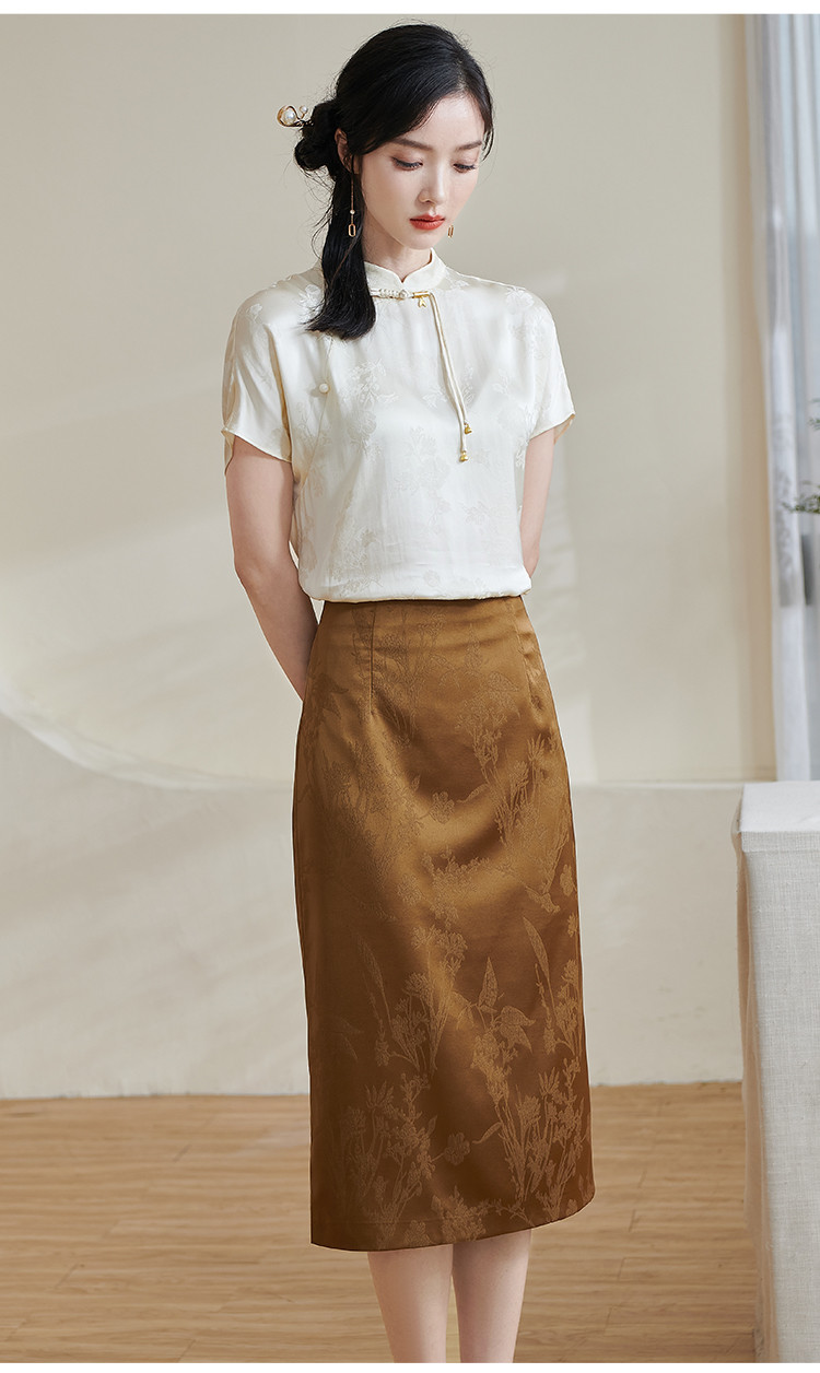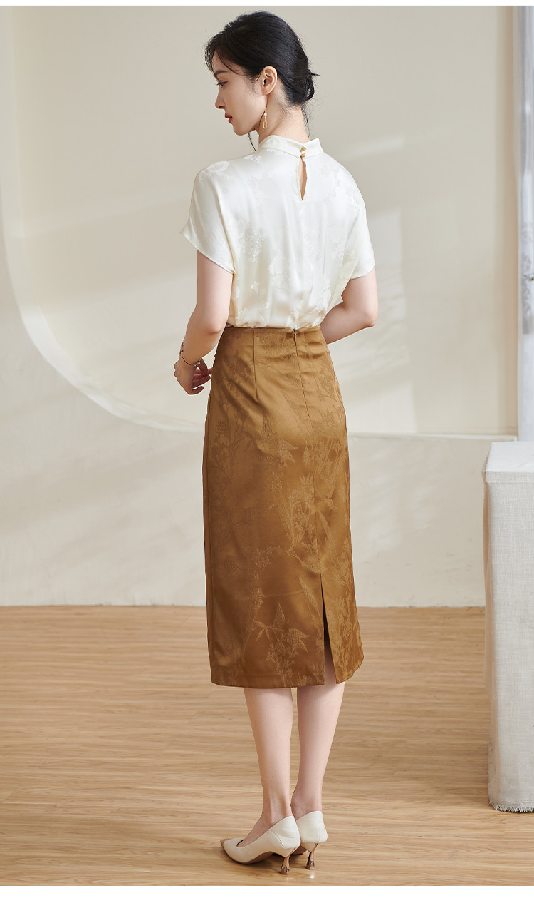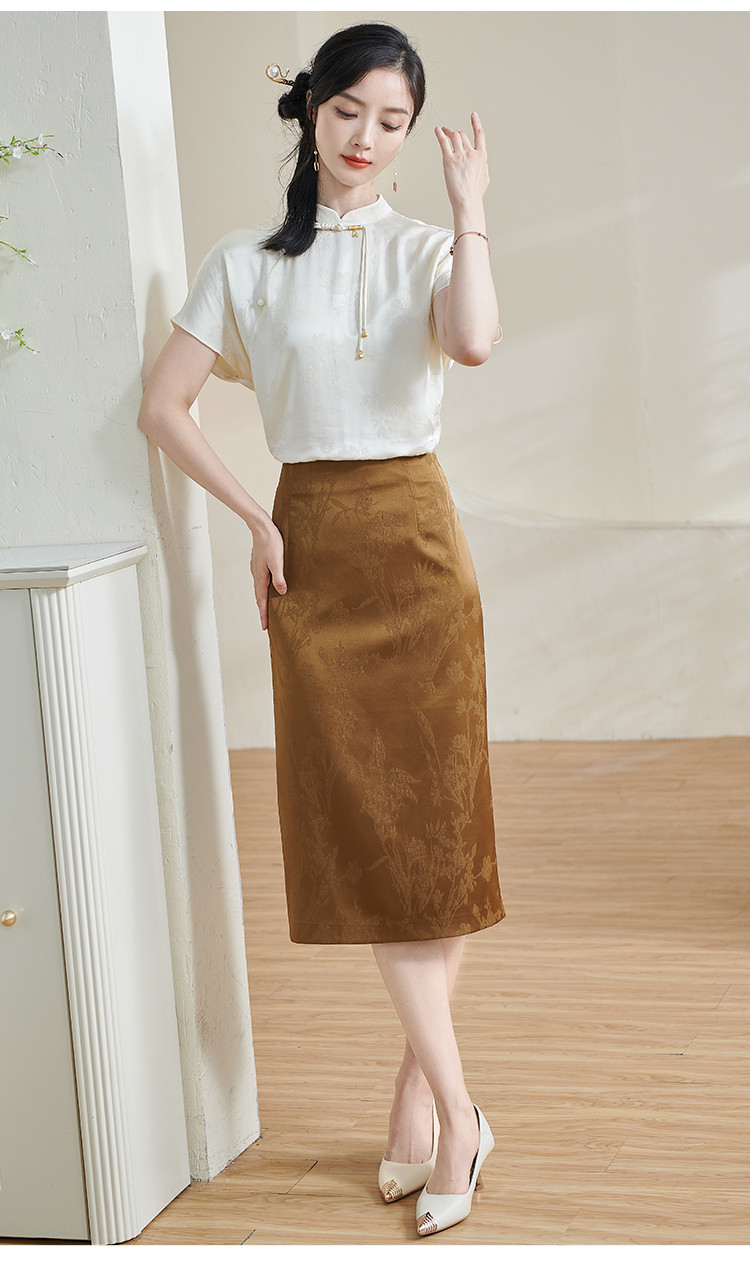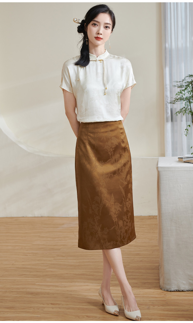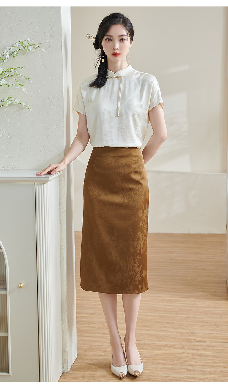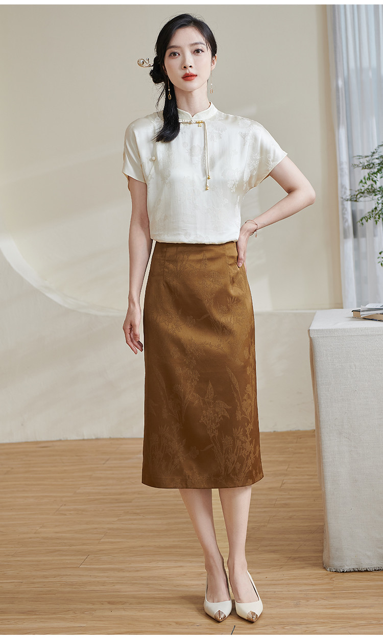 米思阳【高级感暗纹】2026春季轻国风高腰提花通勤直筒A字半身裙1688