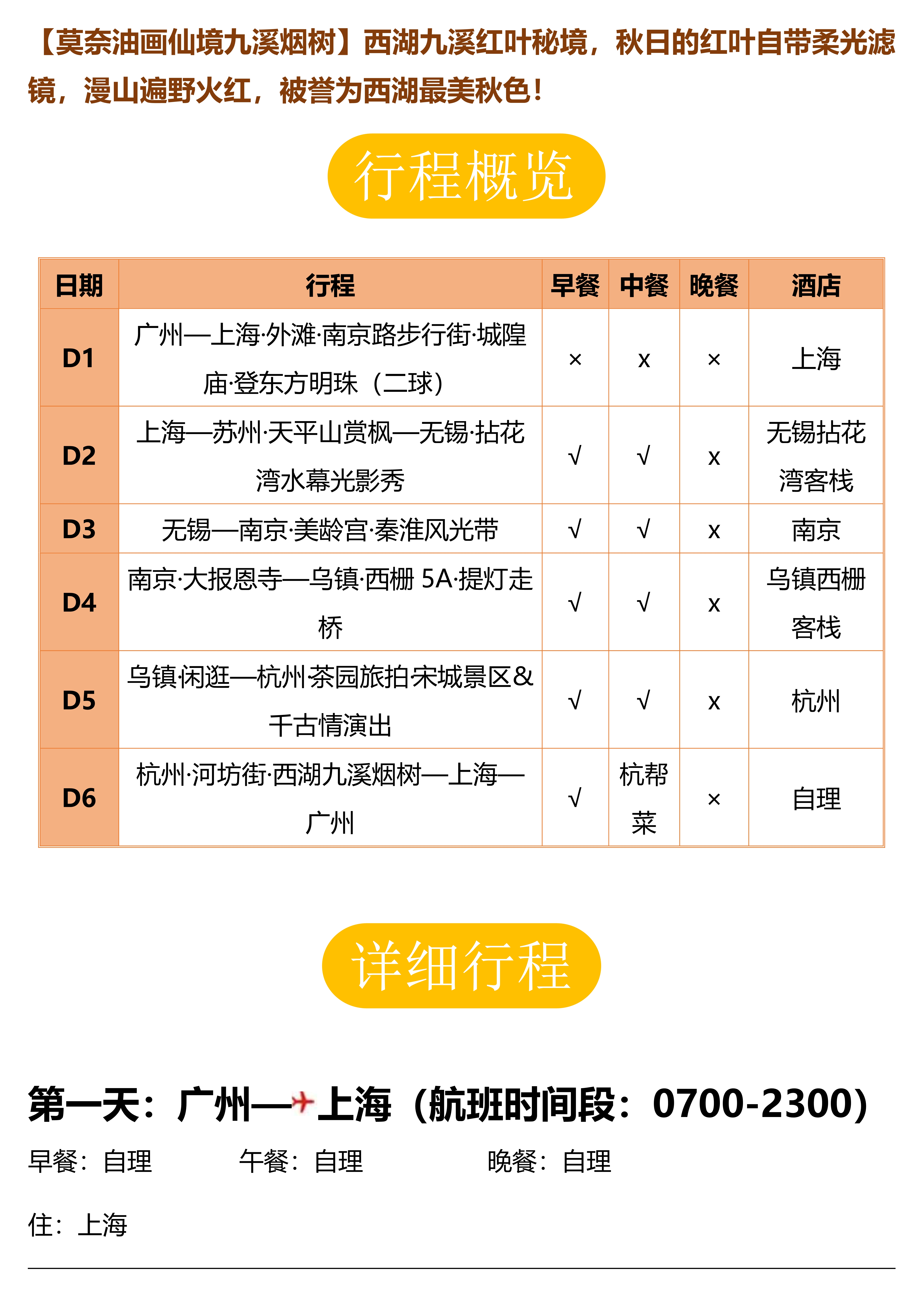 【零钱旅游&江南头等舱】华中六市双飞6天