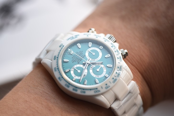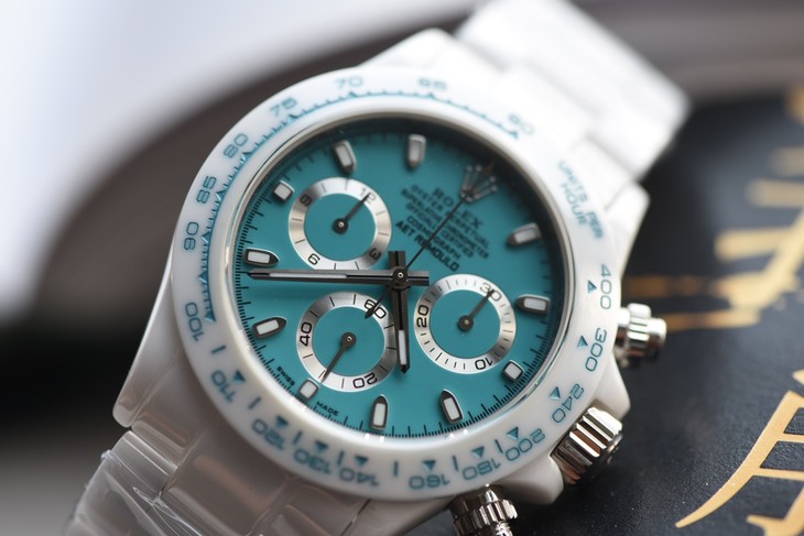 这款蓝白陶瓷迪通拿源自一家德国的腕表改装设计品牌AET REMOULD,基于劳力士rolex迪通拿打造,正式名称为“阿布扎比白瓷限量版”。