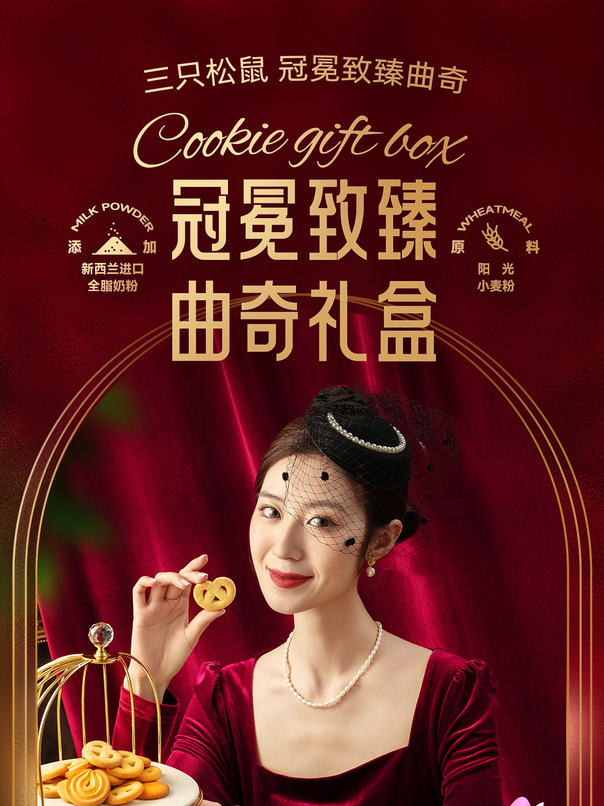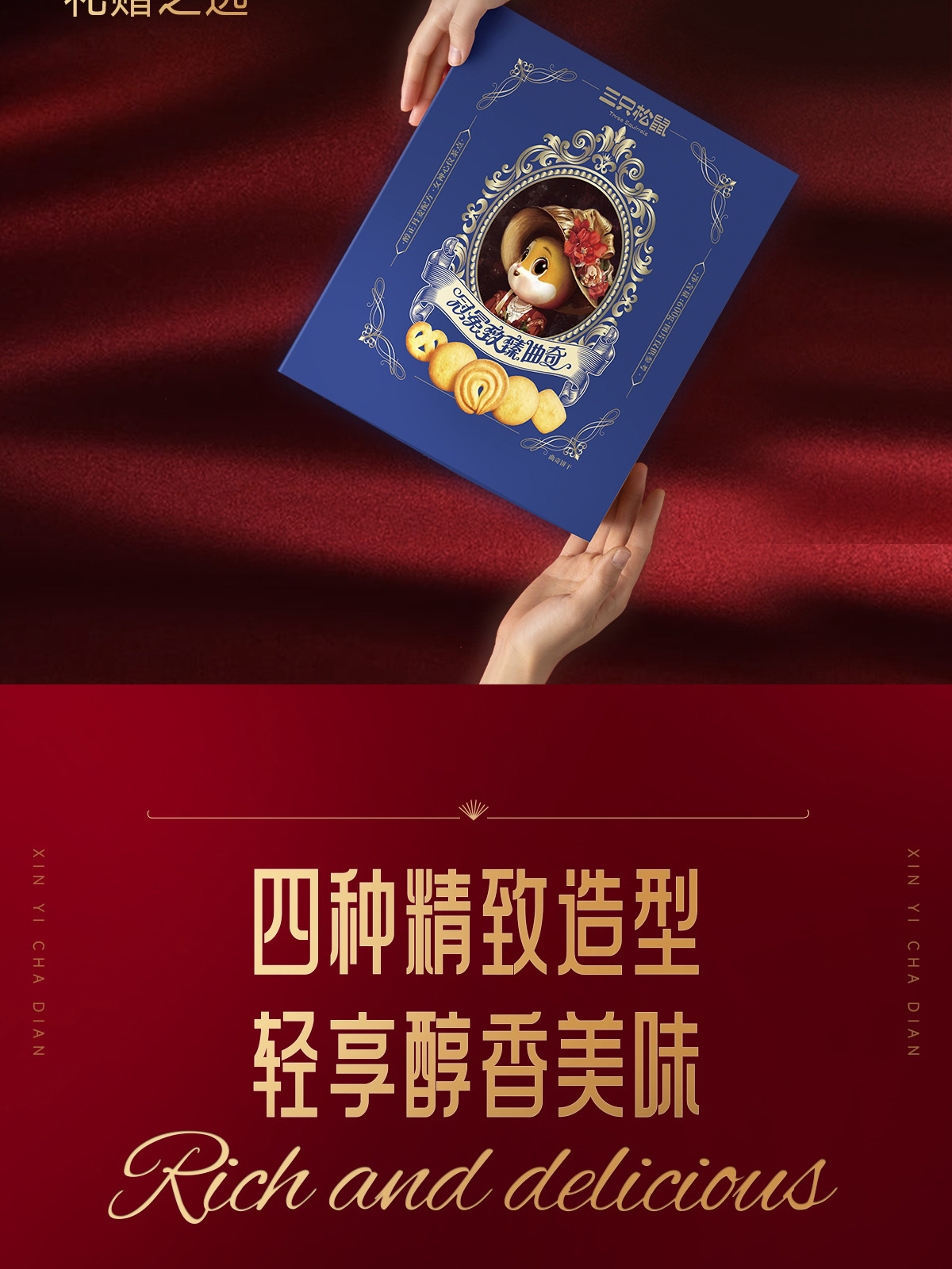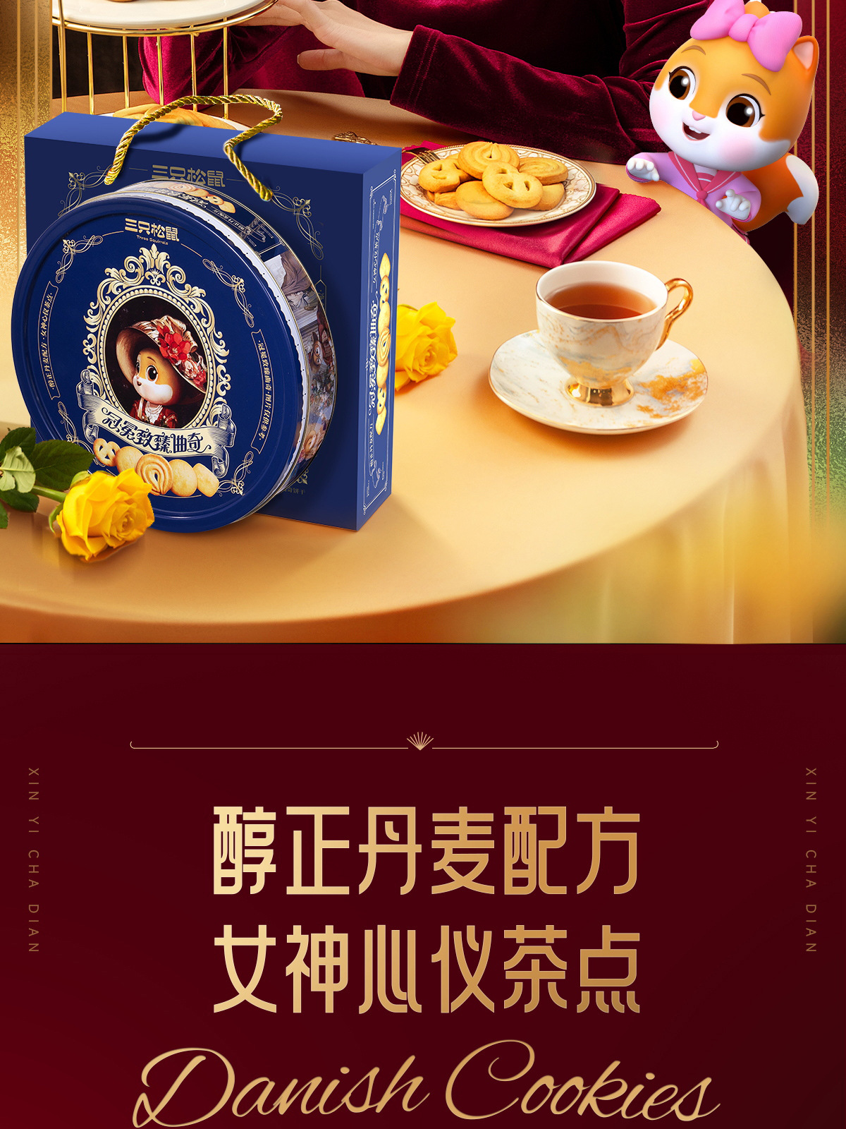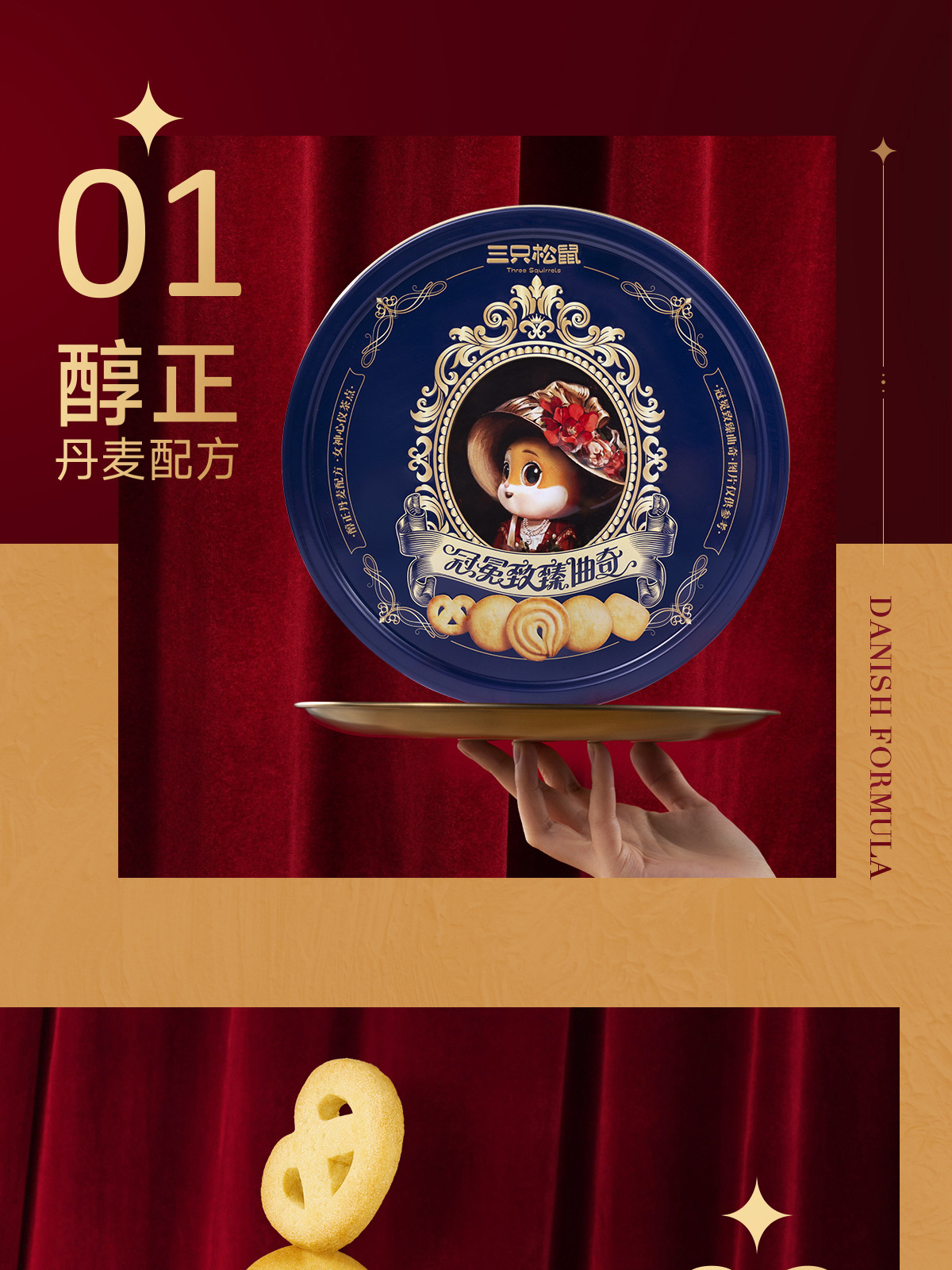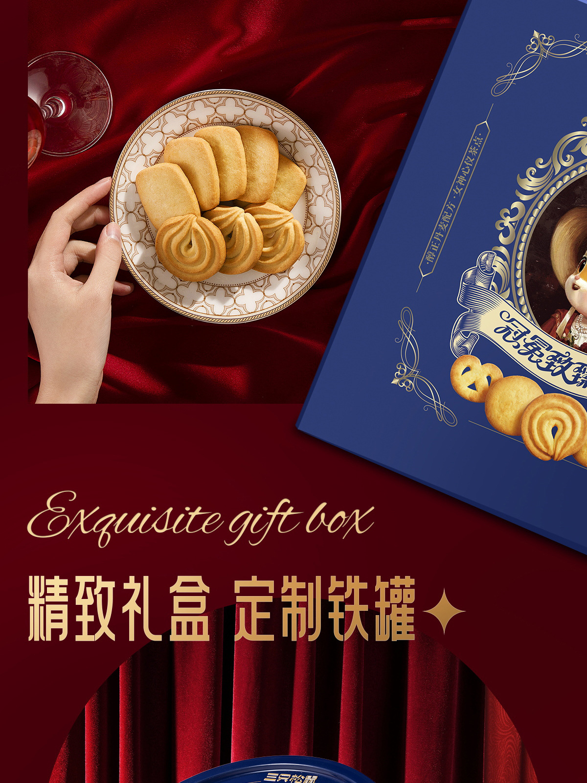 【三只松鼠,冠冕致臻曲奇600g】醇真丹麦配方,奶香酥脆醇正浓郁,四款精致曲奇醇香美味送礼