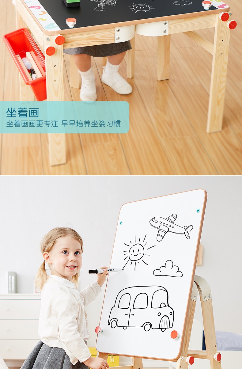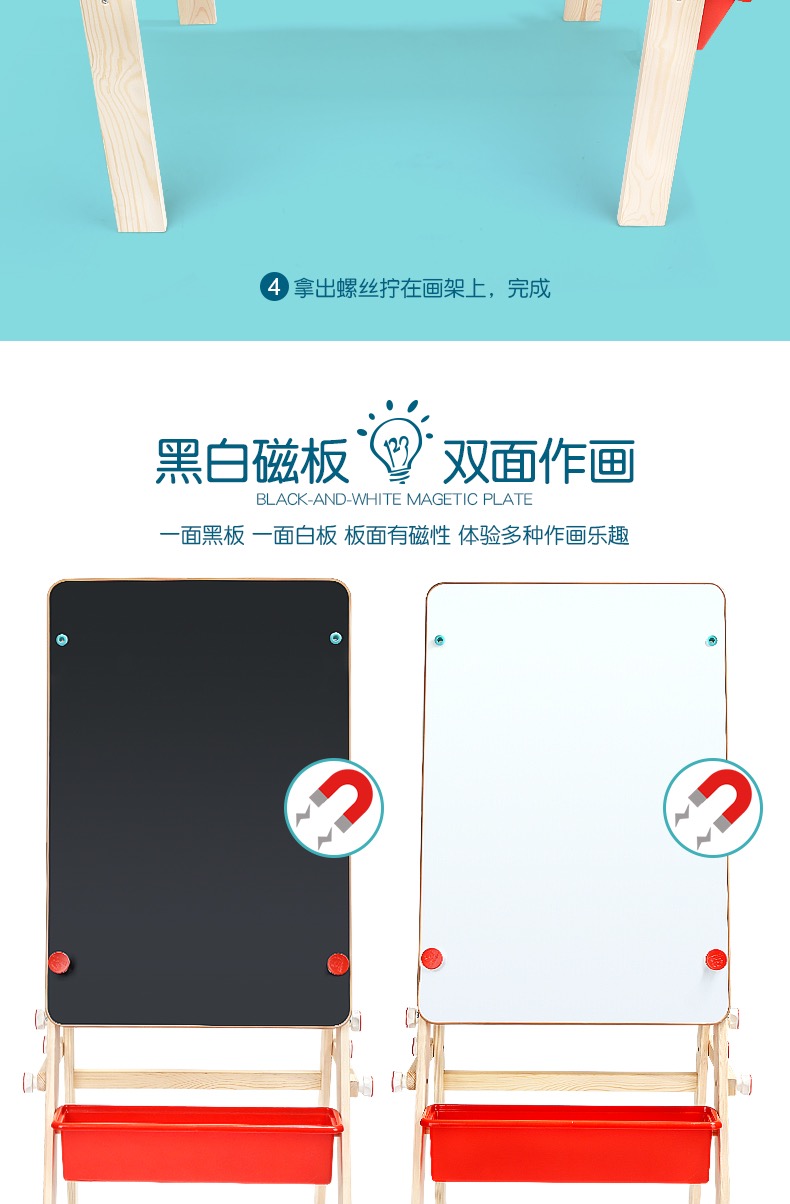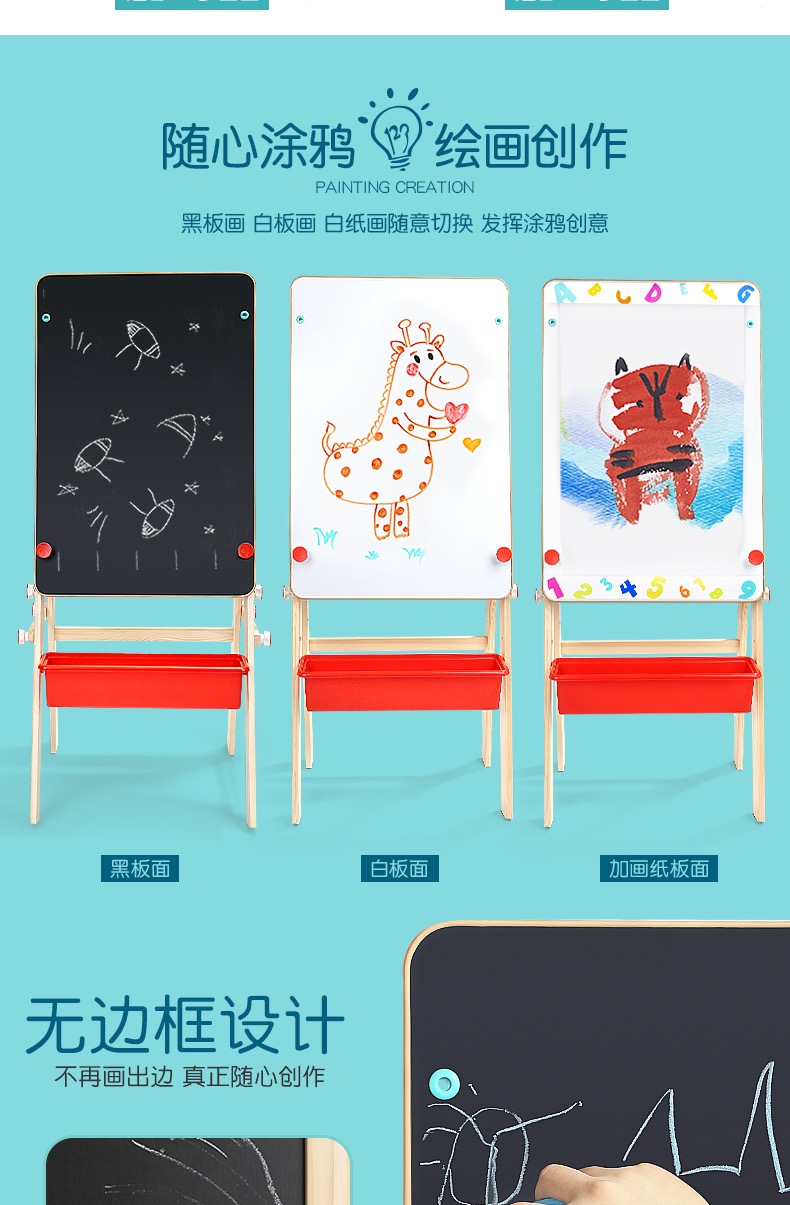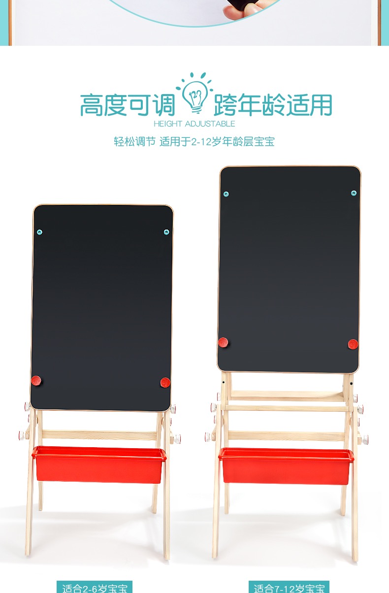 特宝儿家用画板可升降黑板支架式双面磁性写字板