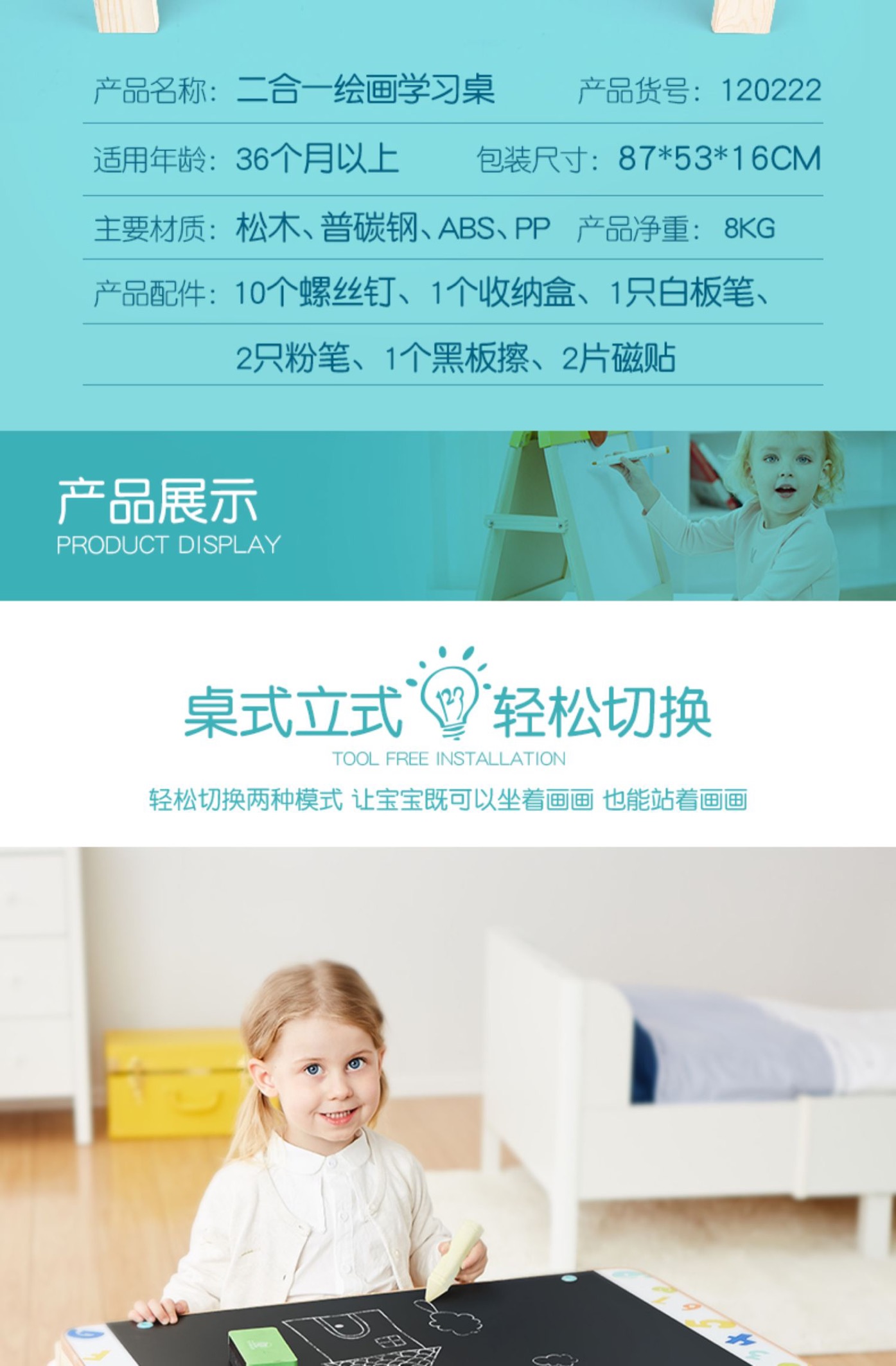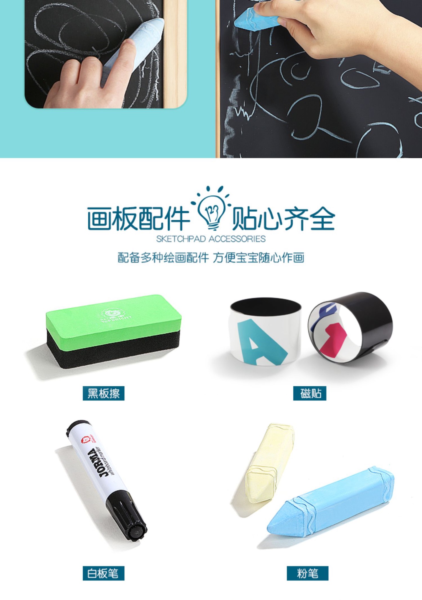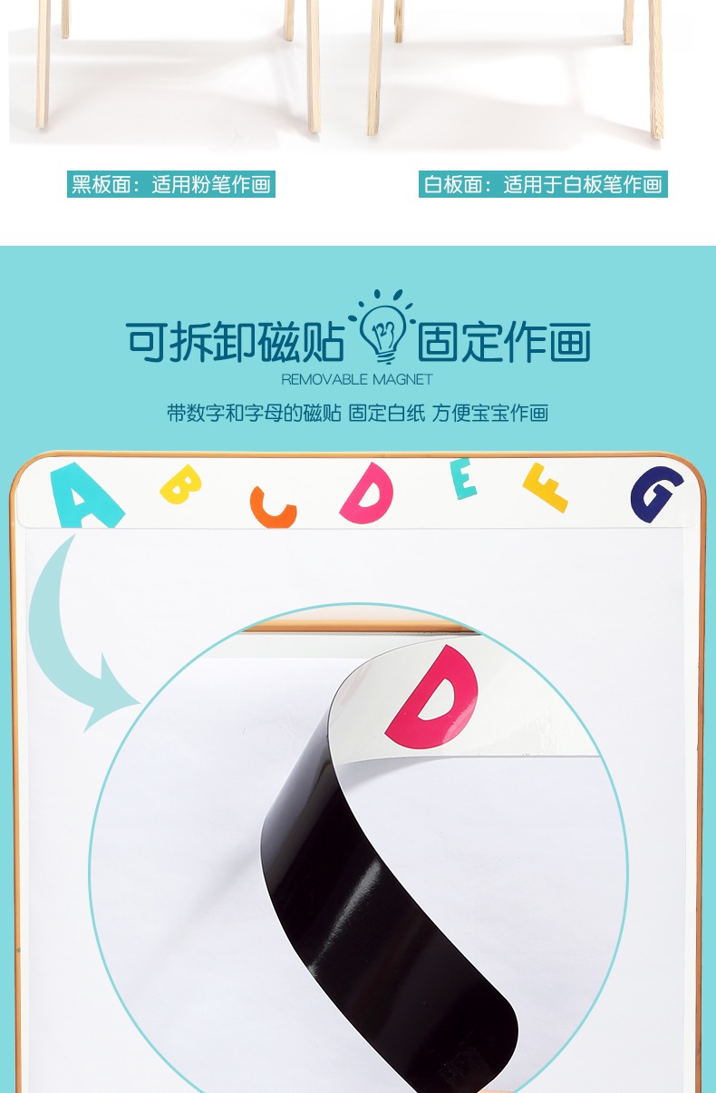 特宝儿家用画板可升降黑板支架式双面磁性写字板