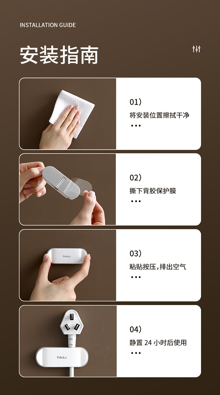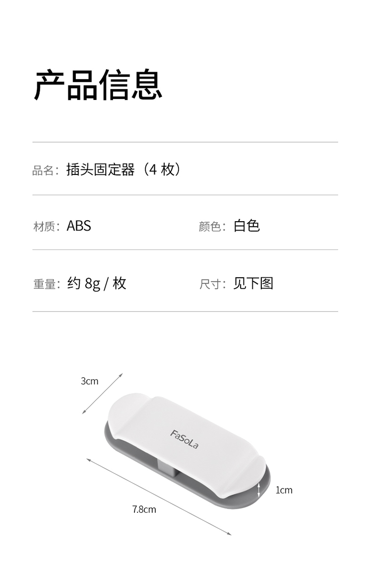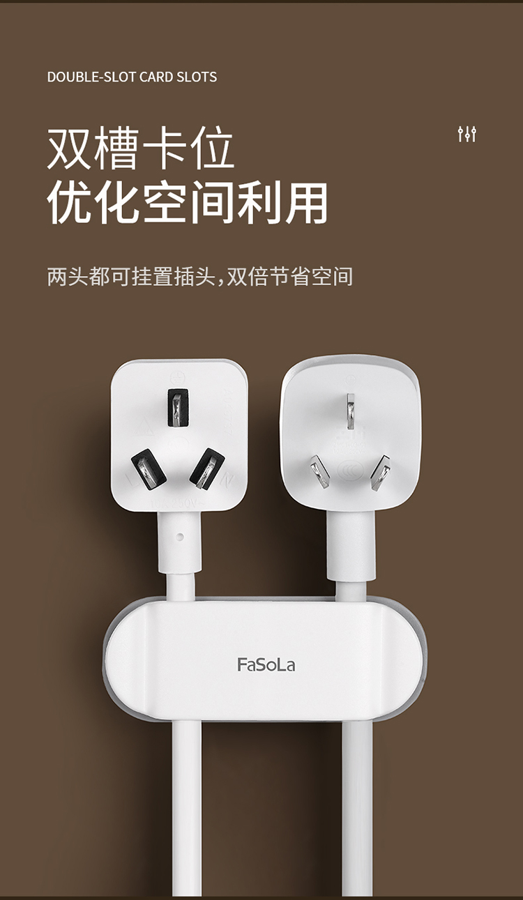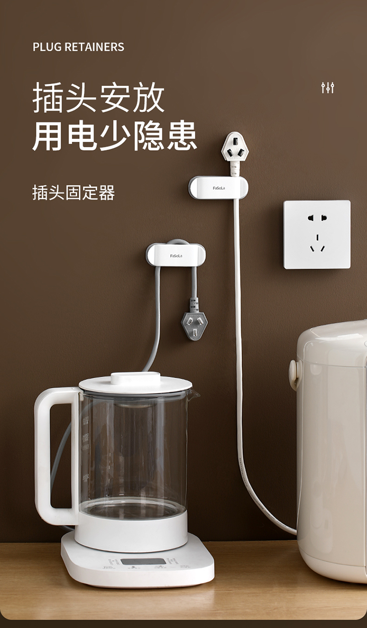 FaSoLa插头固定器 挂钩粘胶壁挂式免打孔插座电源线收纳