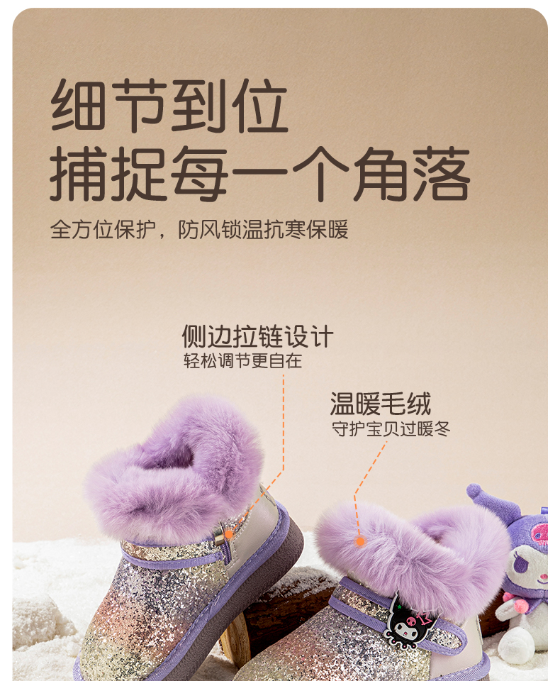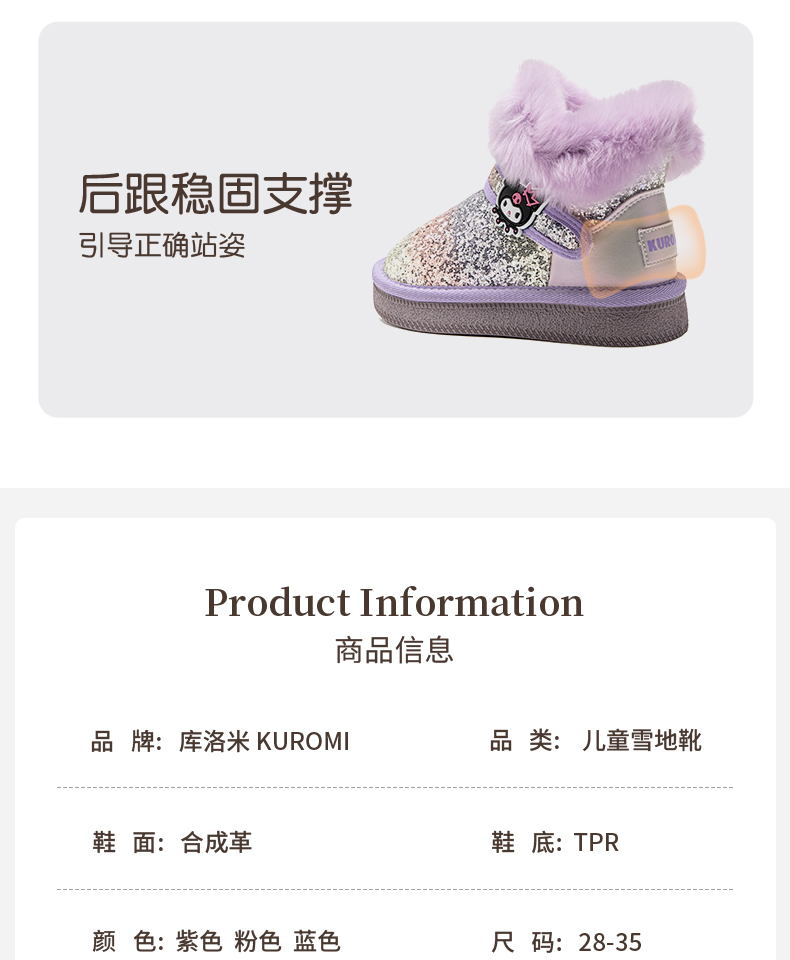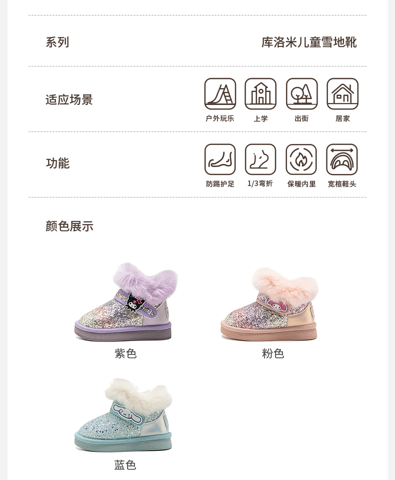 hellokitty童鞋冬季库洛米儿童雪地靴28-35码 KU5546953
