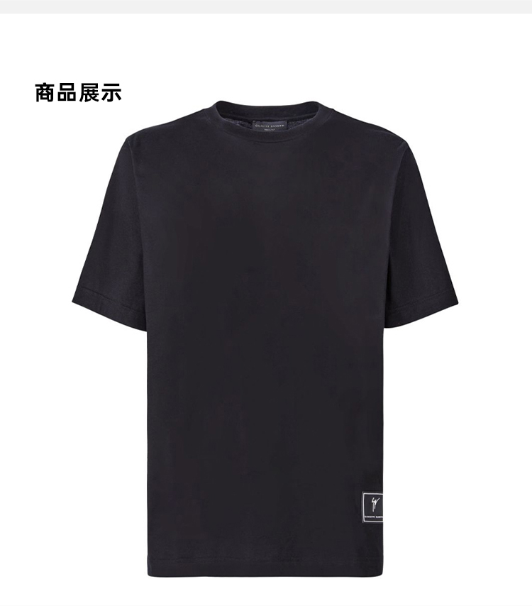 Giuseppe Zanotti 男士签名徽标贴花棉质圆领短袖T恤 黑色 ERU4003001