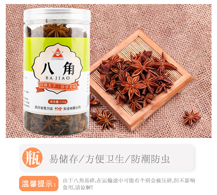 川珍 八角 150g 香辛料 四川大料小茴香烧炖卤料调味料家庭装香料佐料