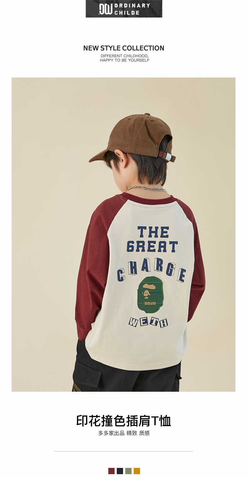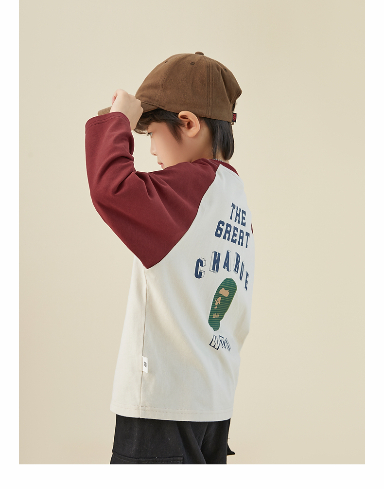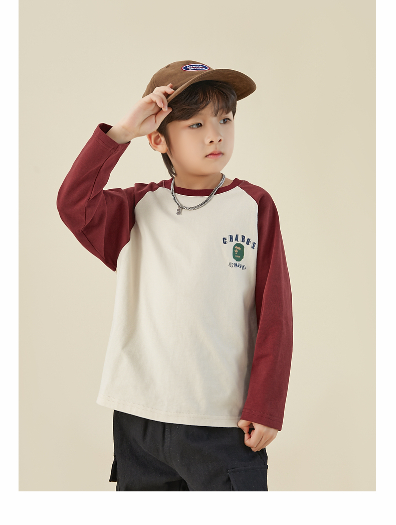 【件件底价,童装双倍积分】多多家男童长袖T恤春秋季撞色插肩袖儿童上衣2024新款中大童春装9095