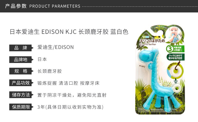 EDISON/爱迪生 EDISONMAMA KJC长颈鹿牙胶 蓝白色JPY带授权招加盟代理