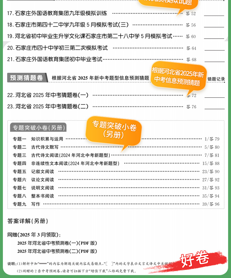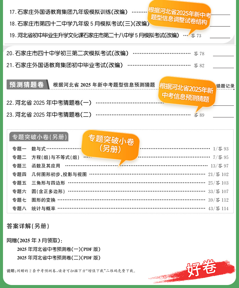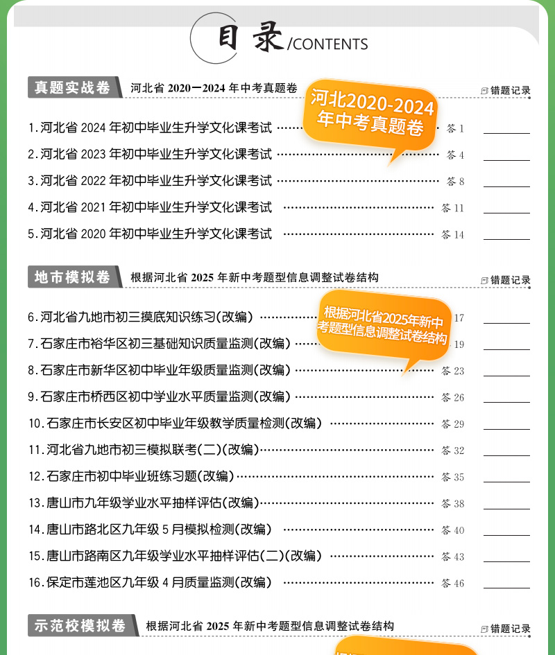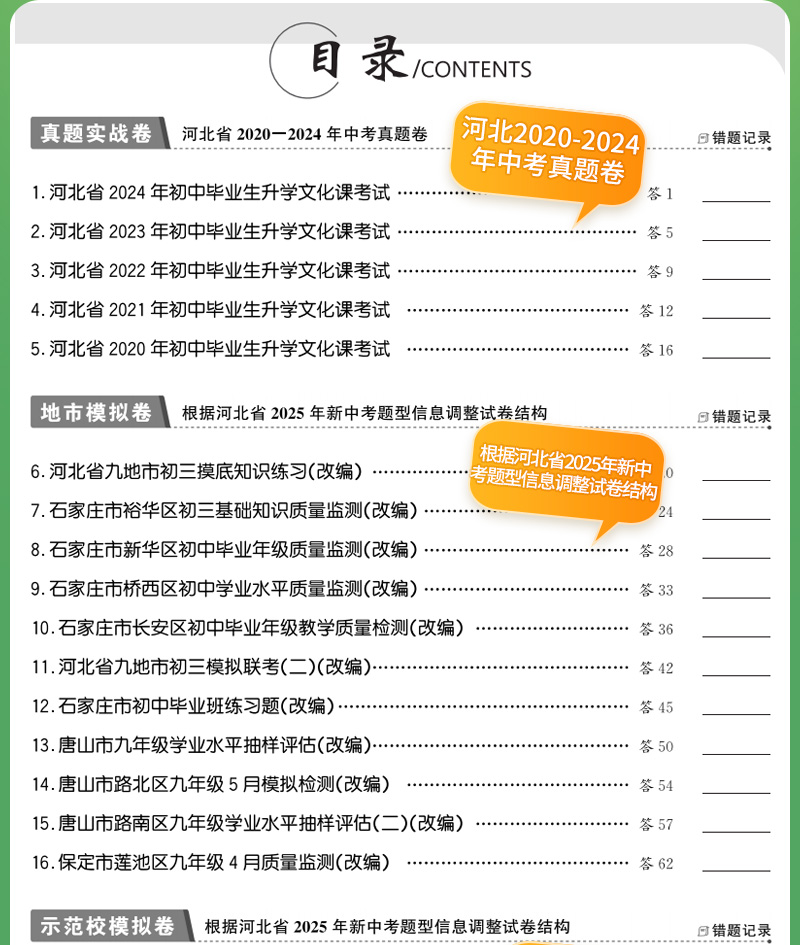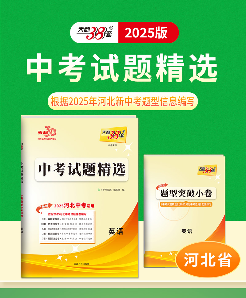 天利38套 2025河北中考试题精选 语文 数学 英语 物理 化学 历史 道德与法治 生物 地理