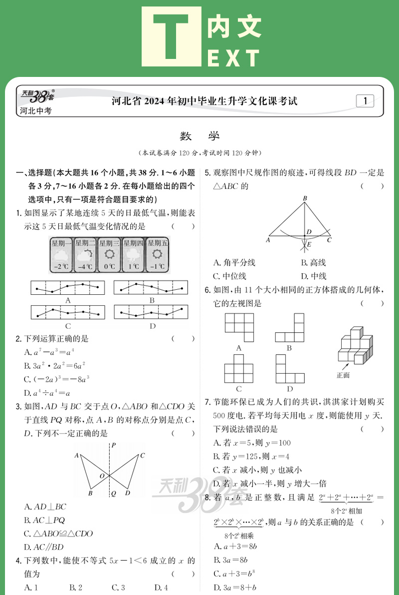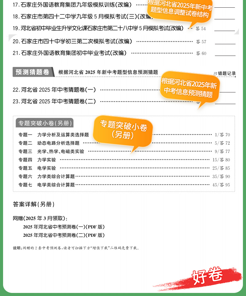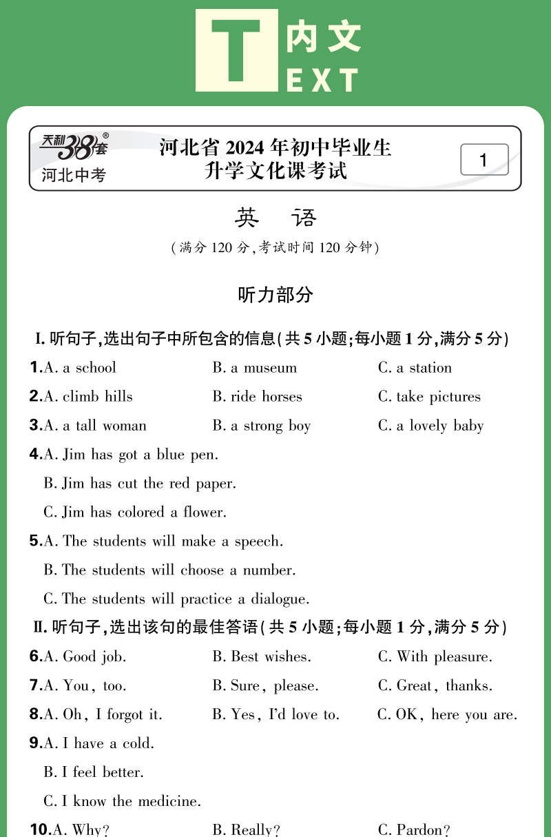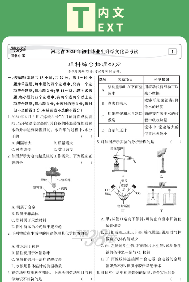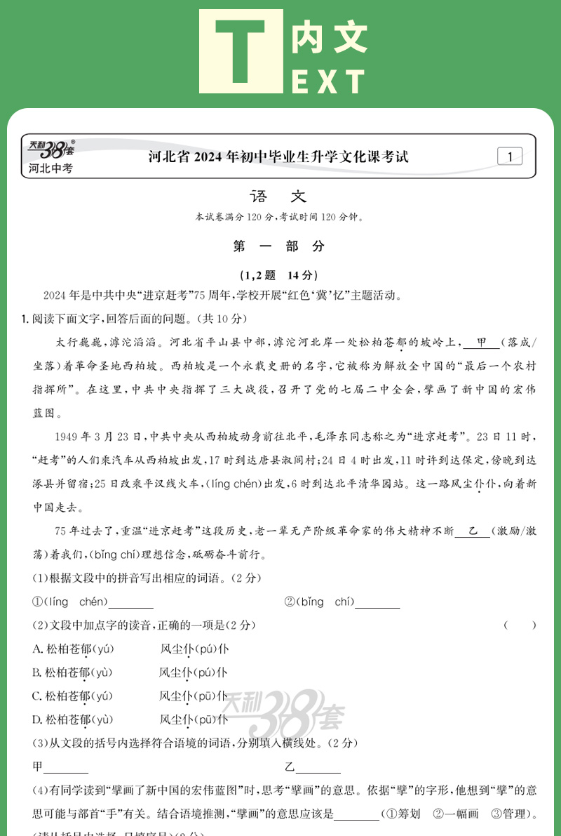 天利38套 2025河北中考试题精选 语文 数学 英语 物理 化学 历史 道德与法治 生物 地理