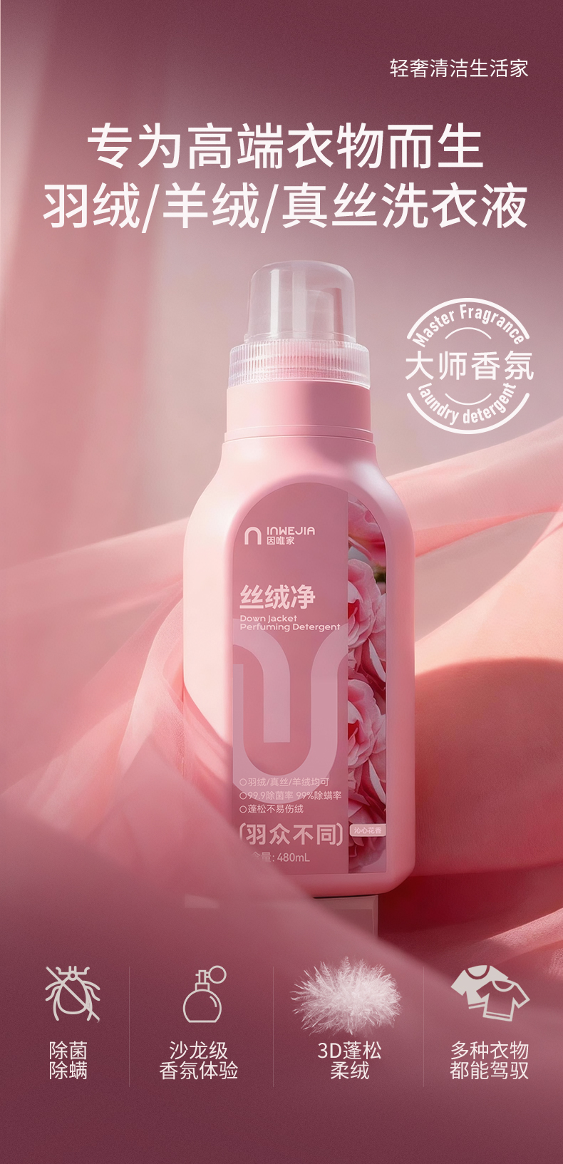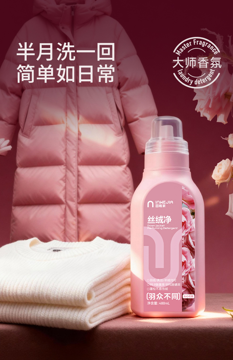 inwejia丝绒净—专为「羽绒服/羊绒/真丝」打造的温和洁净守护神!